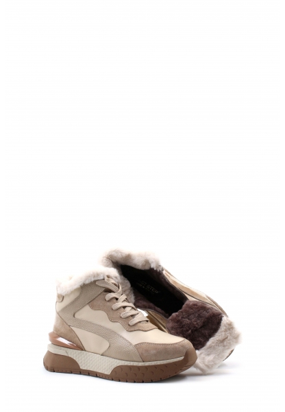 •  Kadın Deri Botumuzun iç astarı gerçek kuzu yünü dış yüzeyi hakiki dana derisidir.
