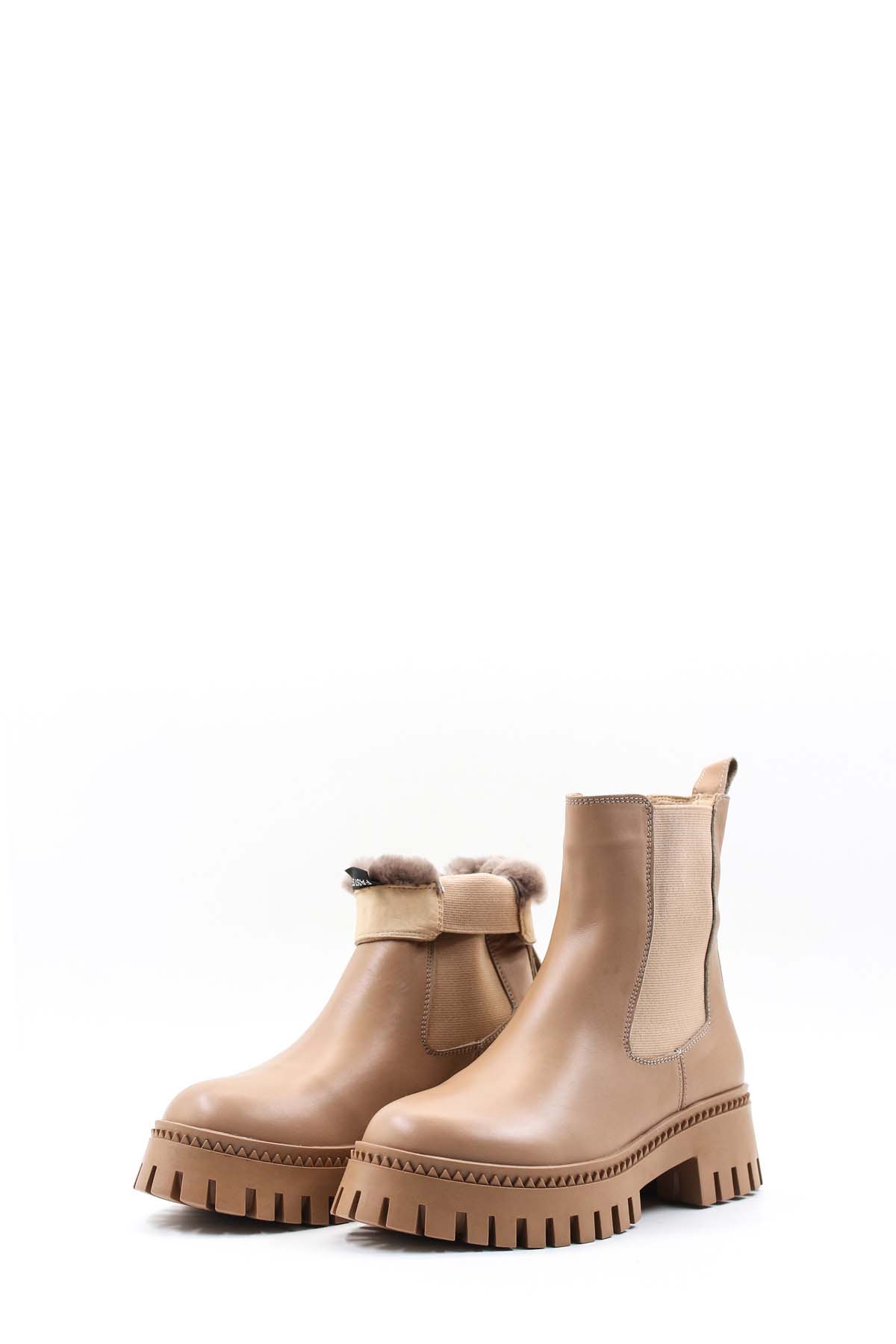 • MirgeShoes Vizon Lastikli Kadın Klasik Chelsea Bot İçi Kürklü Dışı Hakiki Deri MRG01140112618700