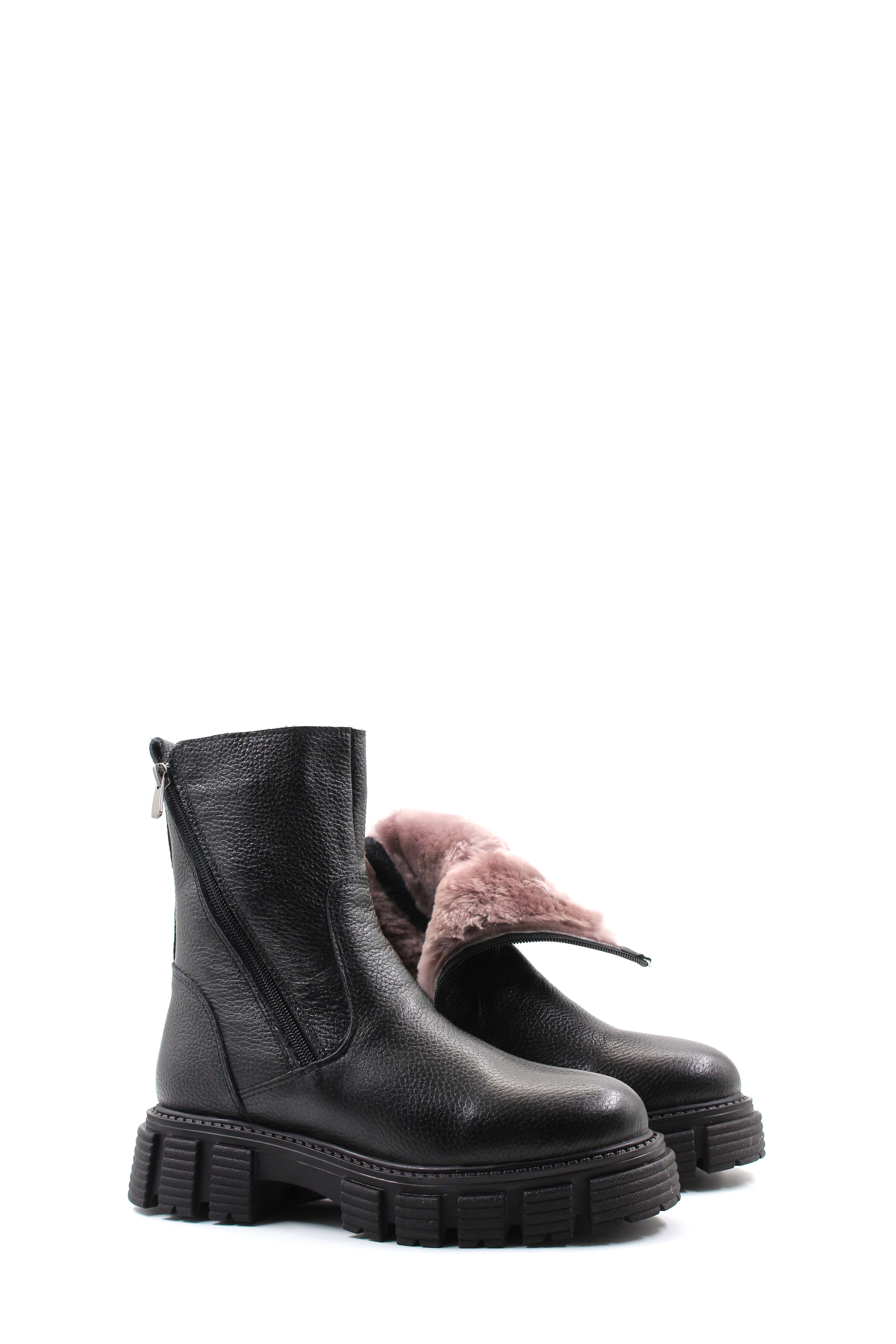 MirgeShoes Siyah Fermuarlı Kadın Bot İçi Kürklü Dışı Hakiki Floter Deri MRG01840112616219