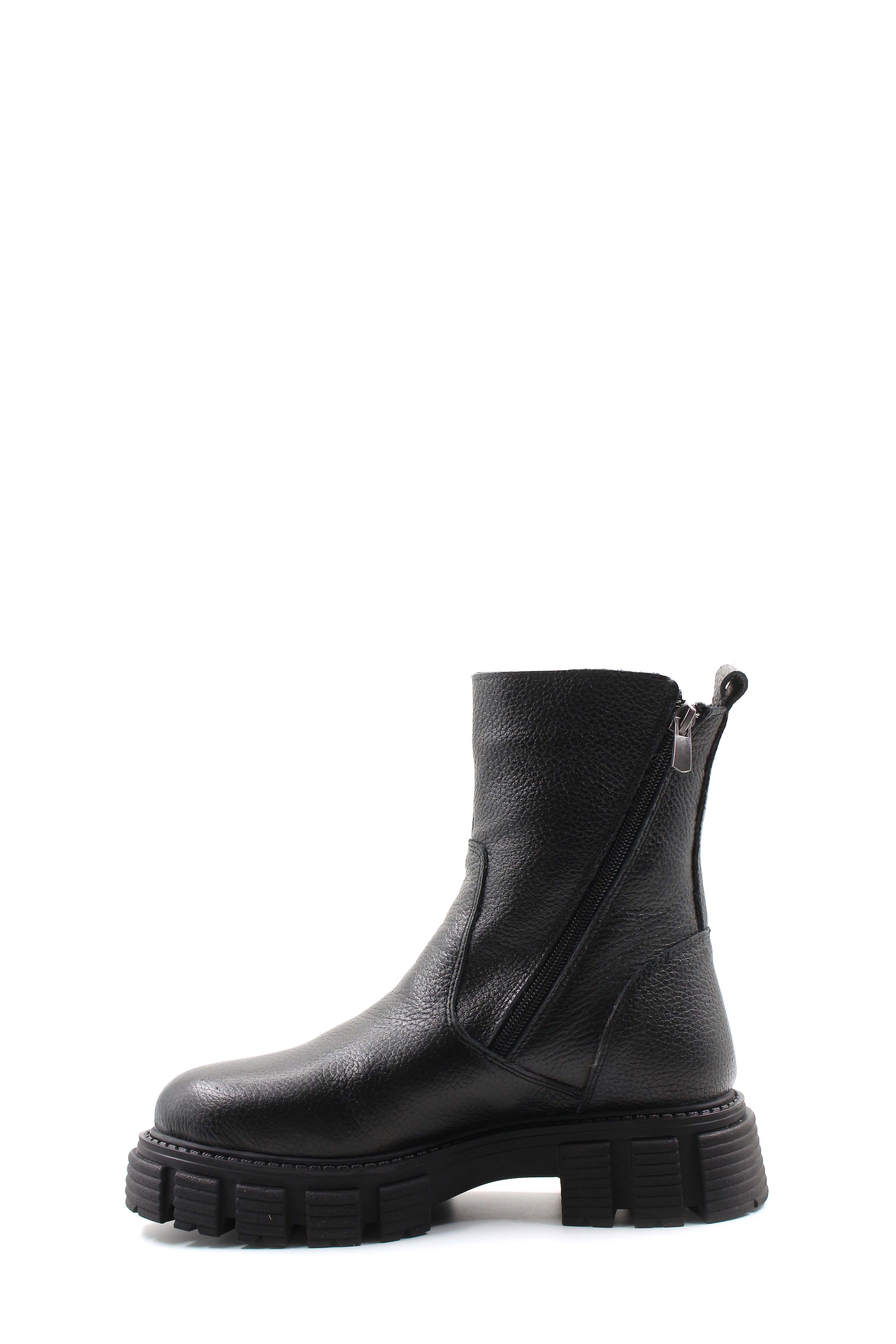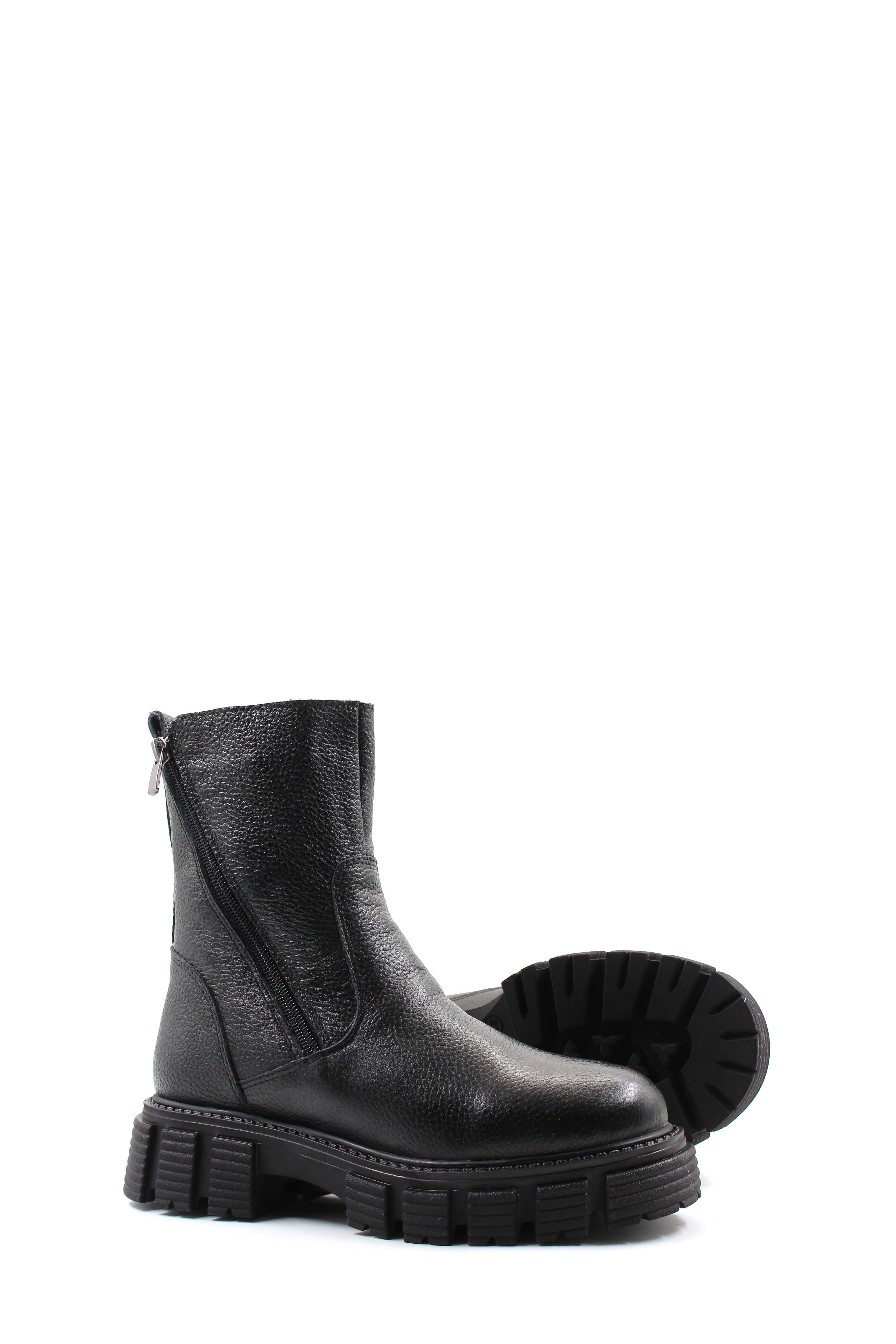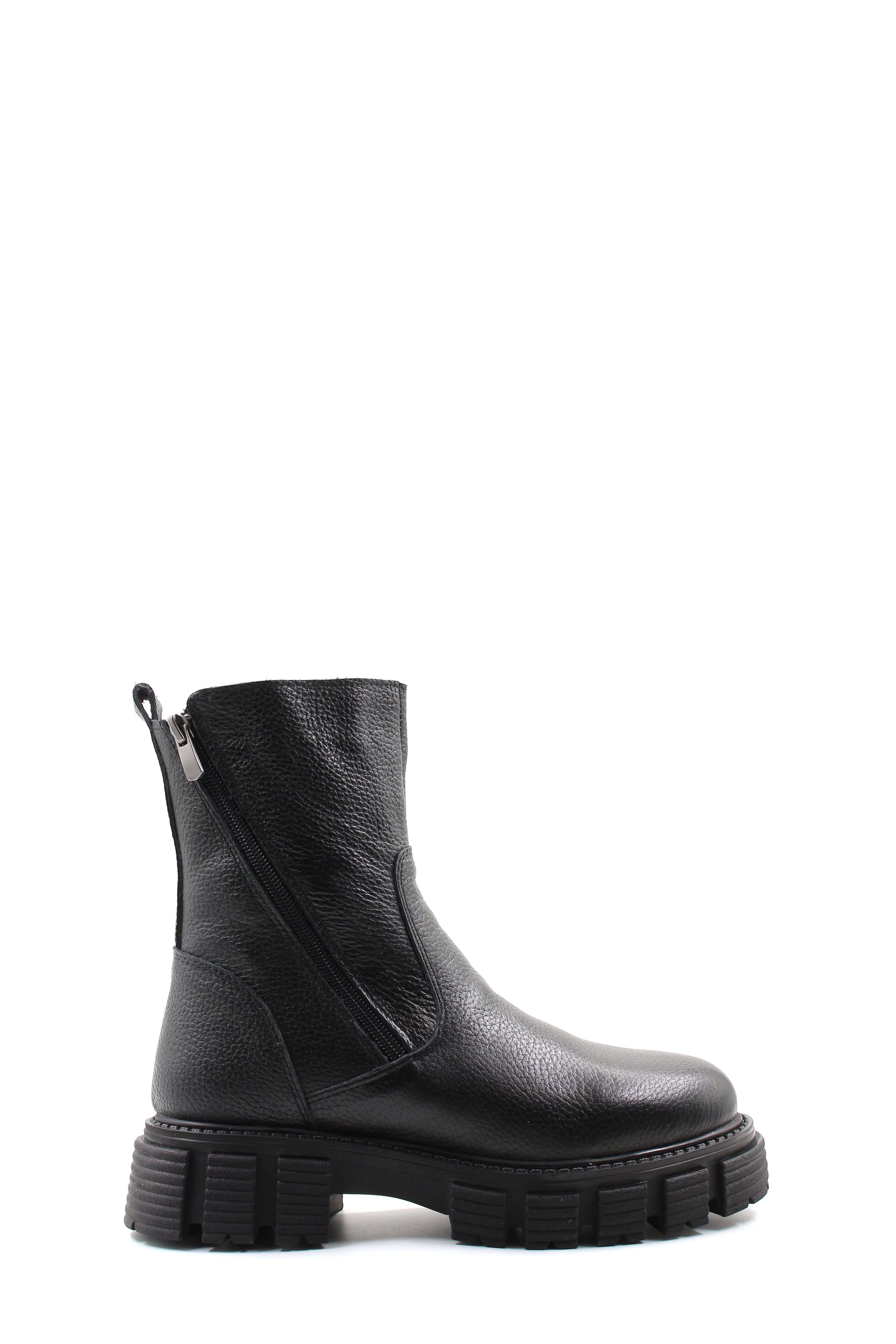 • MirgeShoes Siyah Fermuarlı Kadın Bot İçi Kürklü Dışı Hakiki Floter Deri MRG01840112616219