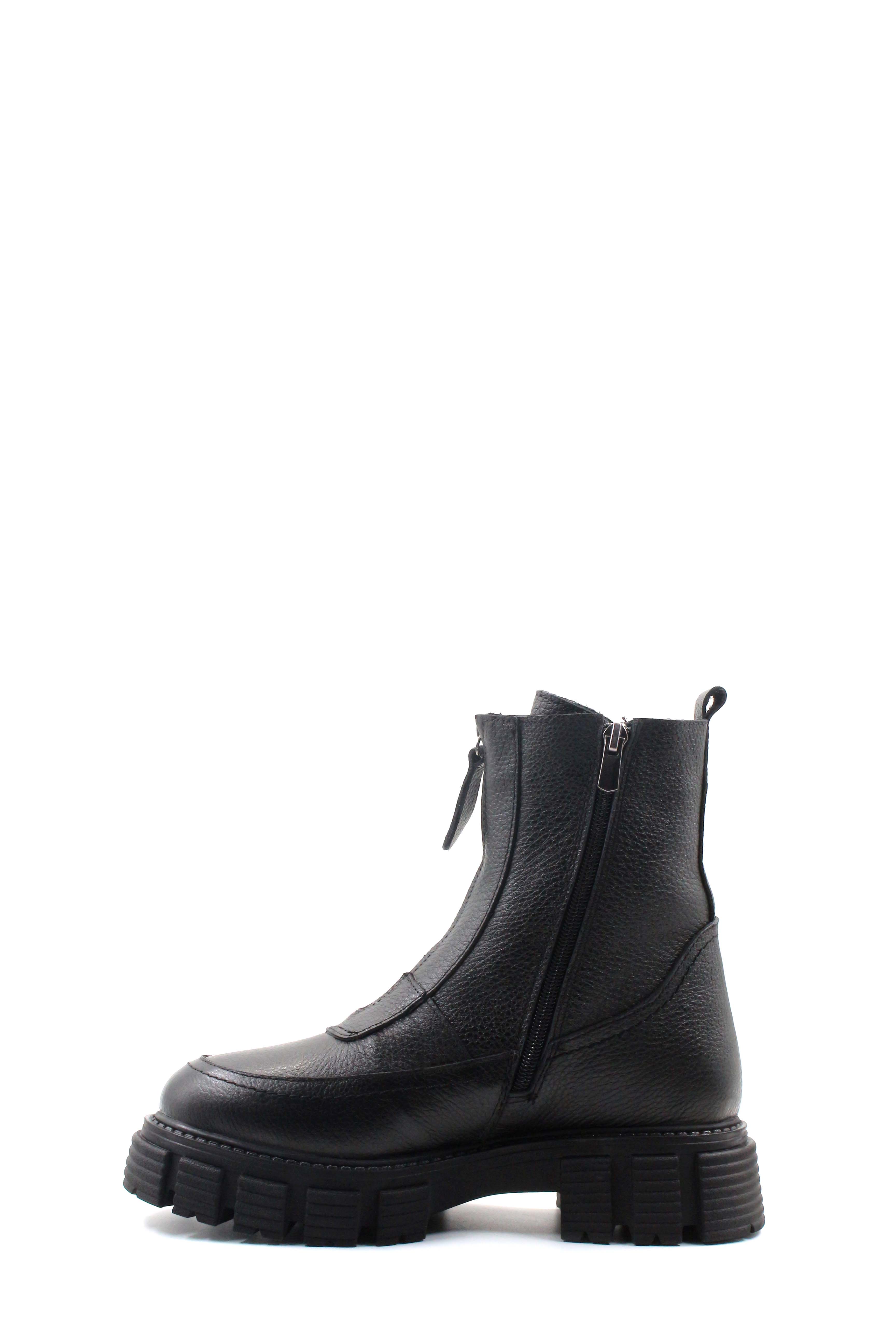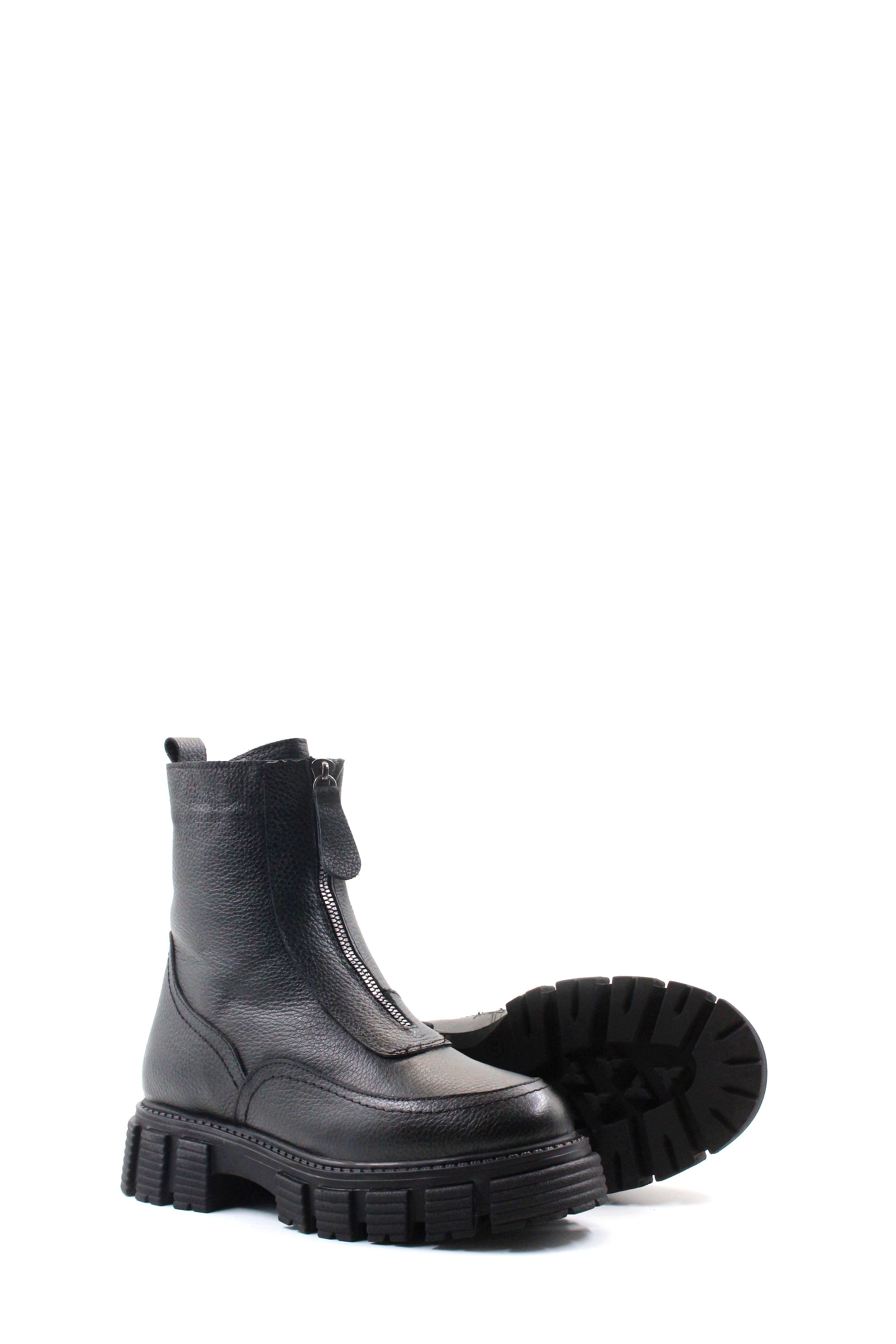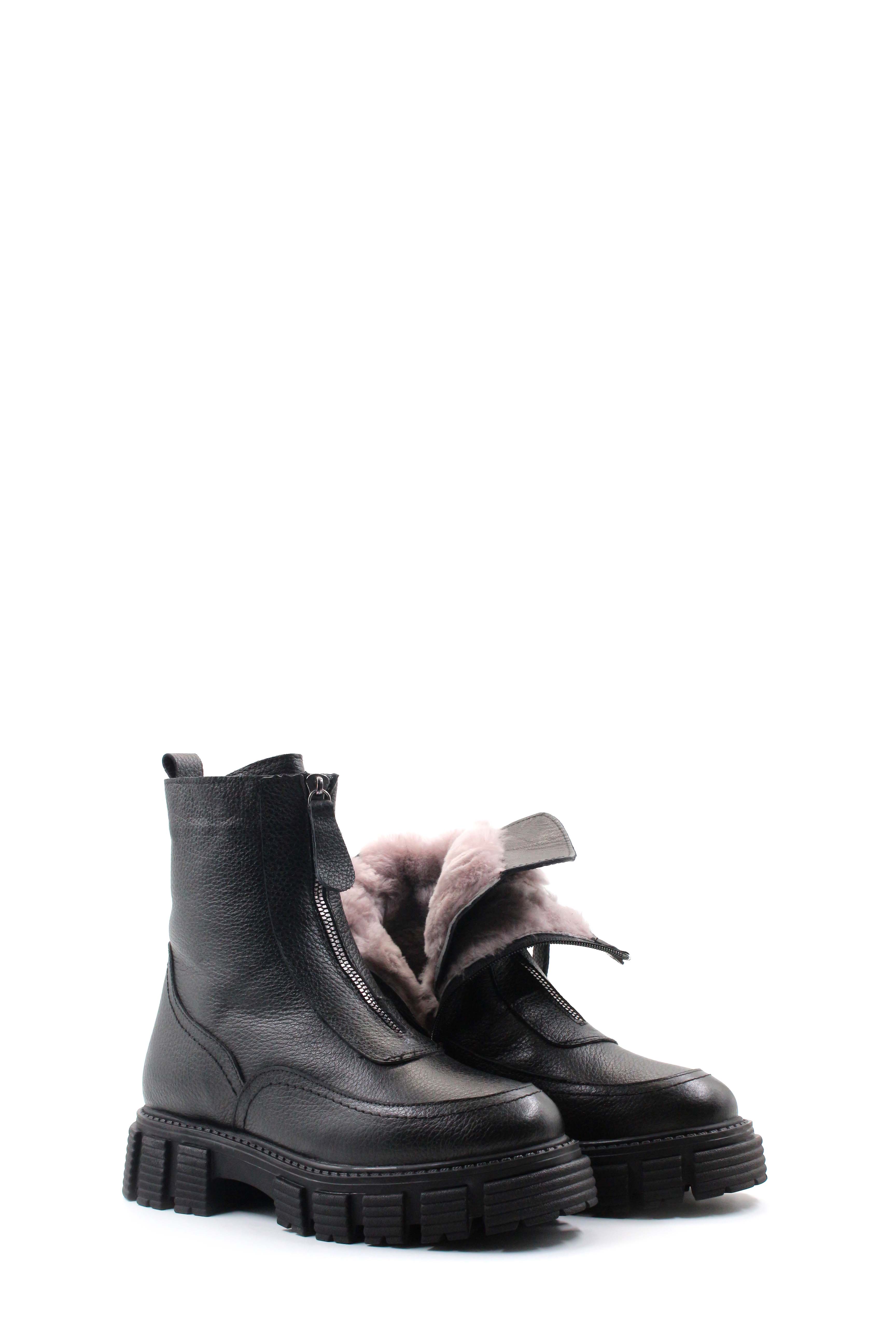 • MirgeShoes Siyah Fermuarlı Kadın Klasik Bot İçi Kürklü Dışı Hakiki Floter Deri MRG01840112616220