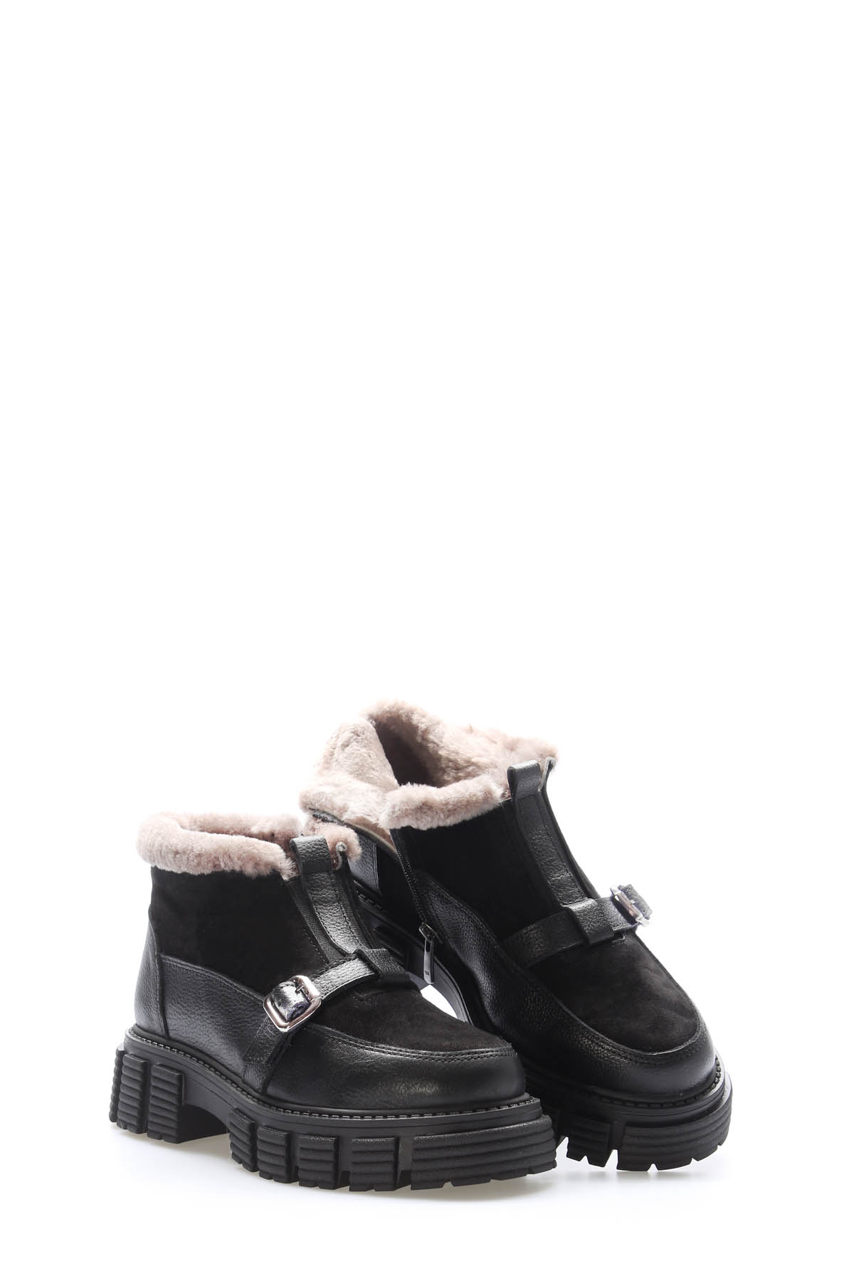 Kadın Kadın Bot MirgeShoes Siyah Tokalı Kadın Bot İçi Kürklü Dışı Hakiki Süet Deri MRG01140112618913