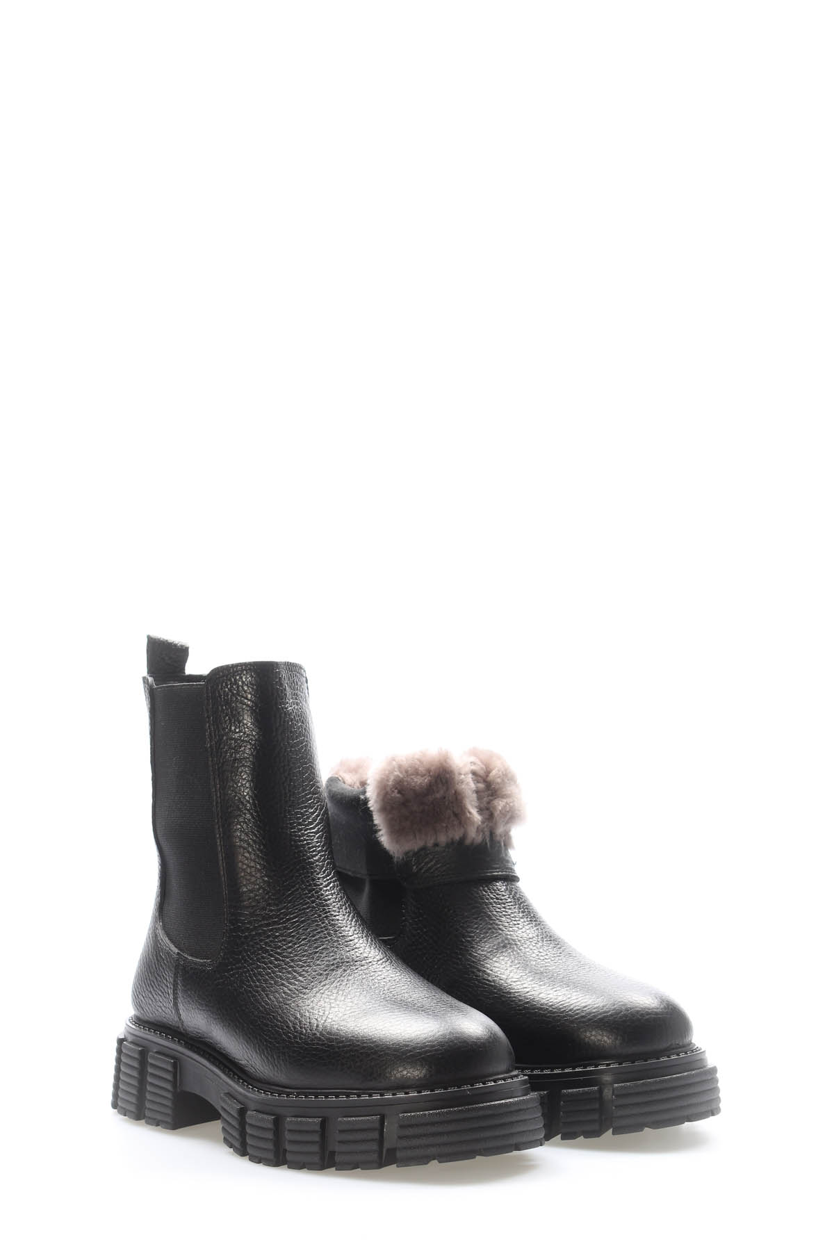 MirgeShoes Siyah Lastikli Kadın Chelsea Bot İçi Kürklü Dışı Hakiki Floter Deri MRG01840112616224