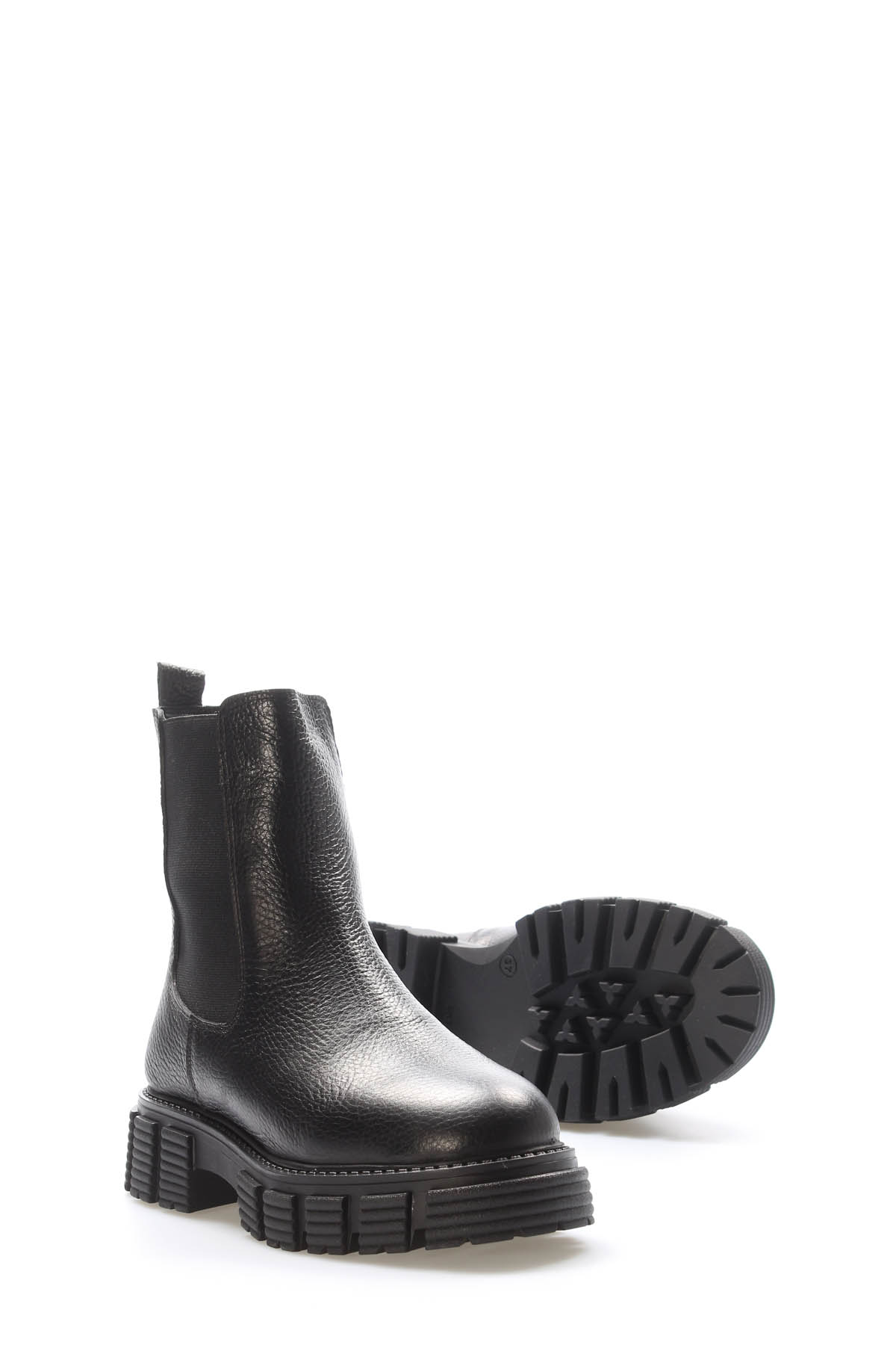 • MirgeShoes Siyah Lastikli Kadın Chelsea Bot İçi Kürklü Dışı Hakiki Floter Deri MRG01840112616224