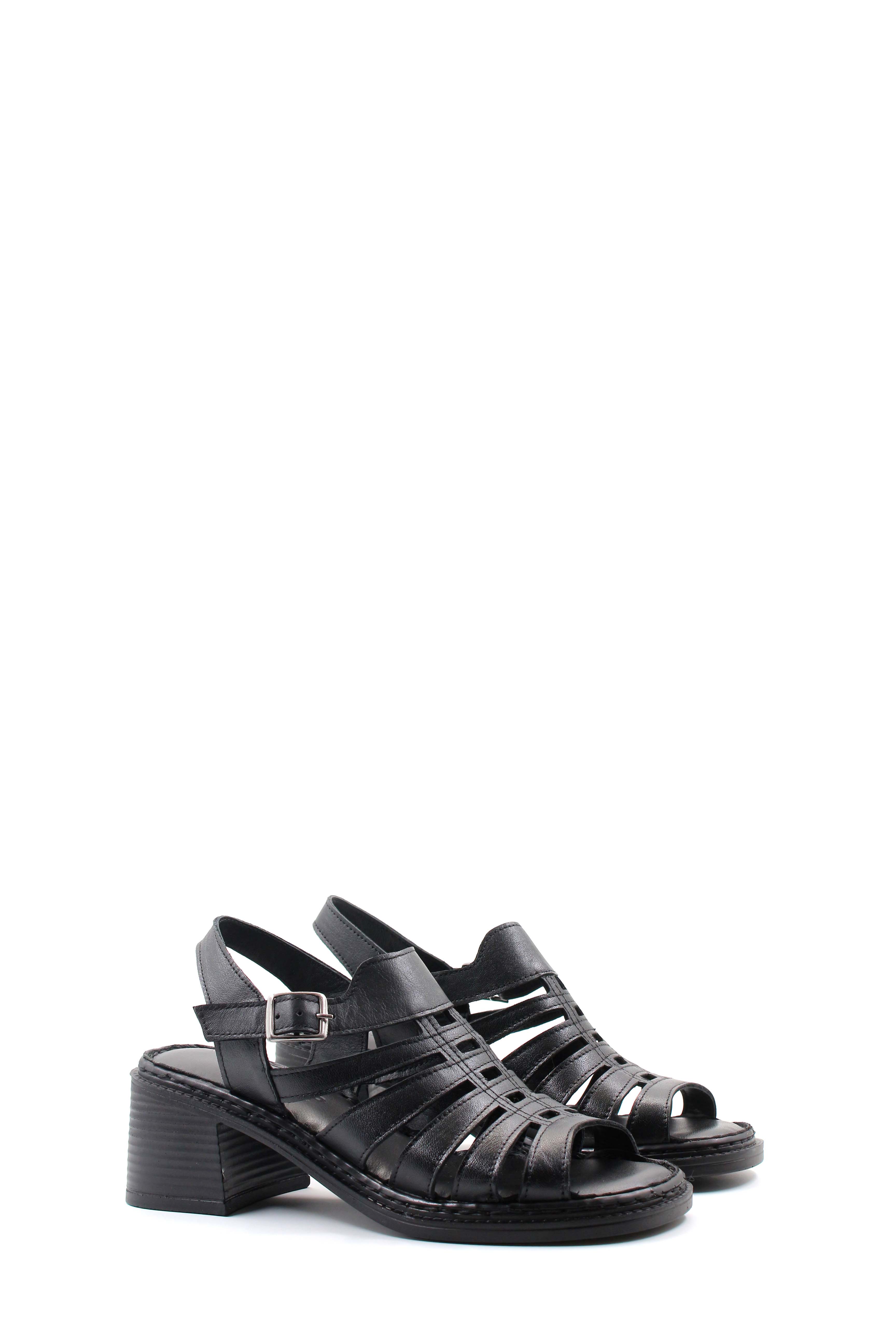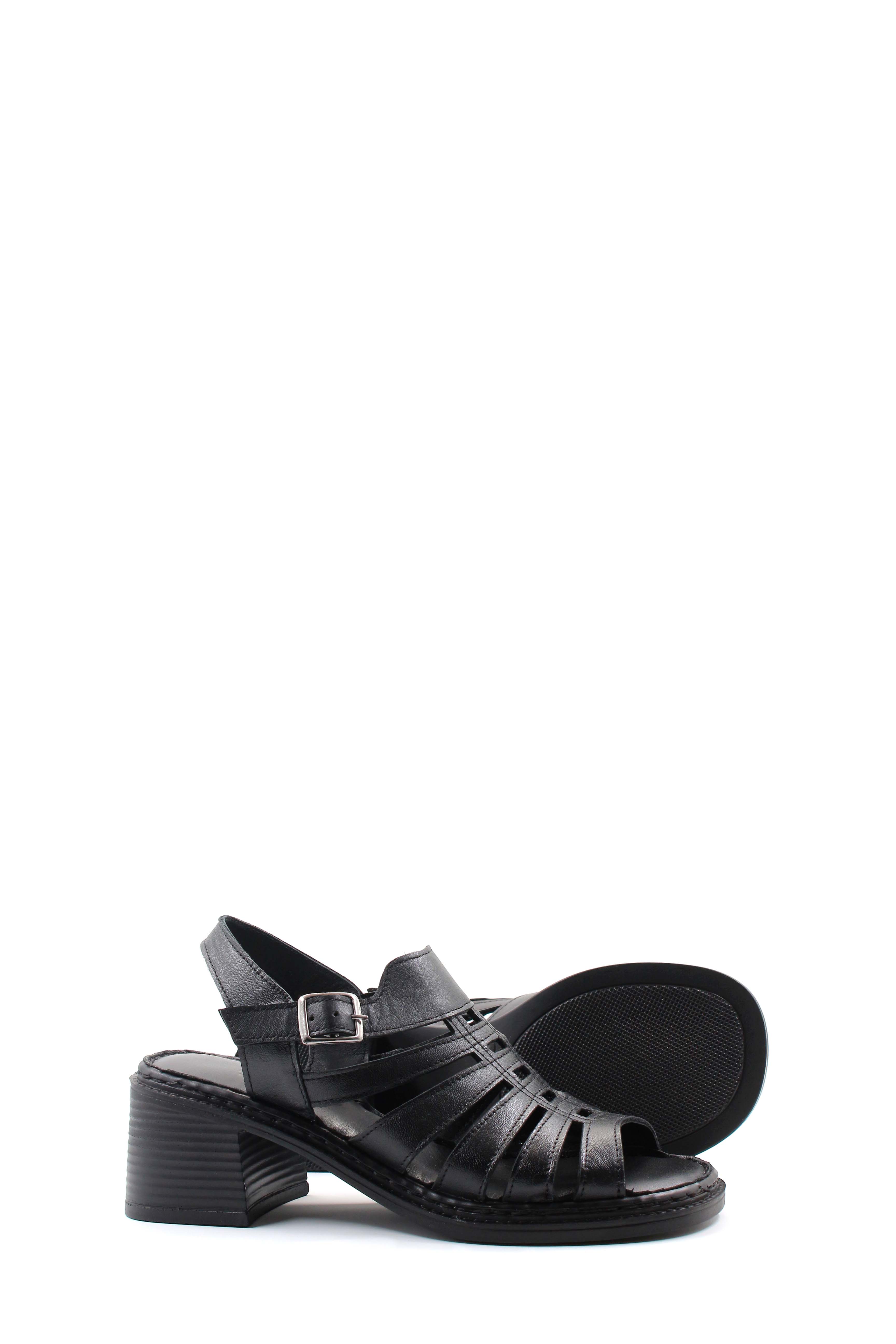 MirgeShoes Kadın Dolgu Topuk Sandalet İçi Dışı Hakiki Deri Siyah MRG0175126193929