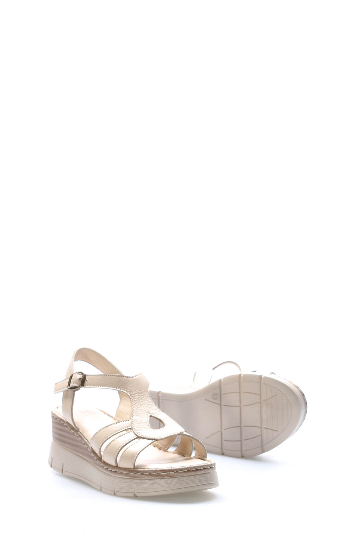 • MirgeShoes Kadın Klasik Sandalet İçi Dışı Hakiki Deri Bej  MRG017512611339