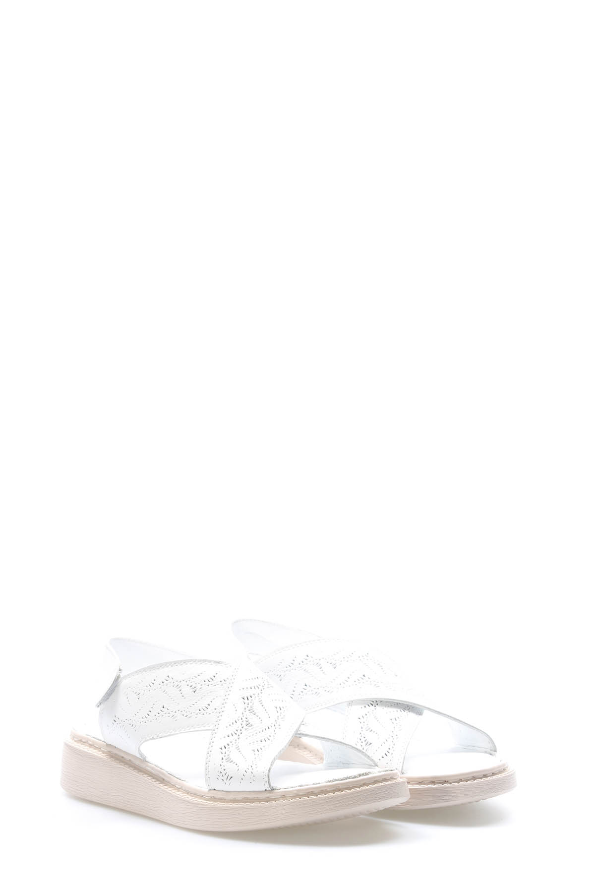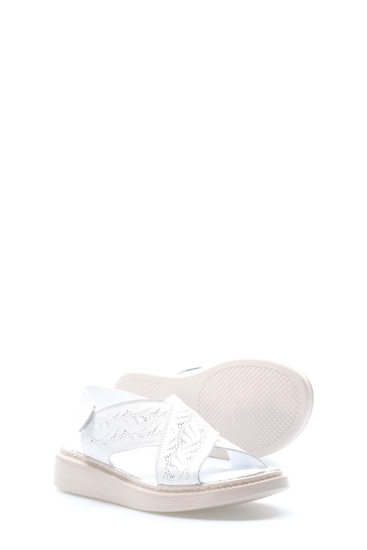 • MirgeShoes Kadın Sandalet İçi Dışı Hakiki Deri Beyaz  MRG011102261672