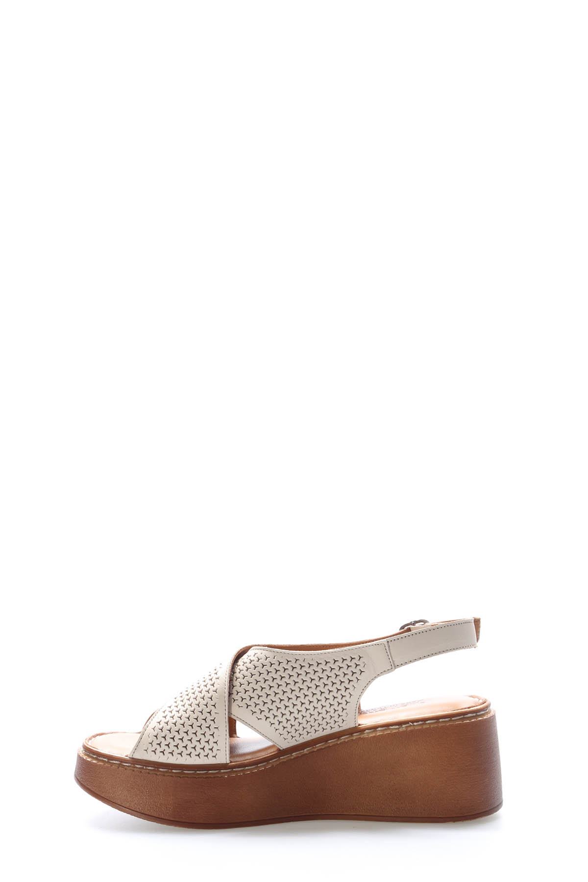 MirgeShoes Kadın Dolgu Topuk Sandalet İçİ Dışı Hakiki Deri Bej MRG017512611081