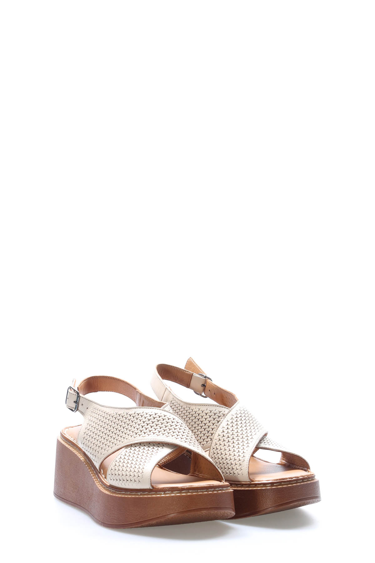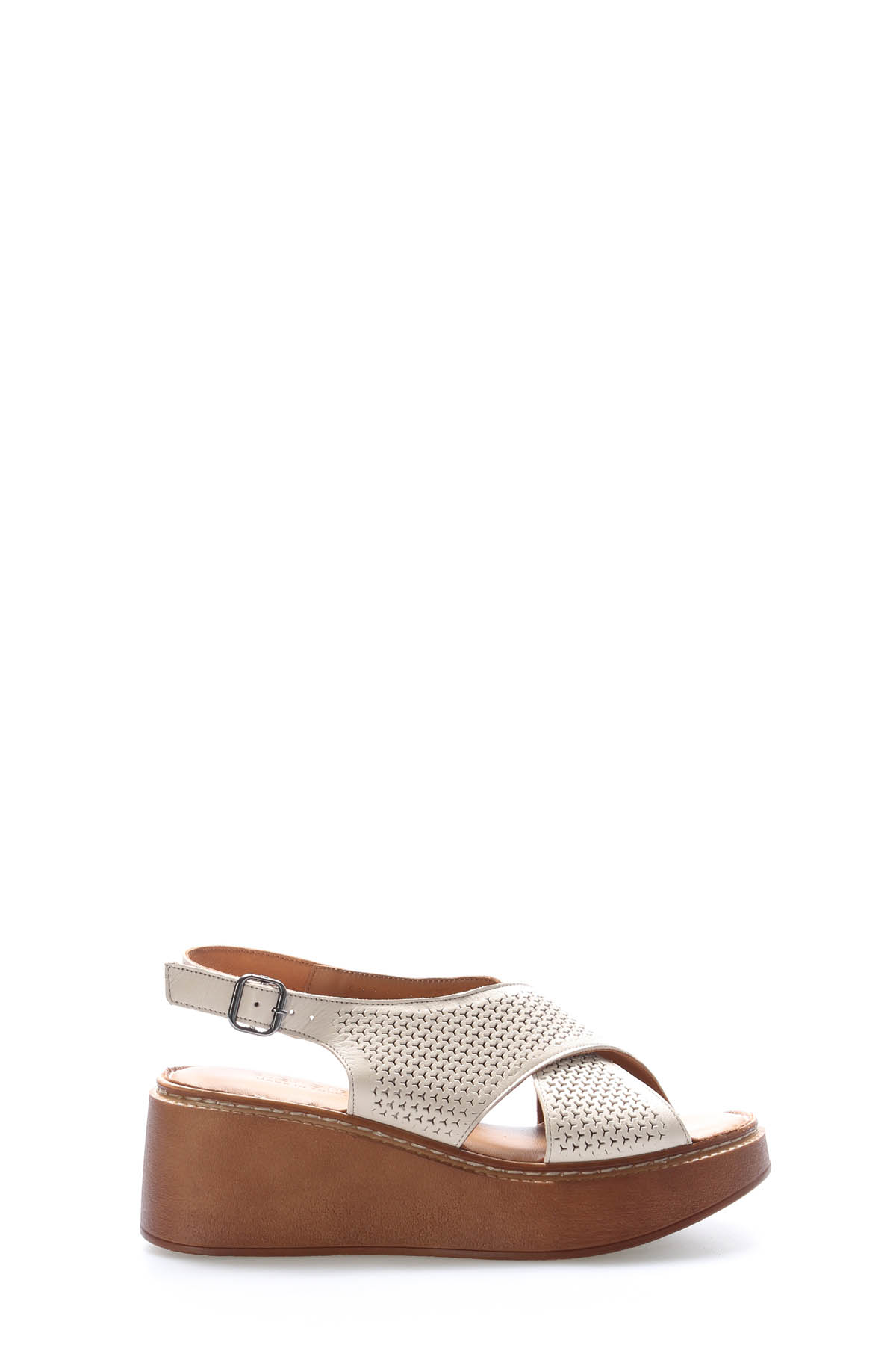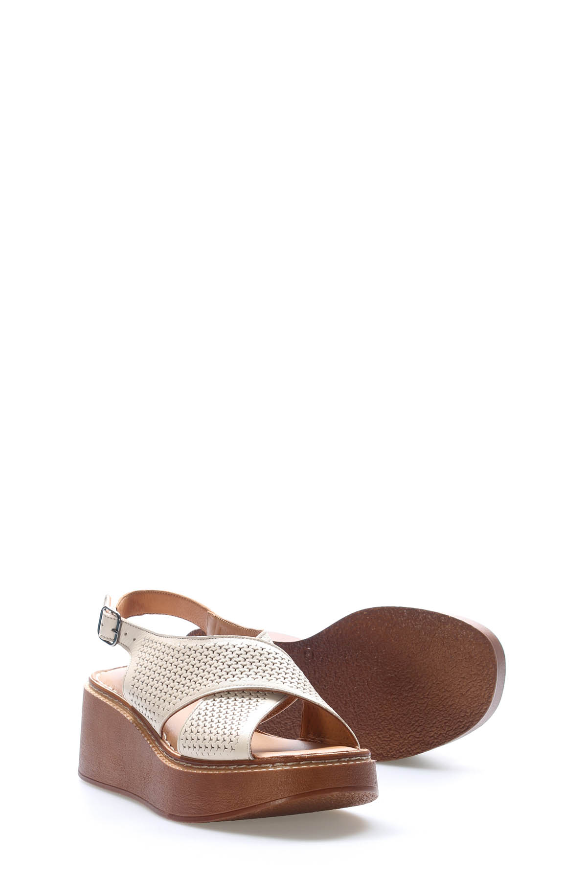 • MirgeShoes Kadın Dolgu Topuk Sandalet İçİ Dışı Hakiki Deri Bej   MRG017512611081