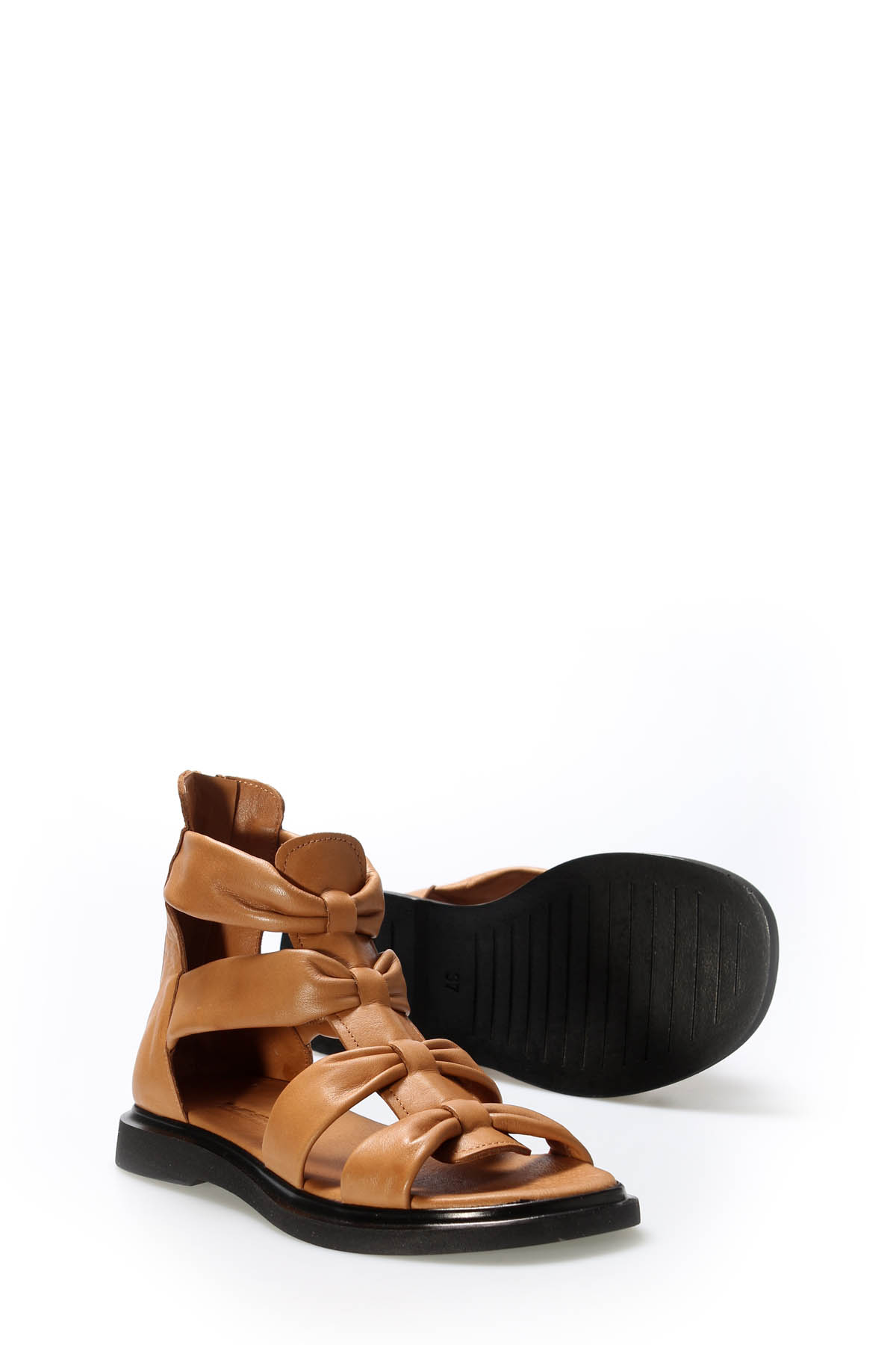 • MirgeShoes Kadın Sandalet İçi Dışı Hakiki Deri Taba  MRG01254261333