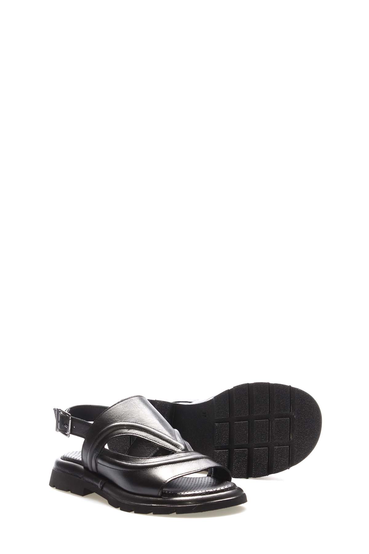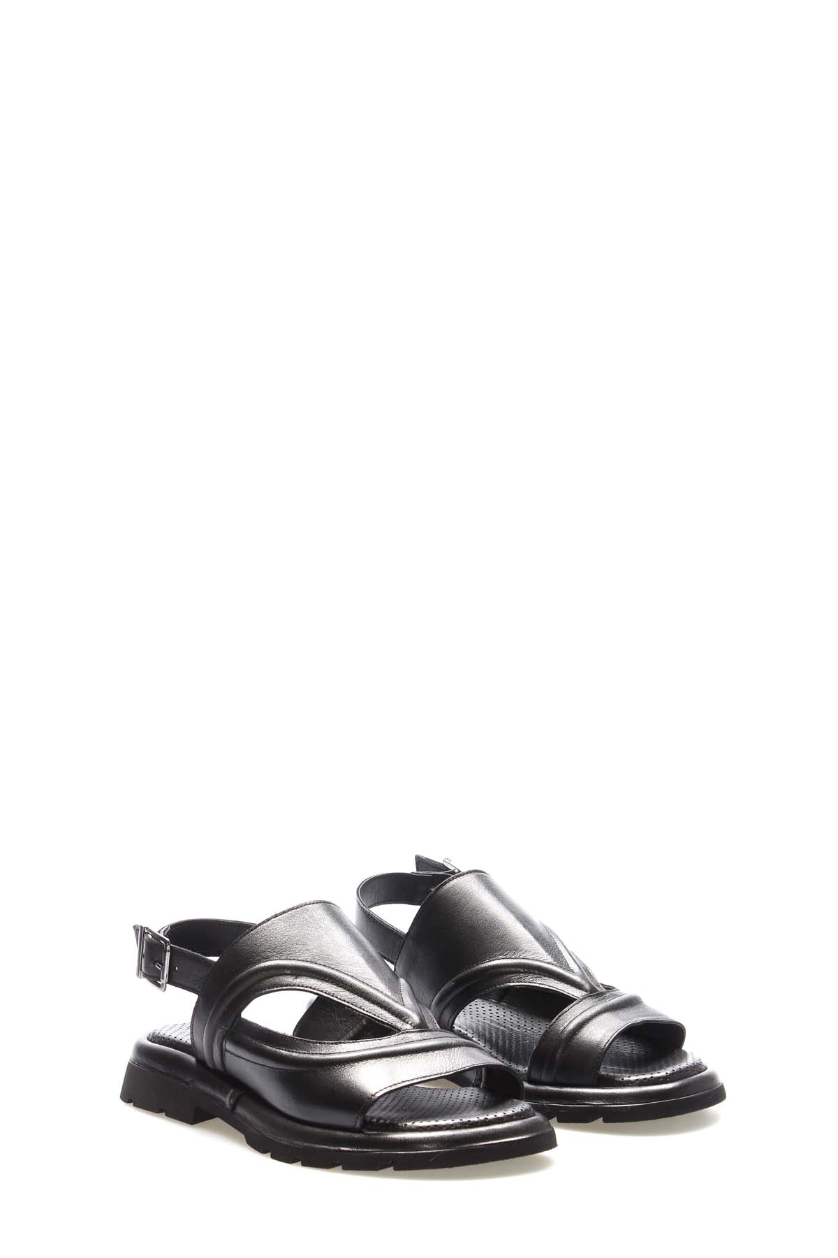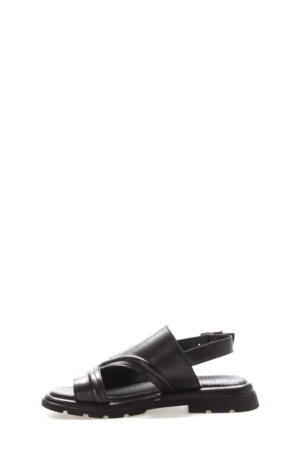 MirgeShoes Kadın Sandalet İçi Dışı Hakiki Deri Siyah MRG018402611189