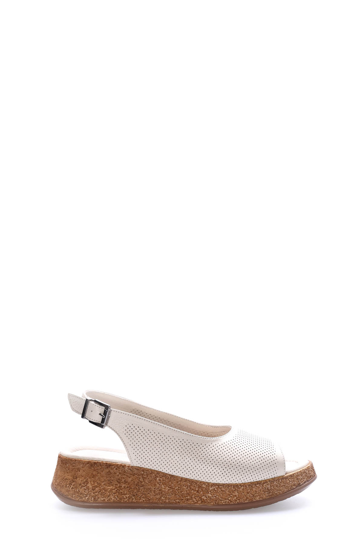 MirgeShoes İçi Dışı Hakiki Deri Bej Rahat Kadın Sandalet AH08227261153296