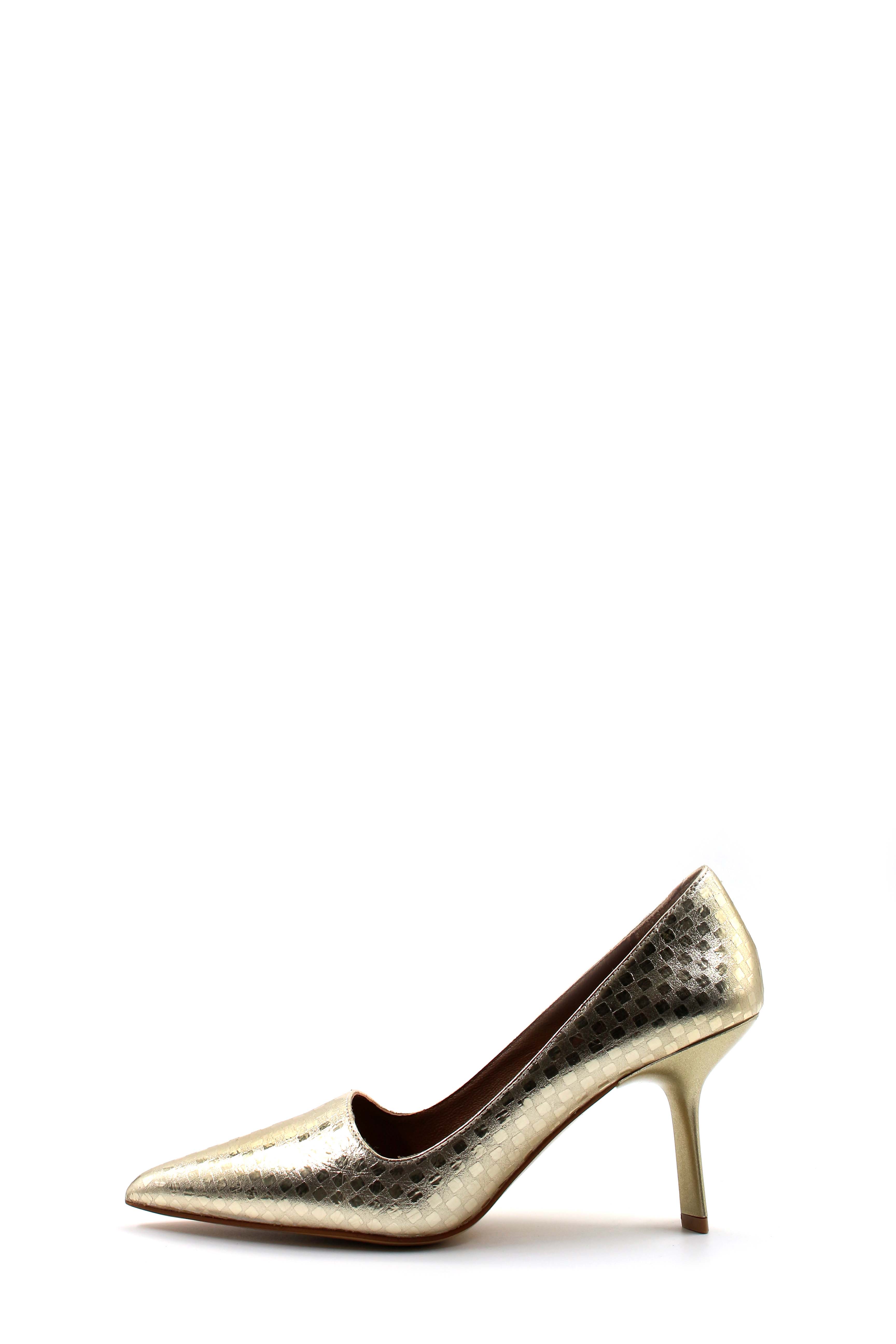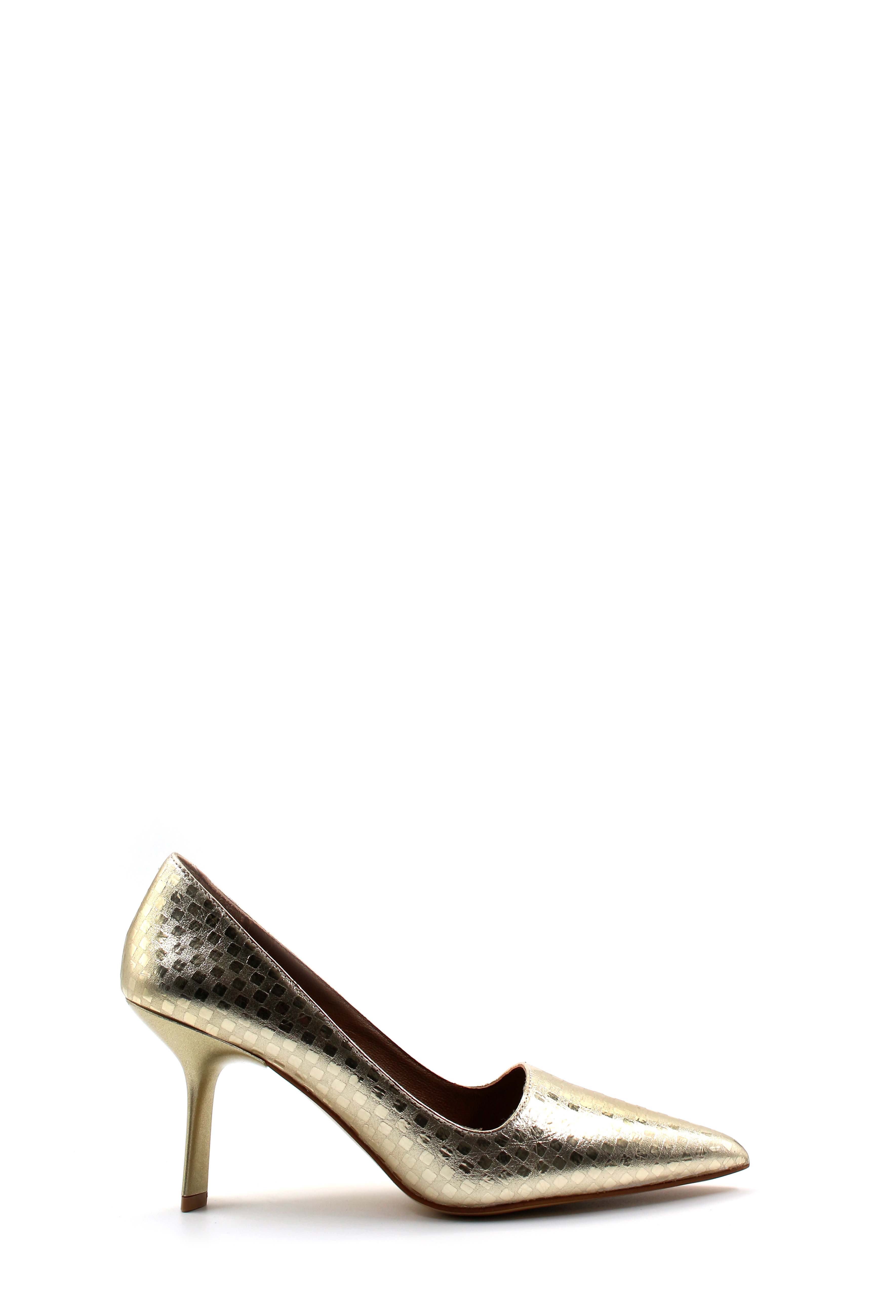 • MirgeShoes Altın Kadın İnce Topuk Ayakkabı İçi Dışı Hakiki Deri MRG0114926121855