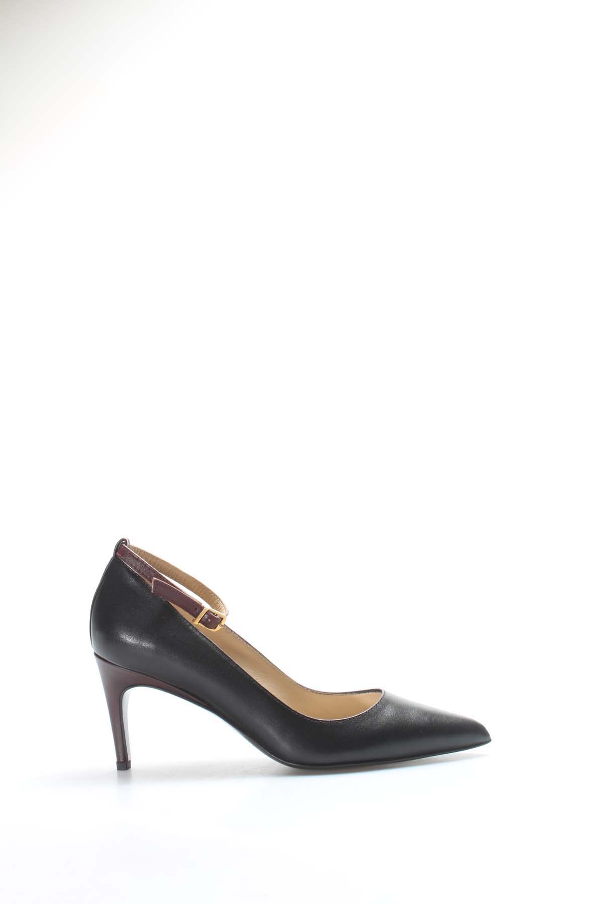 Kadın Topuklu Ayakkabı MirgeShoes Siyah-Bordo Kadın İnce Topuklu Ayakkabı İçi Dışı Hakiki Deri MRG0114926121715