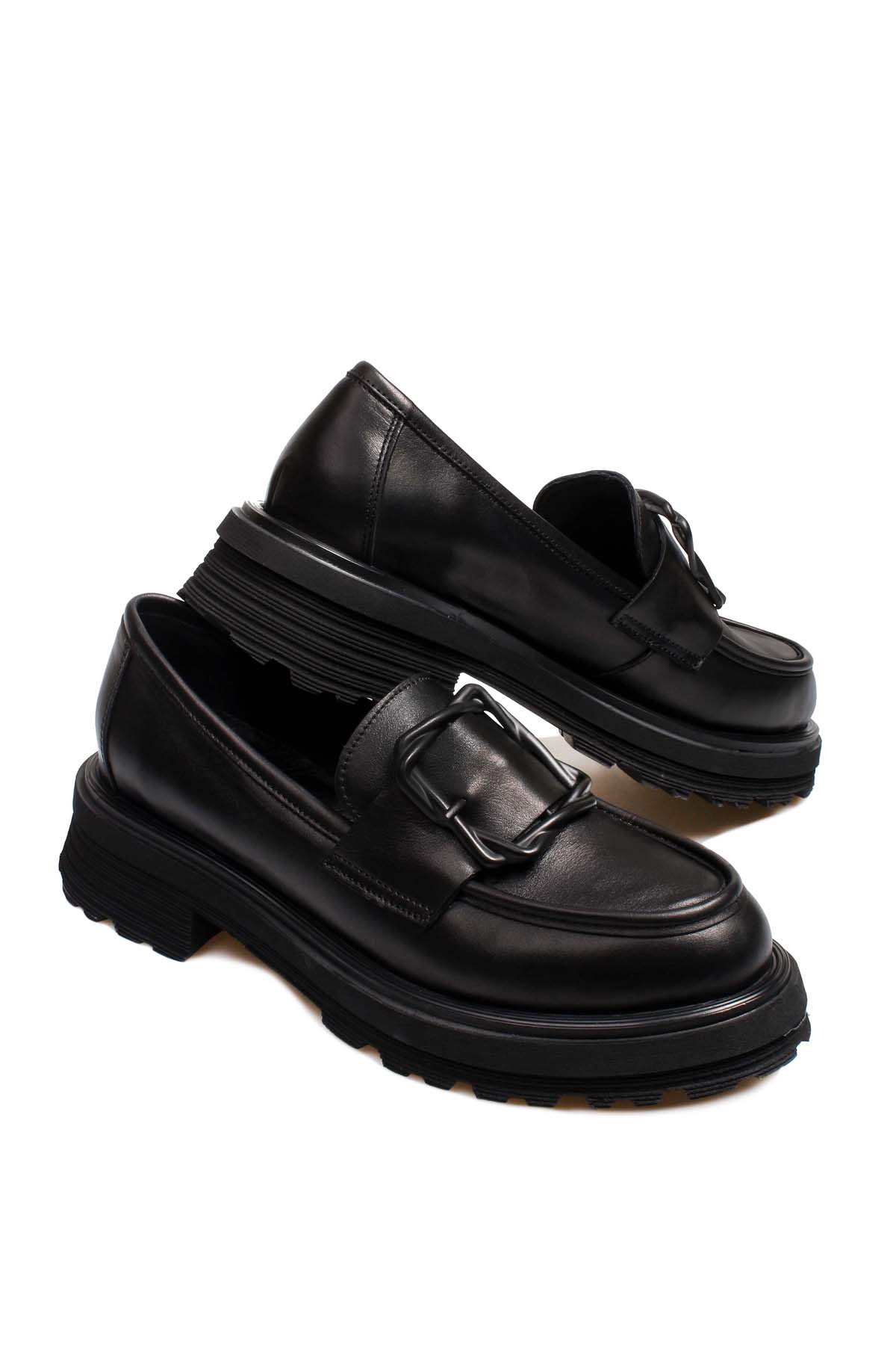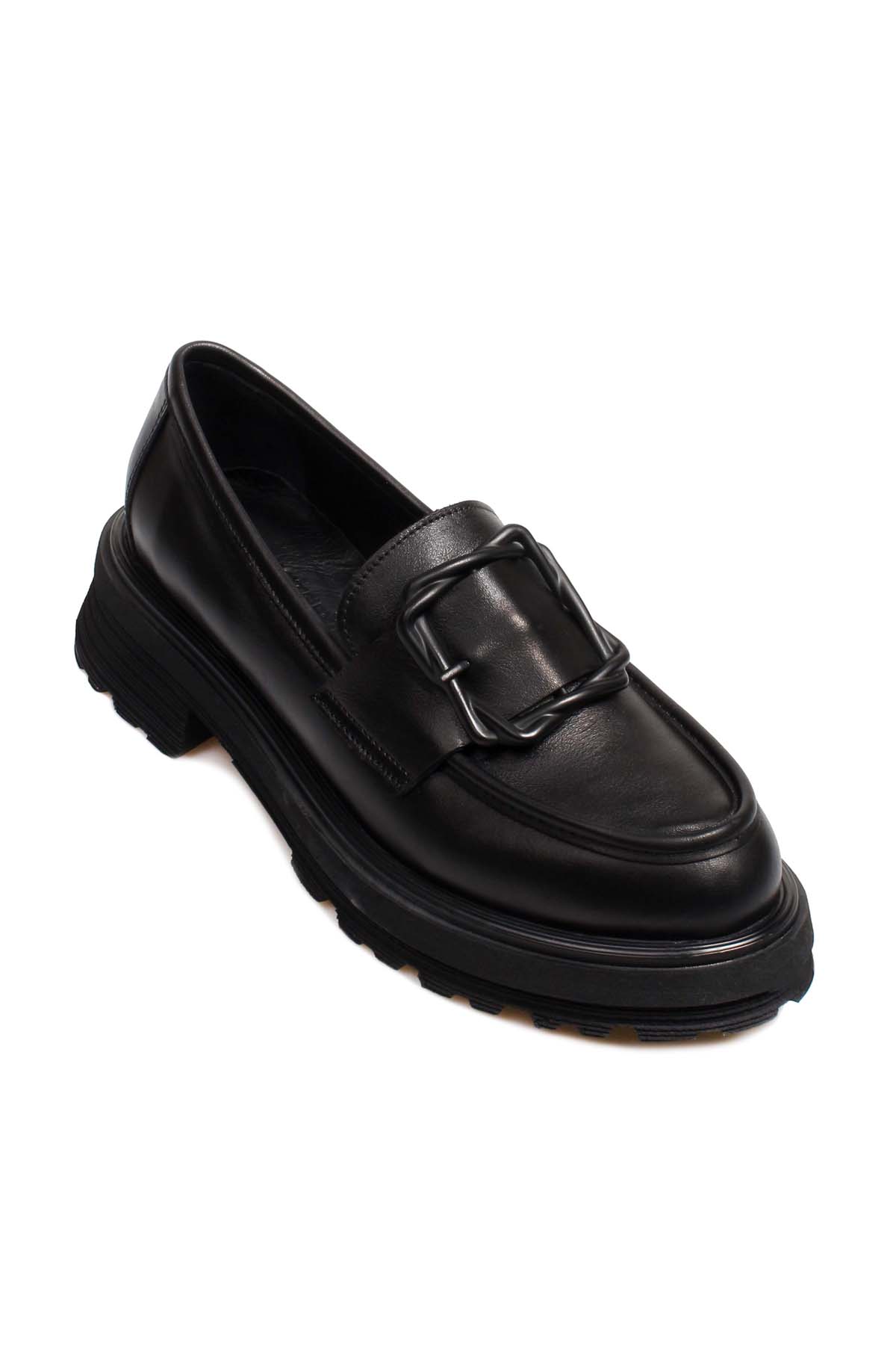 MirgeShoes Siyah Bağcıksız Kadın Casual Ayakkabı İçi Dışı Hakiki Deri MRG0110952613399