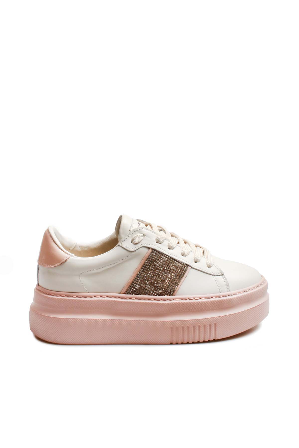 • MirgeShoes Pudra Bağcıklı Kadın Casual Ayakkabı İçi Dışı Hakiki Deri MRG011392610265