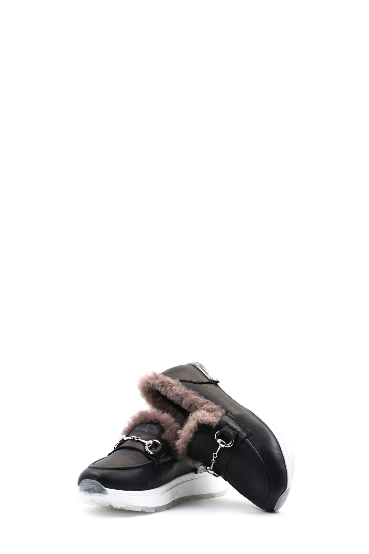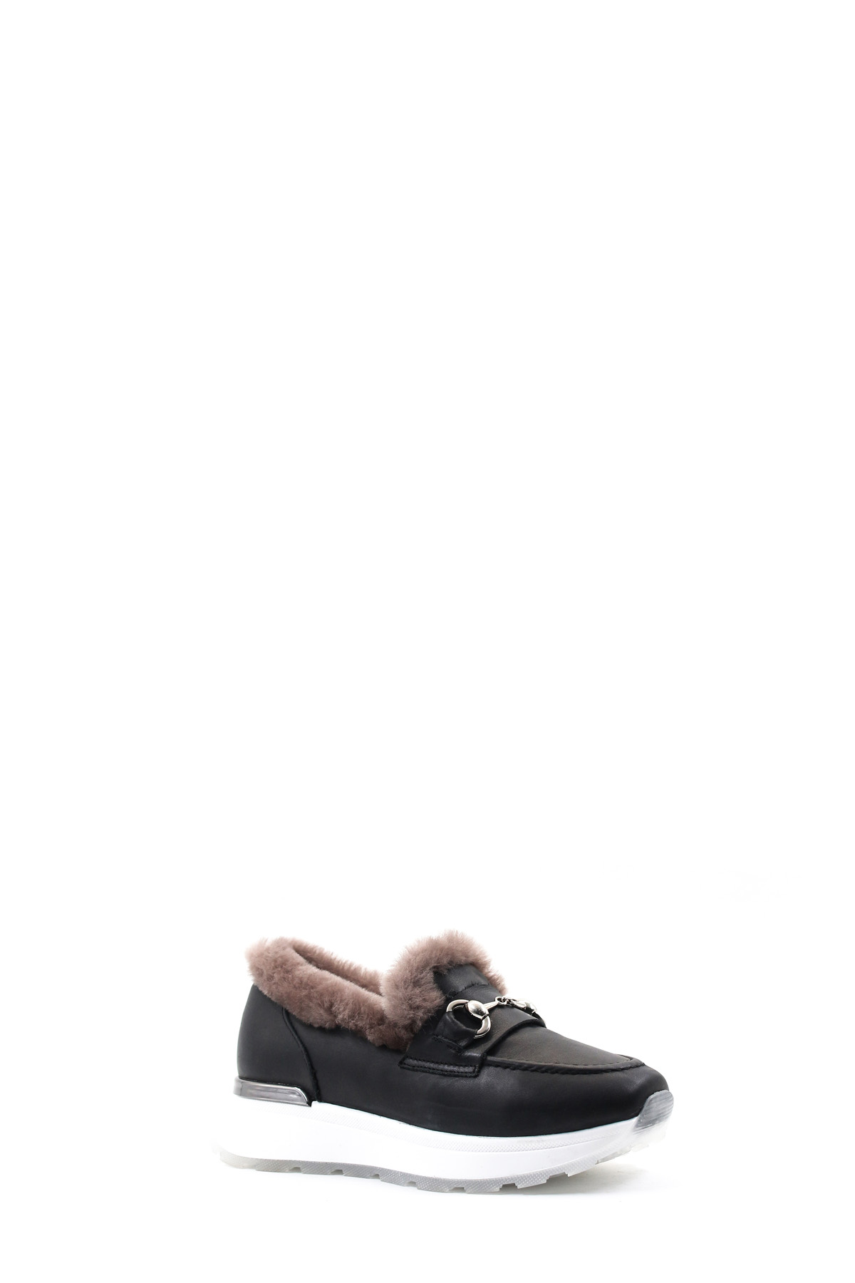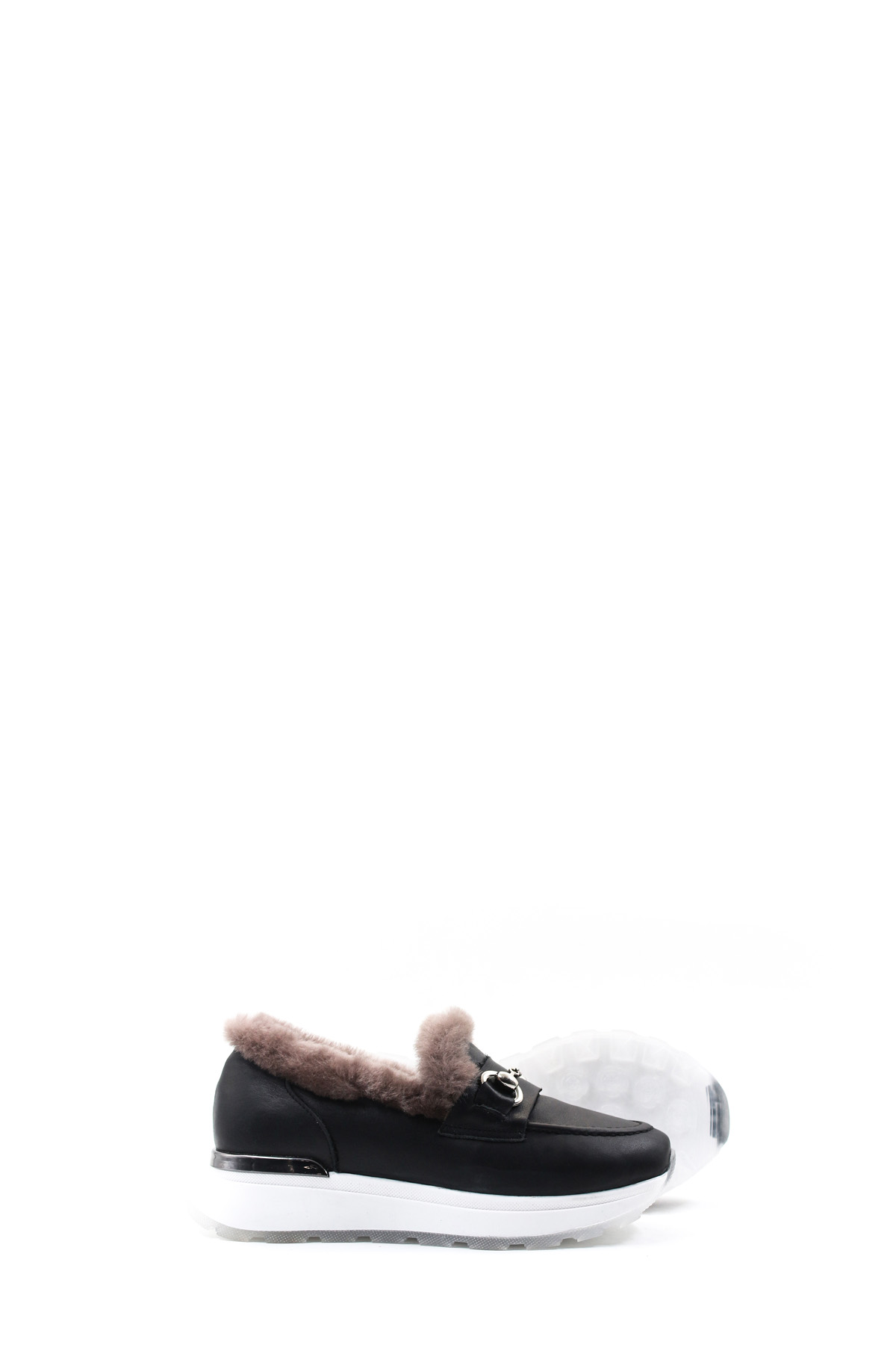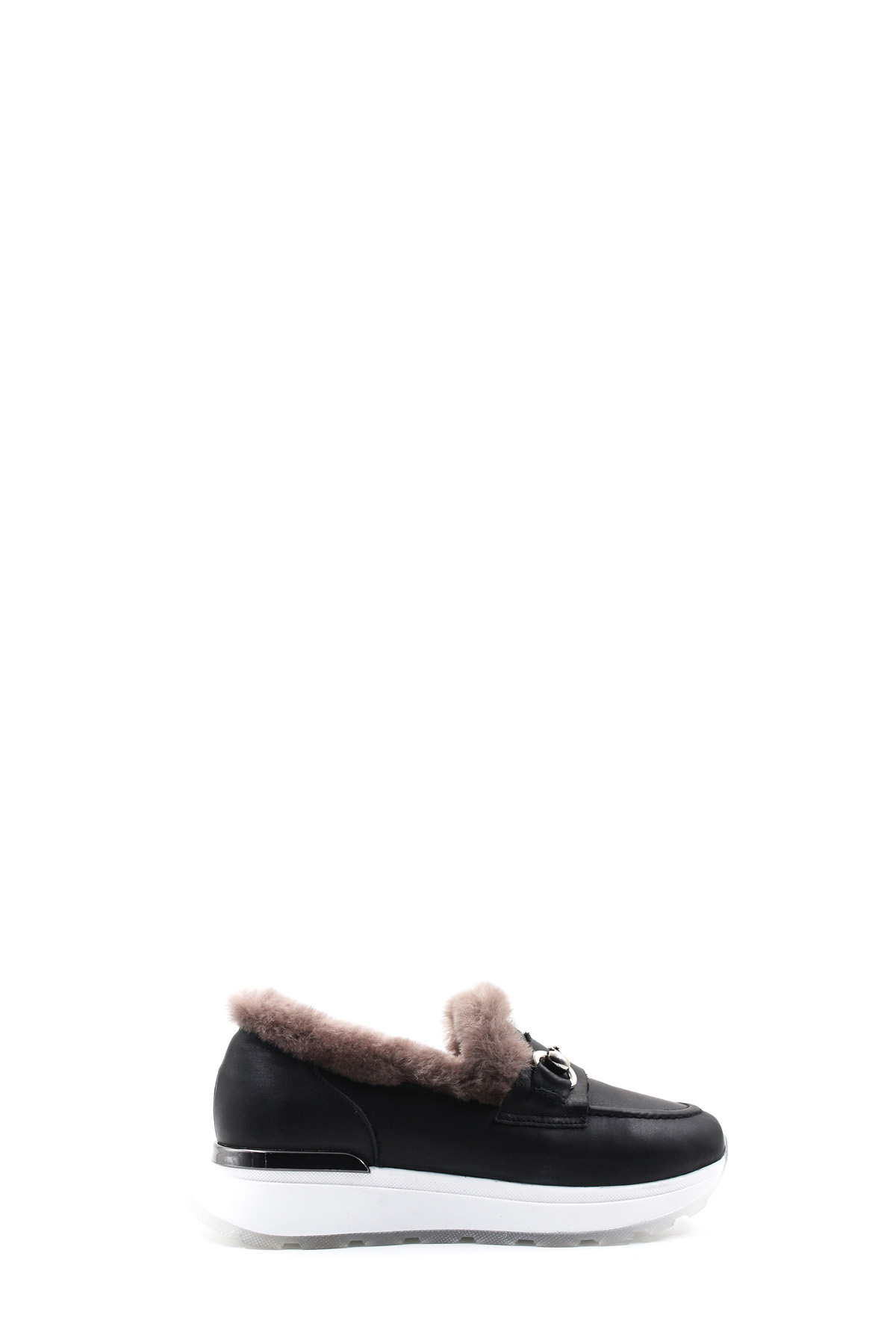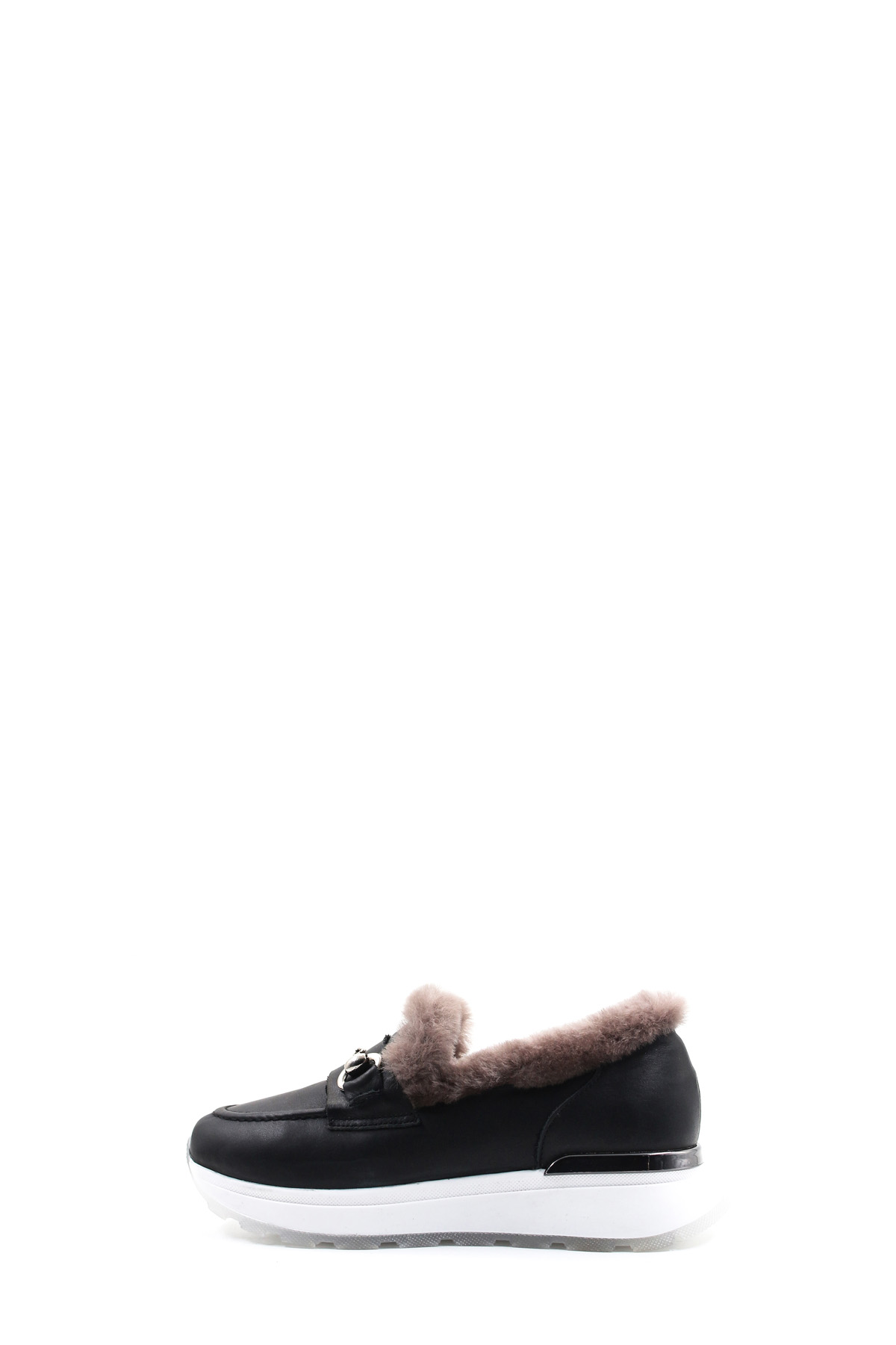 MirgeShoes Siyah Bağcıksız Kadın Günlük Ayakkabı İçi Kürklü Dışı Hakiki Deri MRG018871126124718