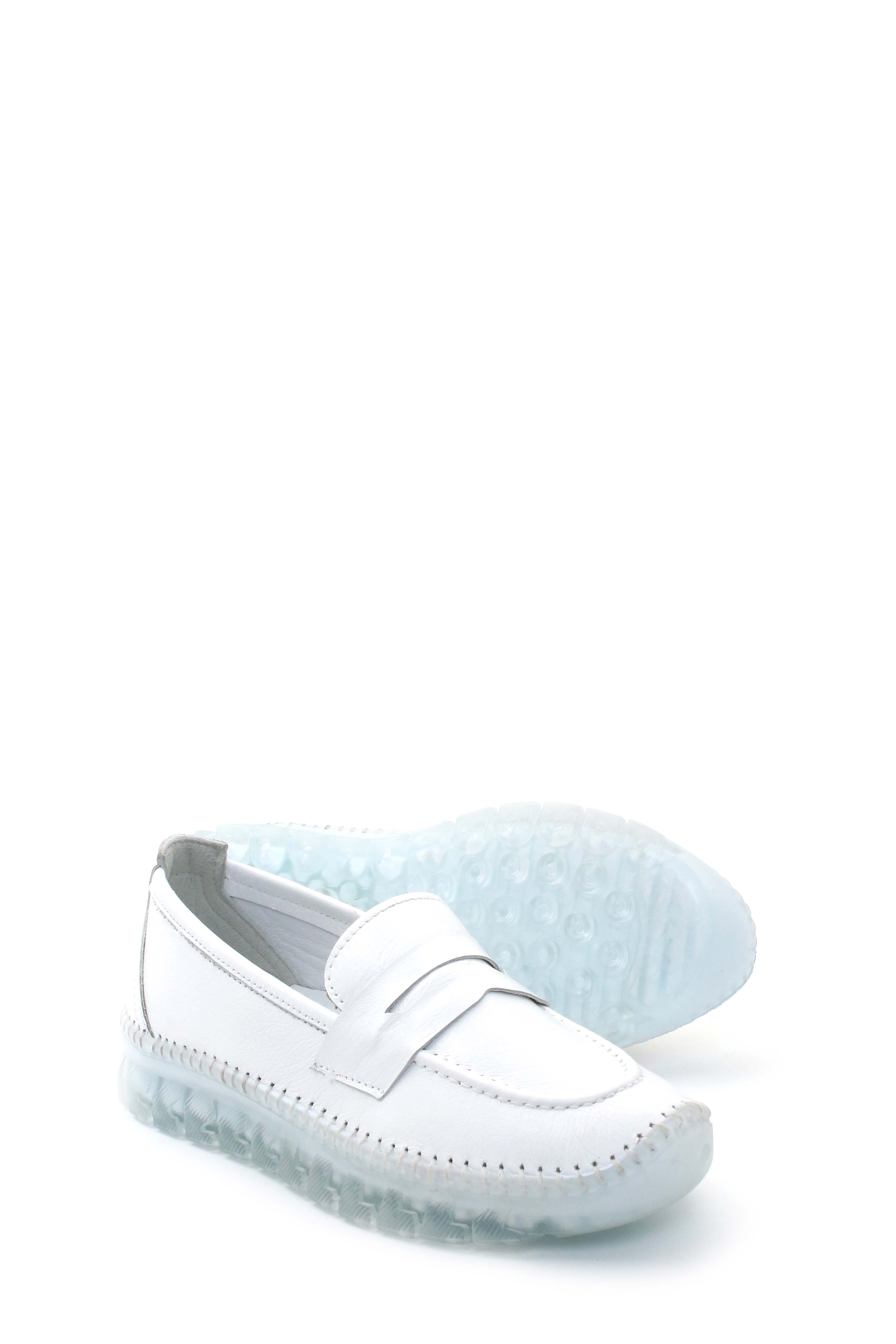 • MirgeShoes Beyaz Bağcıksız Kadın Casual Ayakkabı İçi Dışı Hakiki Deri MRG01739261957