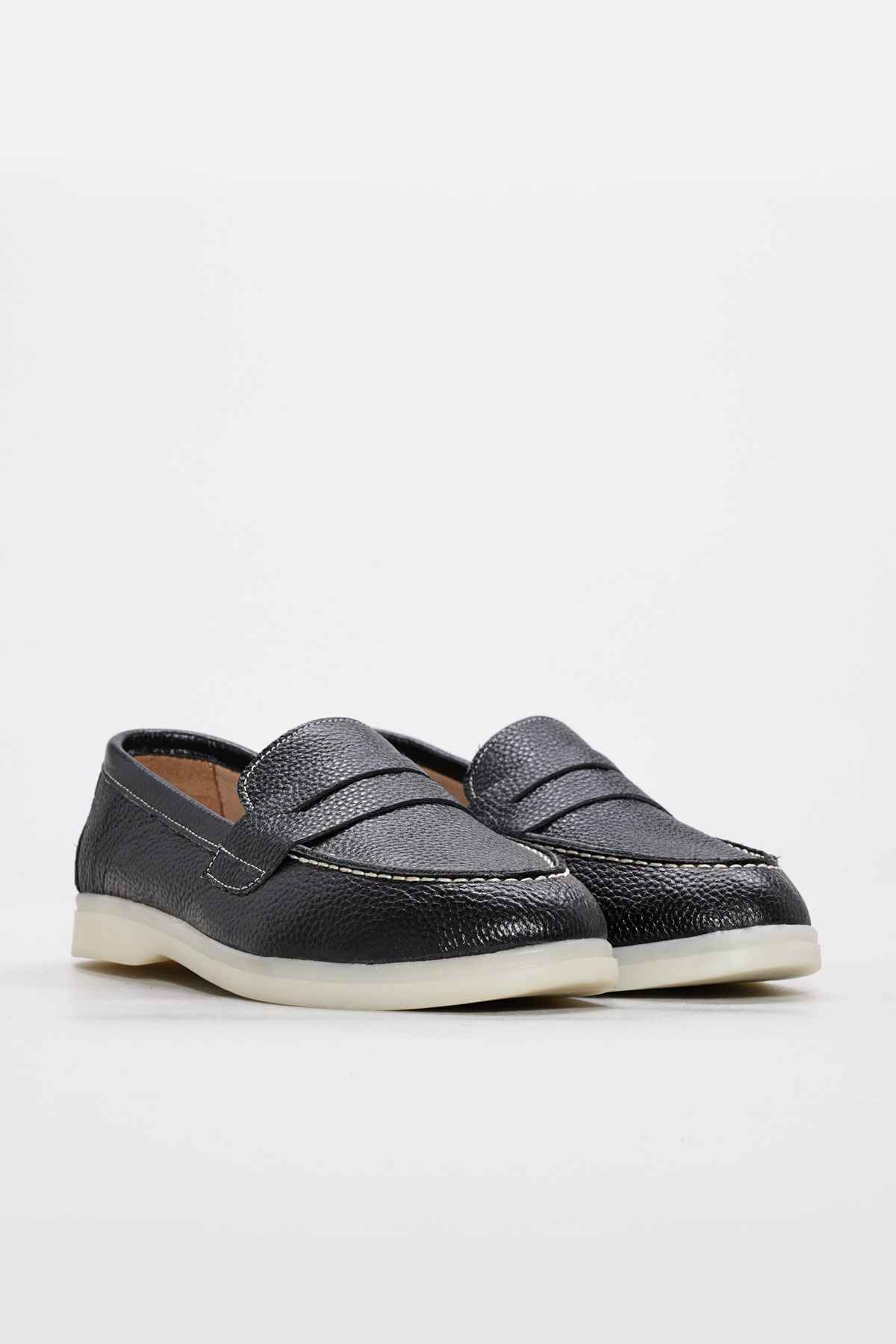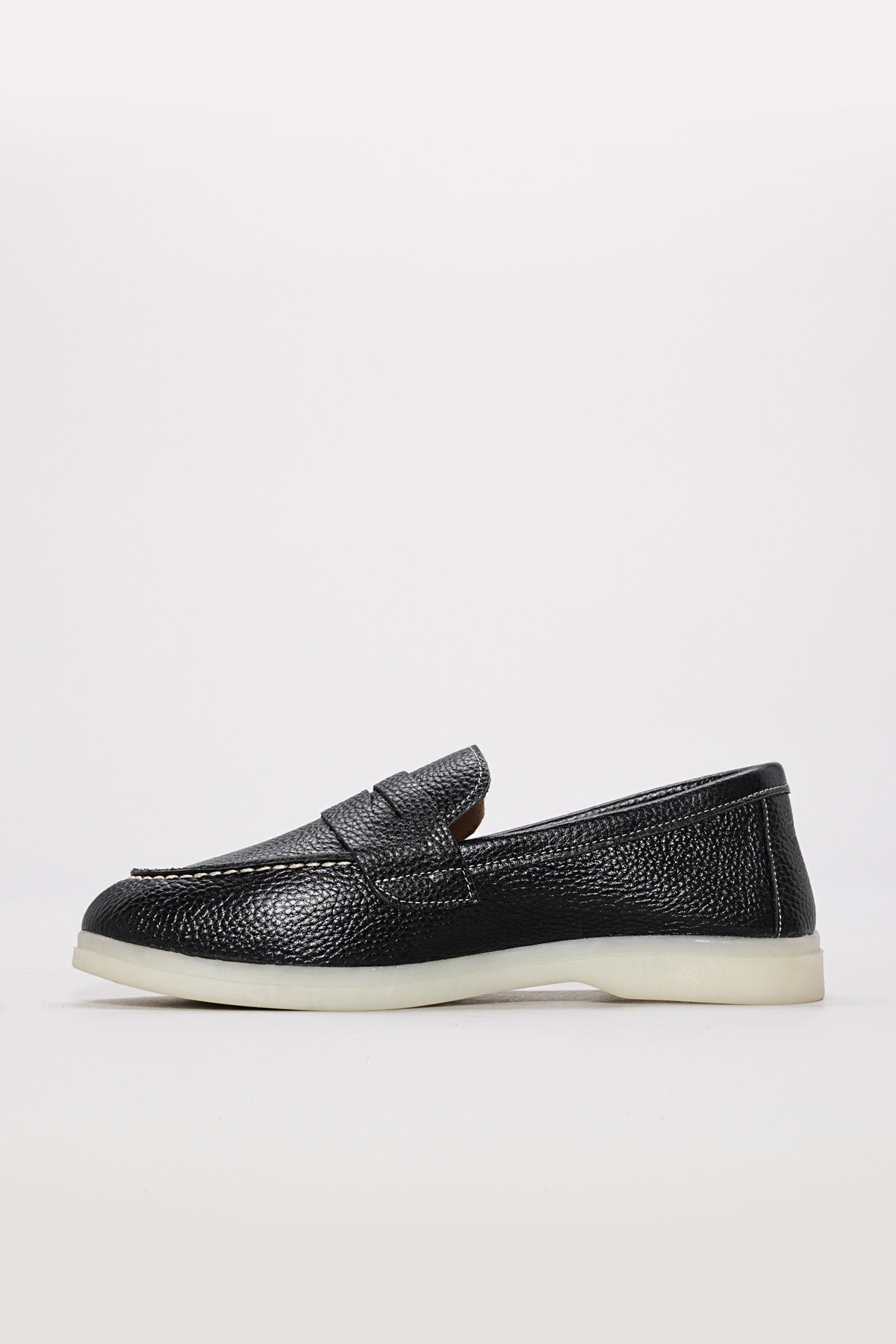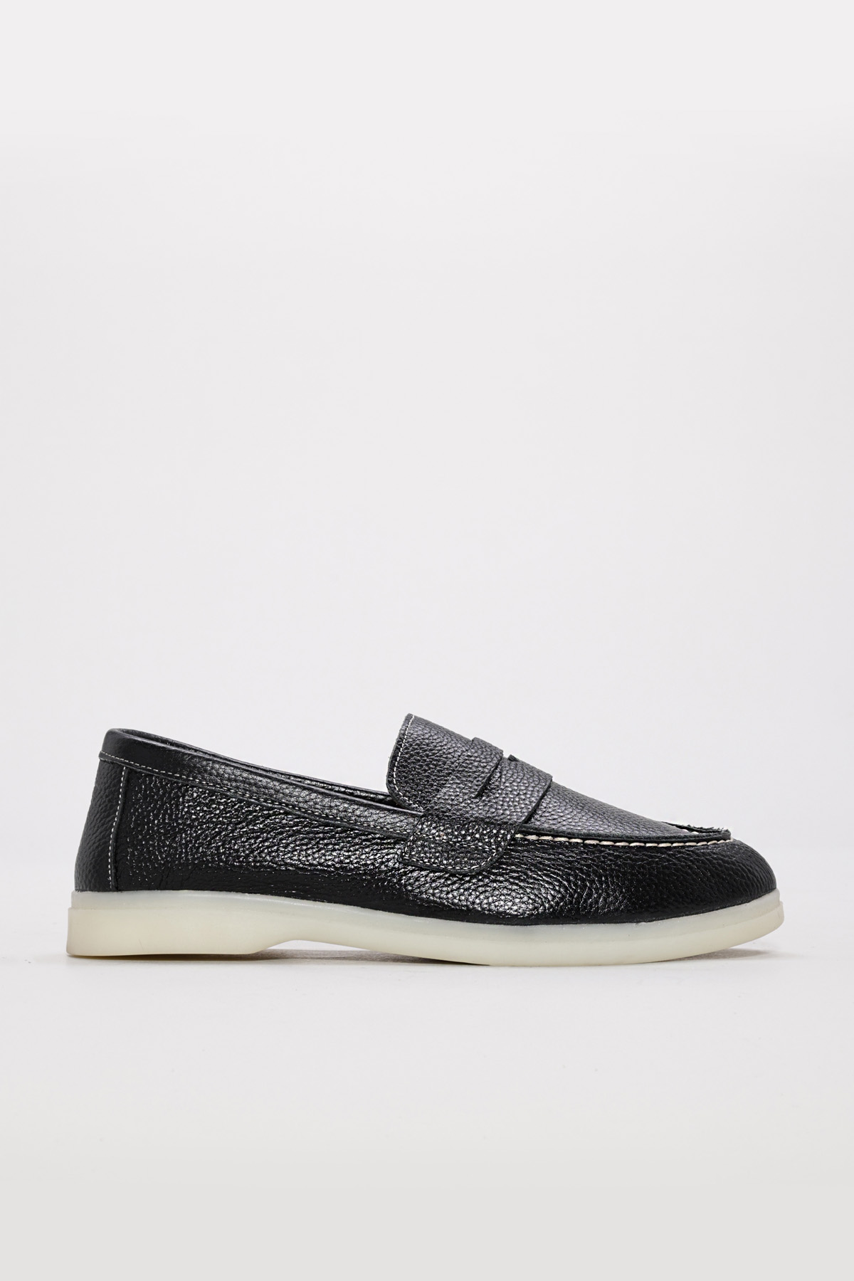 MirgeShoes Siyah Bağcıksız Kadın Casual Ayakkabı İçi Dışı Hakiki Deri MRG01863261234