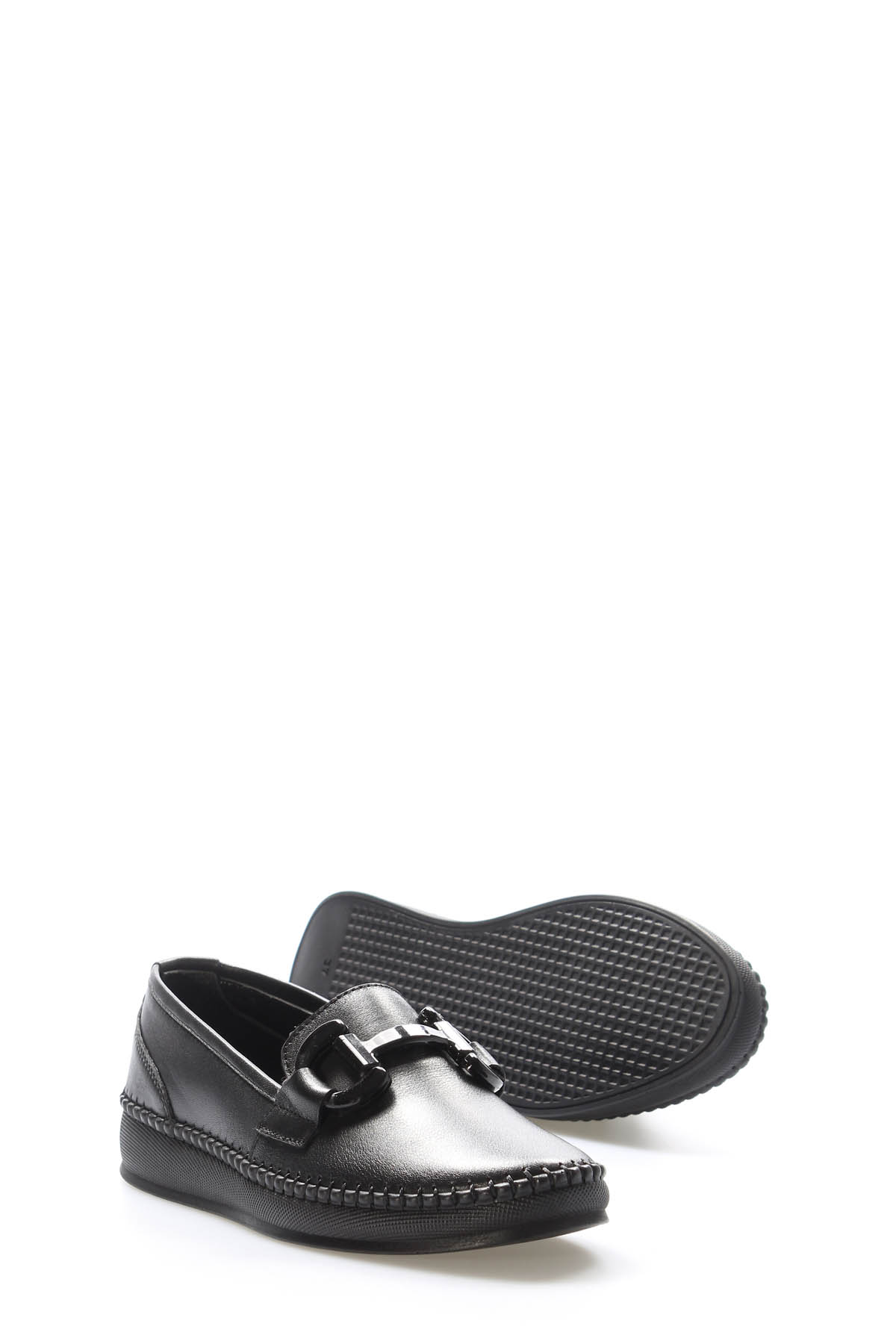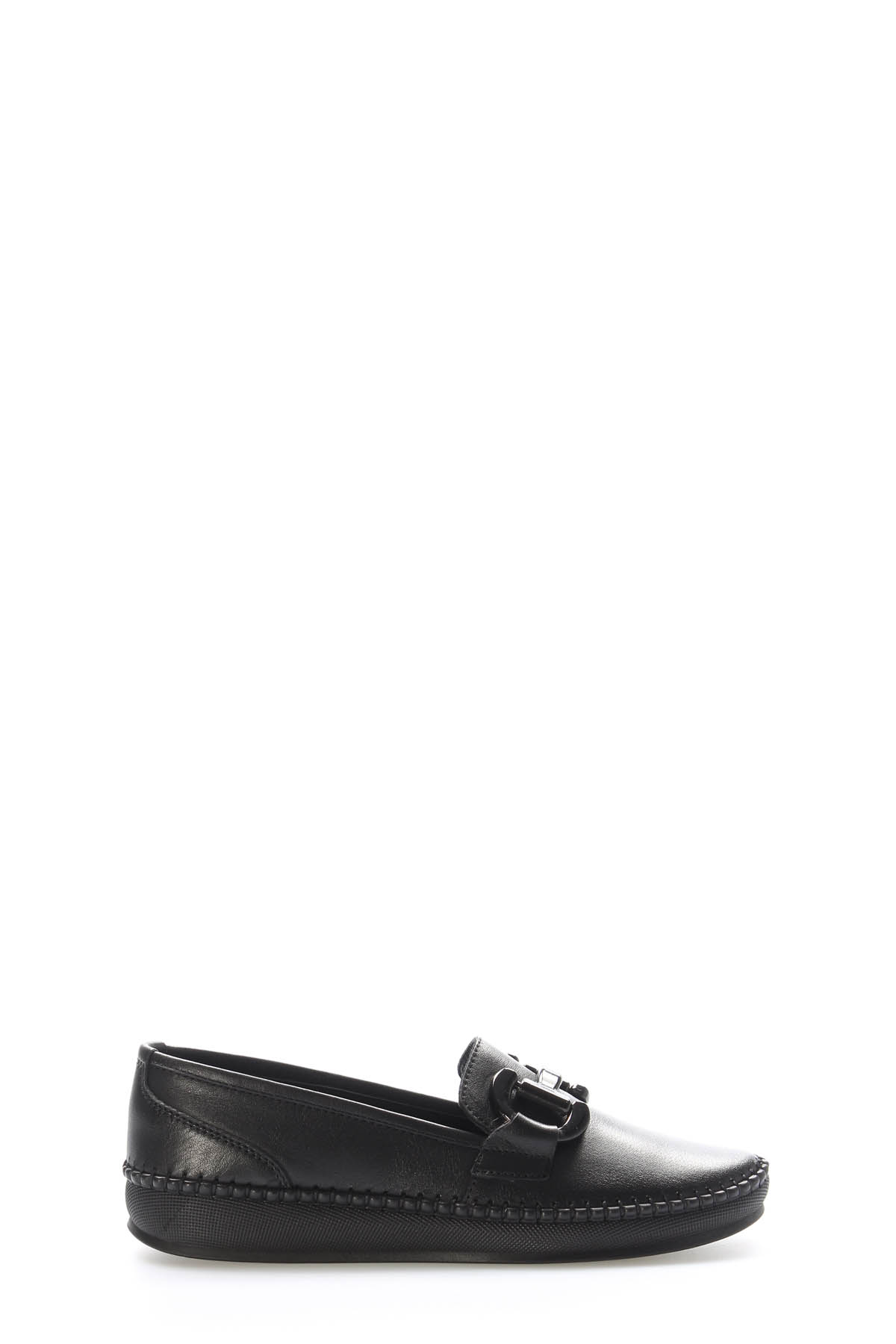 MirgeShoes Siyah Bağcıksız Kadın Casual Ayakkabı İçi Dışı Hakiki Deri MRG012942612262