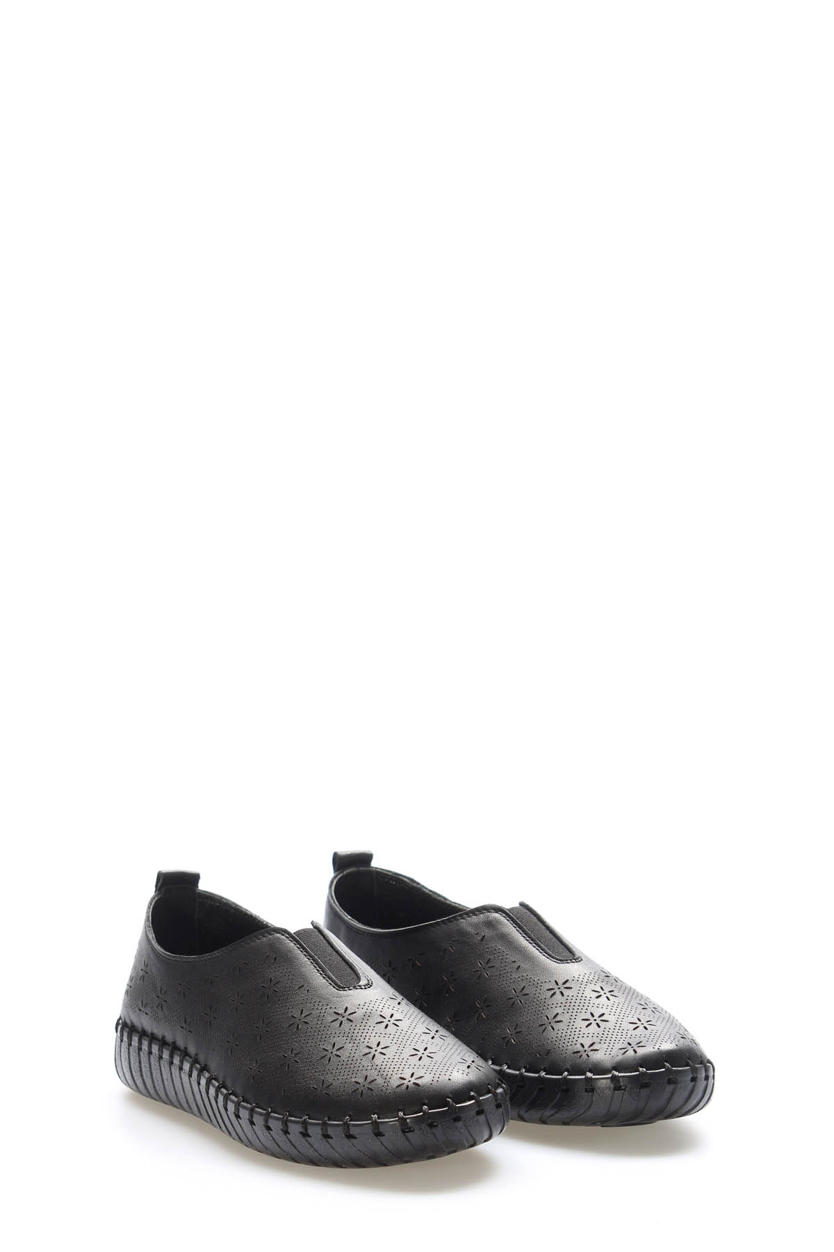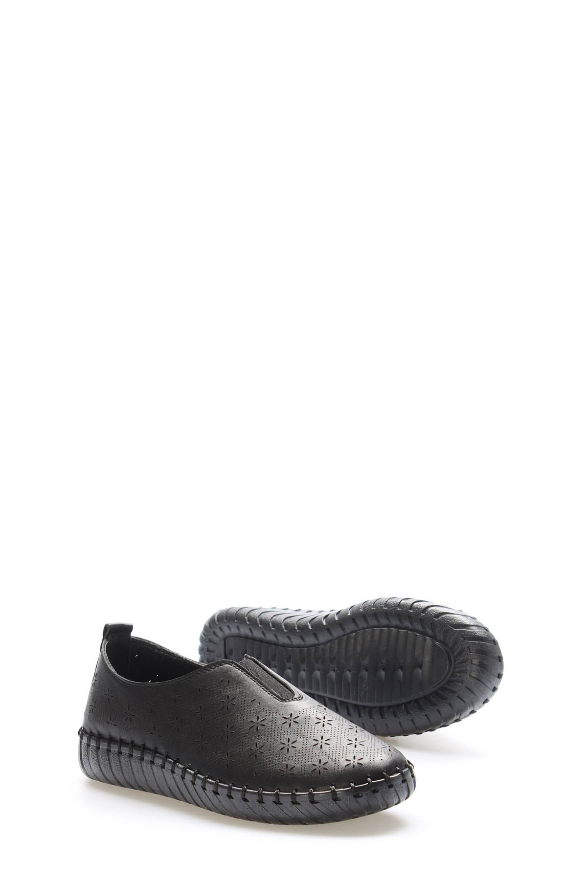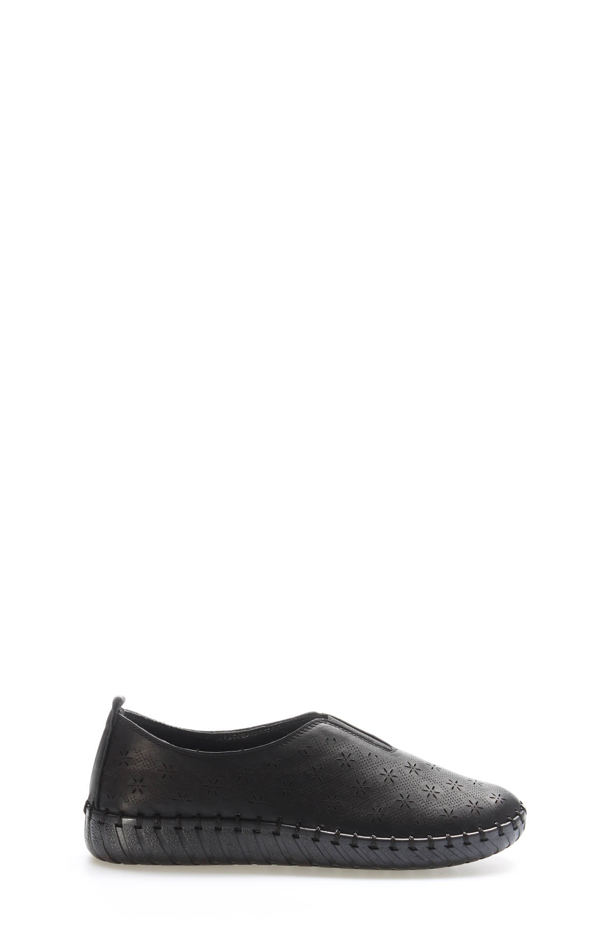 MirgeShoes Siyah Bağcıksız Kadın Casual Ayakkabı İçi Dışı Hakiki Deri MRG012692616918