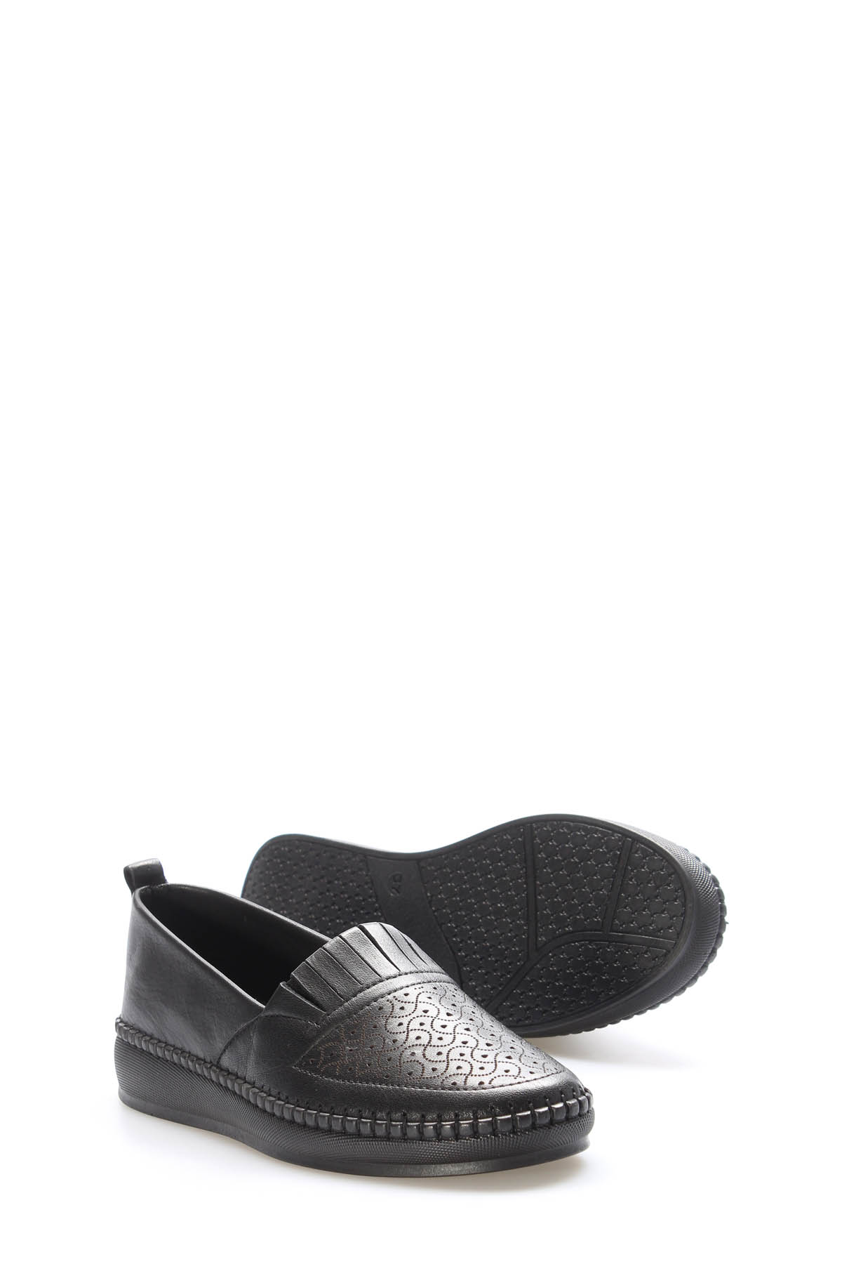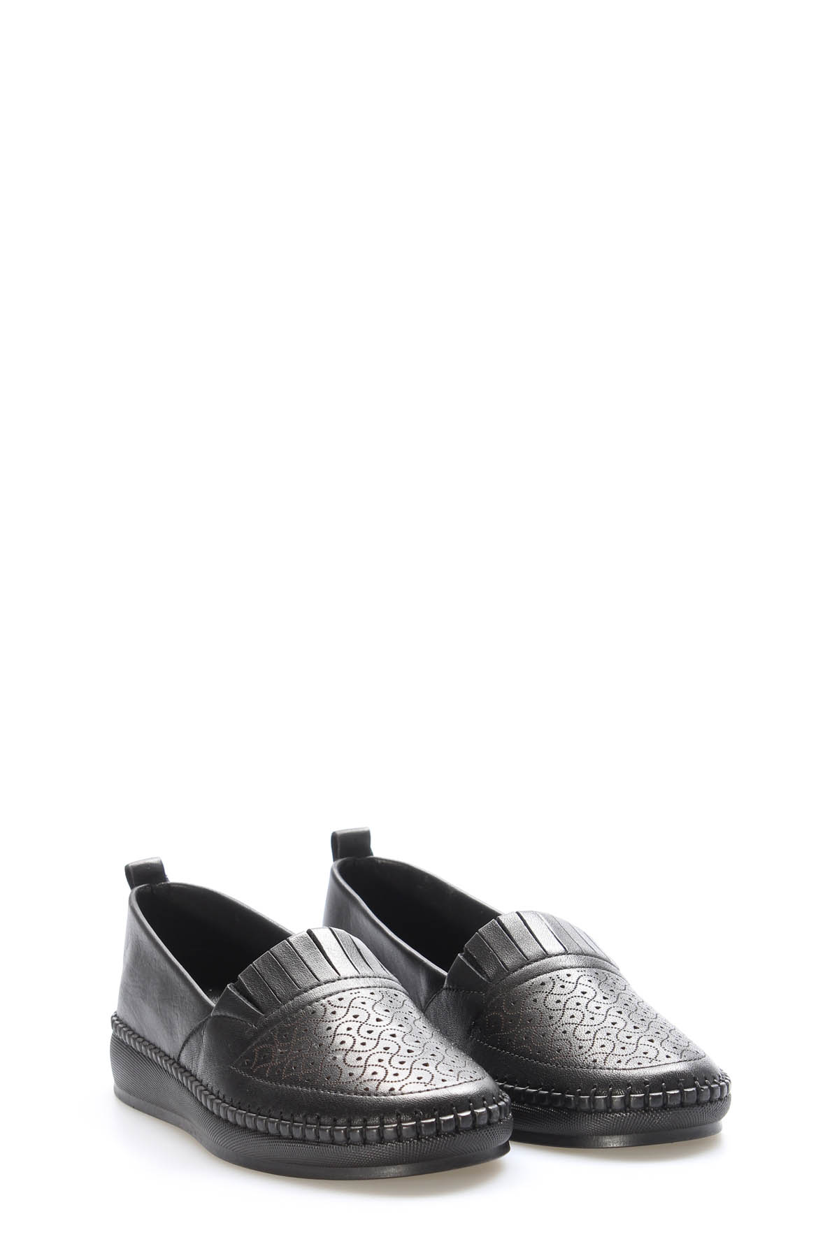 • MirgeShoes Siyah Bağcıksız Kadın Casual Ayakkabı İçi Dışı Hakiki Deri MRG012942612241