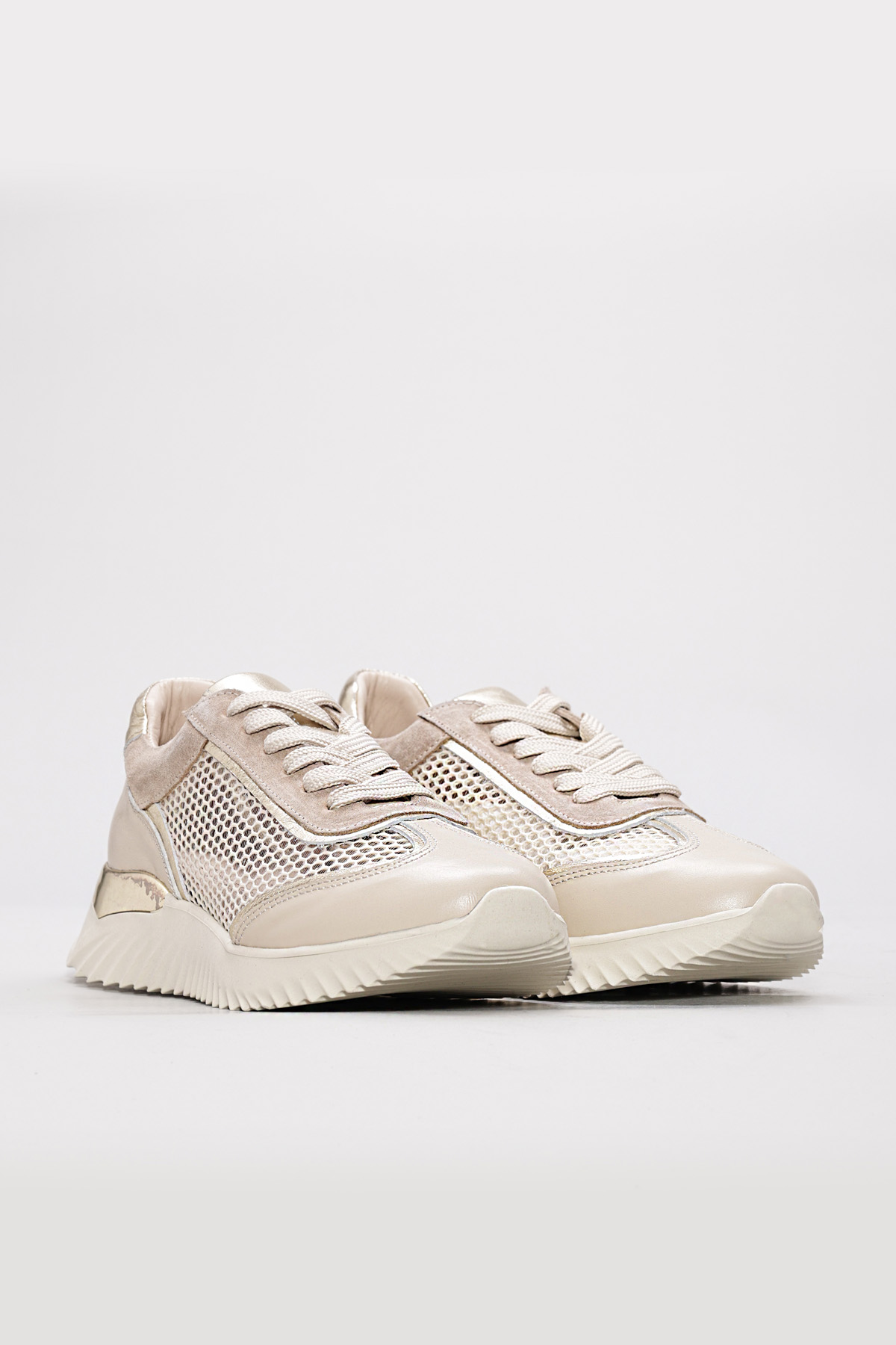 MirgeShoes Bej-Altın Bağcıklı Kadın Casual Ayakkabı İçi Dışı Hakiki Deri MRG0188726125293