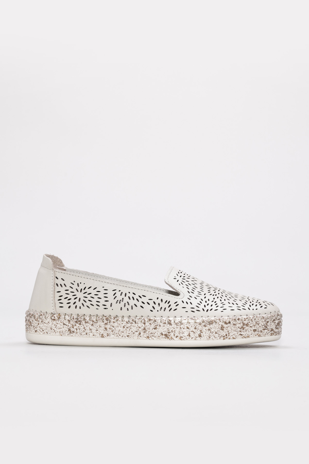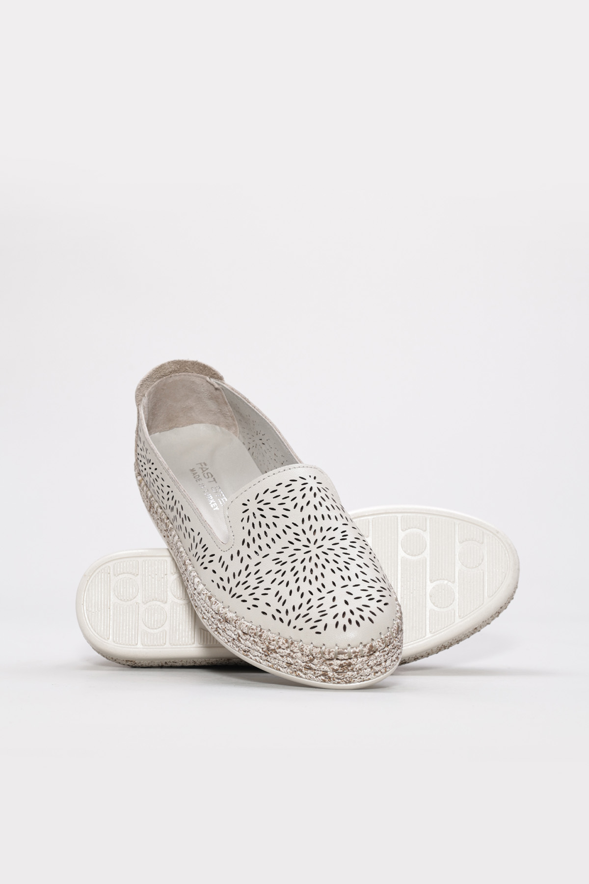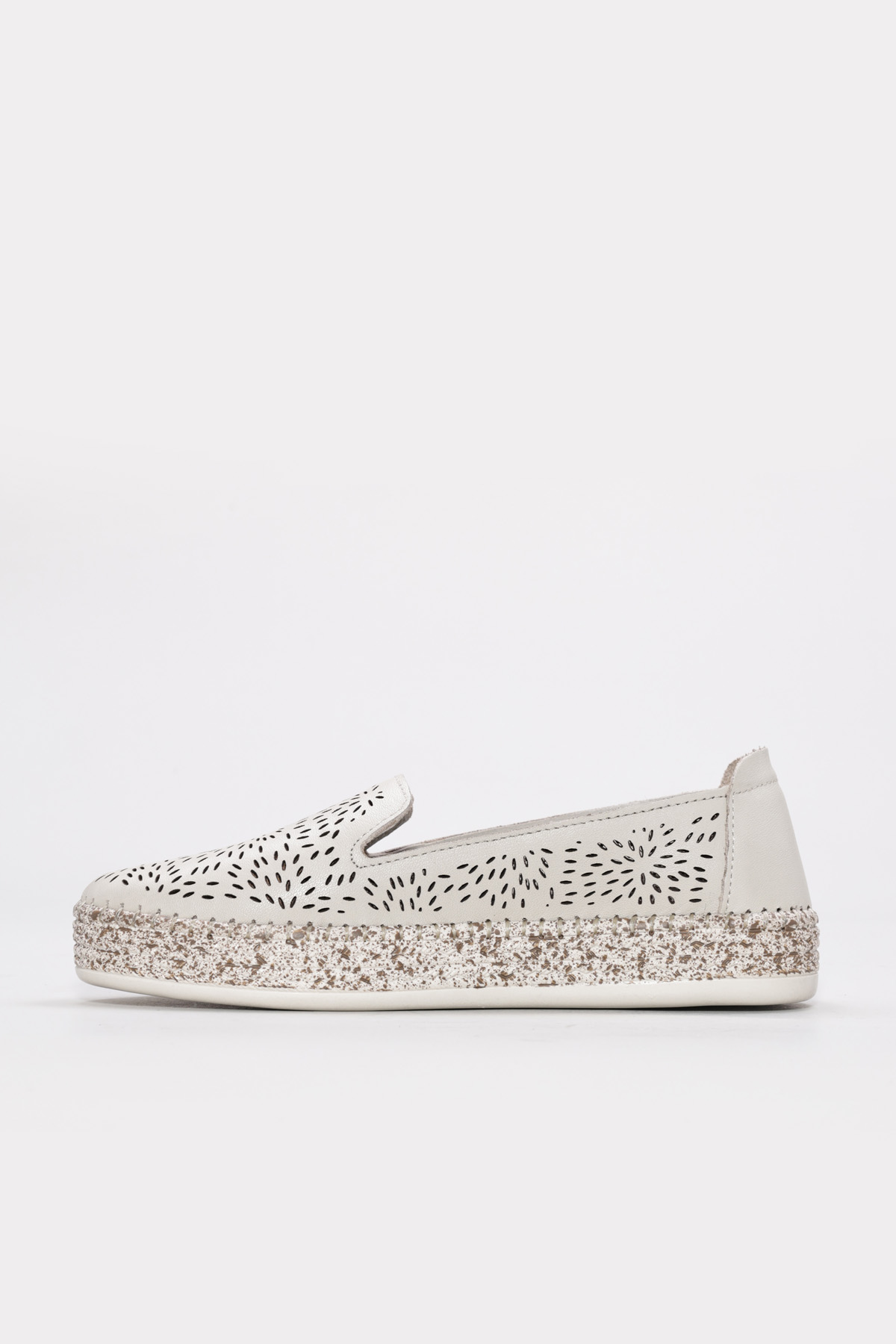 MirgeShoes Bej Bağcıksız Kadın Casual Ayakkabı İçi Dışı Hakiki Deri MRG012692612218