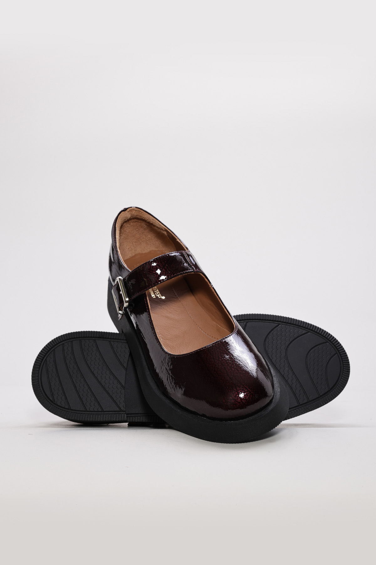 MirgeShoes Bordo Tokalı Kadın Casual Rugan Ayakkabı İçi Dışı Hakiki Deri MRG01340261471