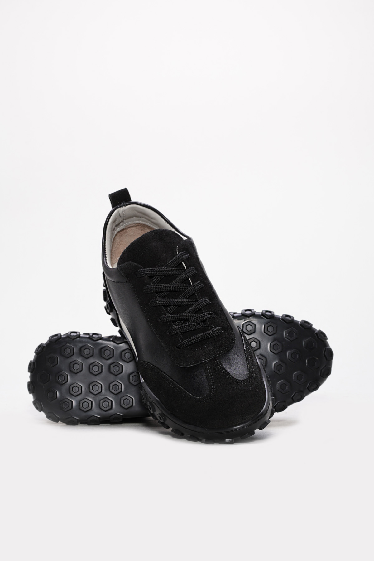 MirgeShoes Siyah Bağcıklı Kadın Casual Ayakkabı İçi Dışı Hakiki Süet Deri MRG0129926124252