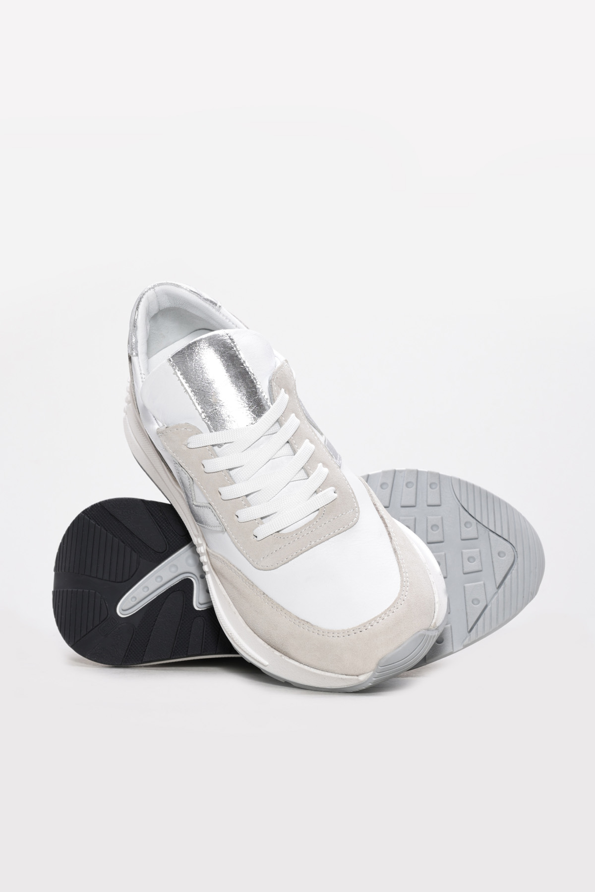 • MirgeShoes Beyaz-Gümüş Bağcıklı Kadın Spor Ayakkabı İçi Dışı Hakiki Deri MRG01299261370