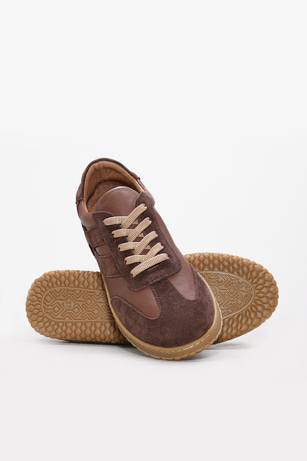 MirgeShoes Kahve Bağcıklı Kadın Casual Ayakkabı İçi Dışı Hakiki Süet Deri MRG013762612221