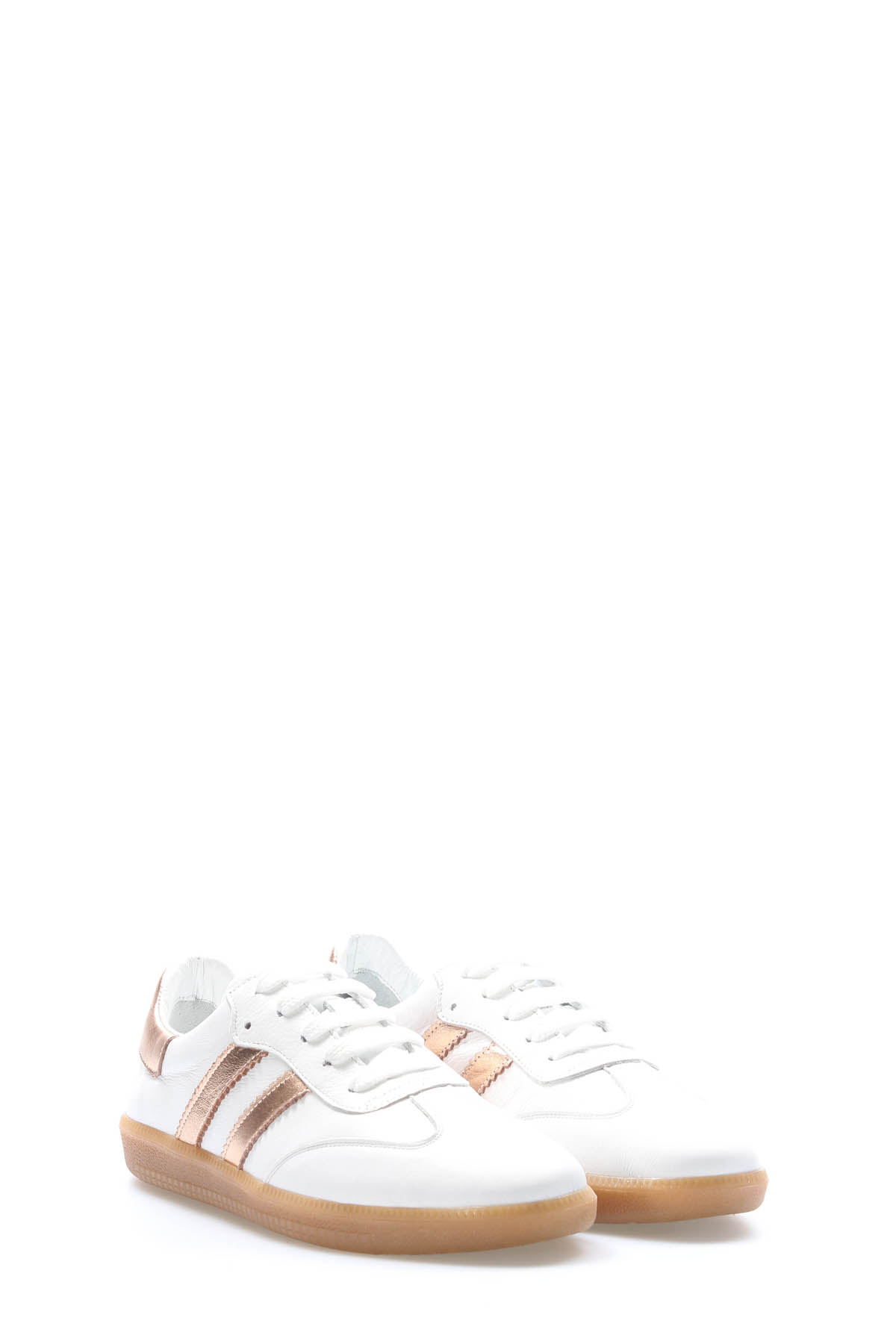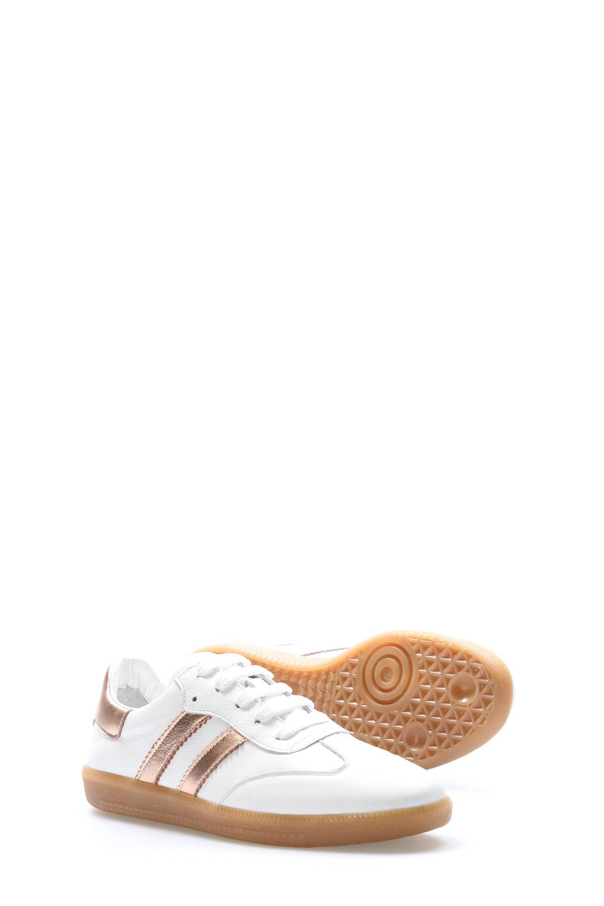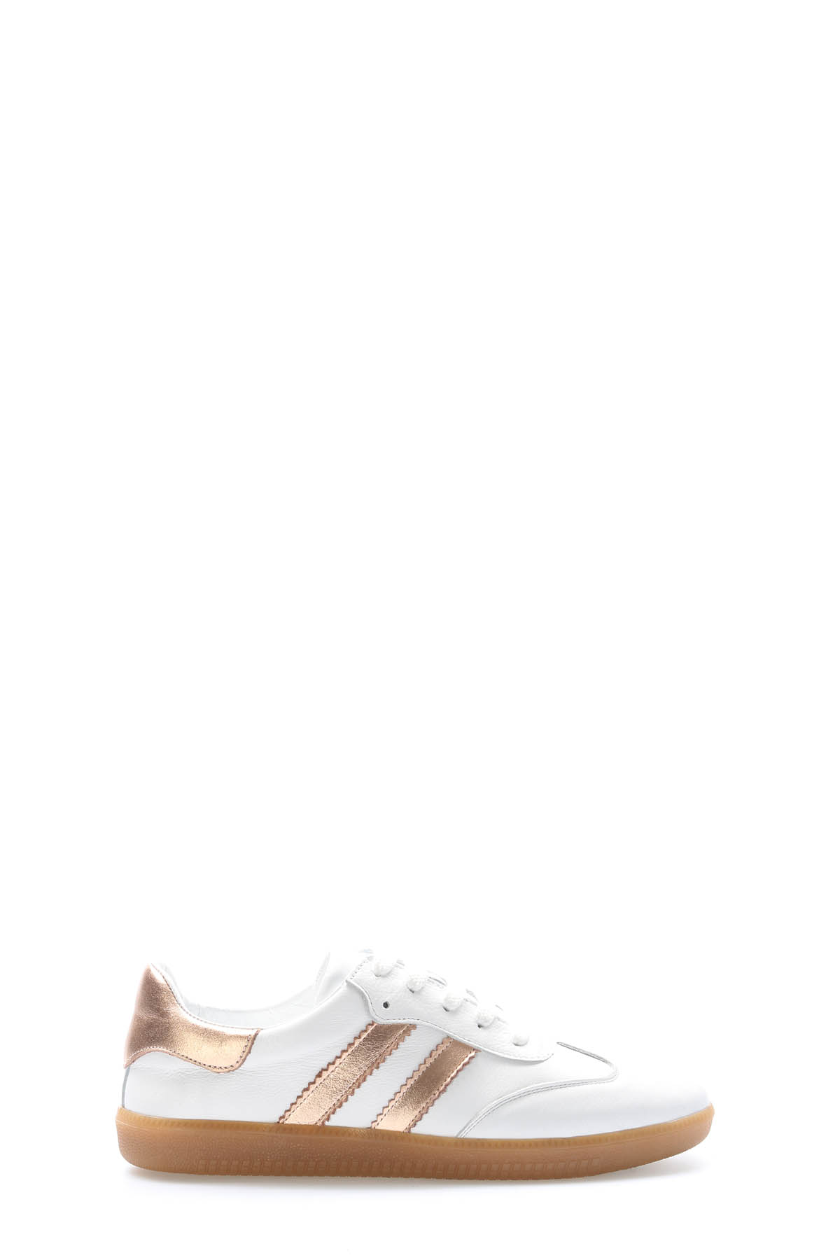 • MirgeShoes İçi Dışı Hakiki Deri Beyaz Gold Kadın Casual Ayakkabı AH081822612429
