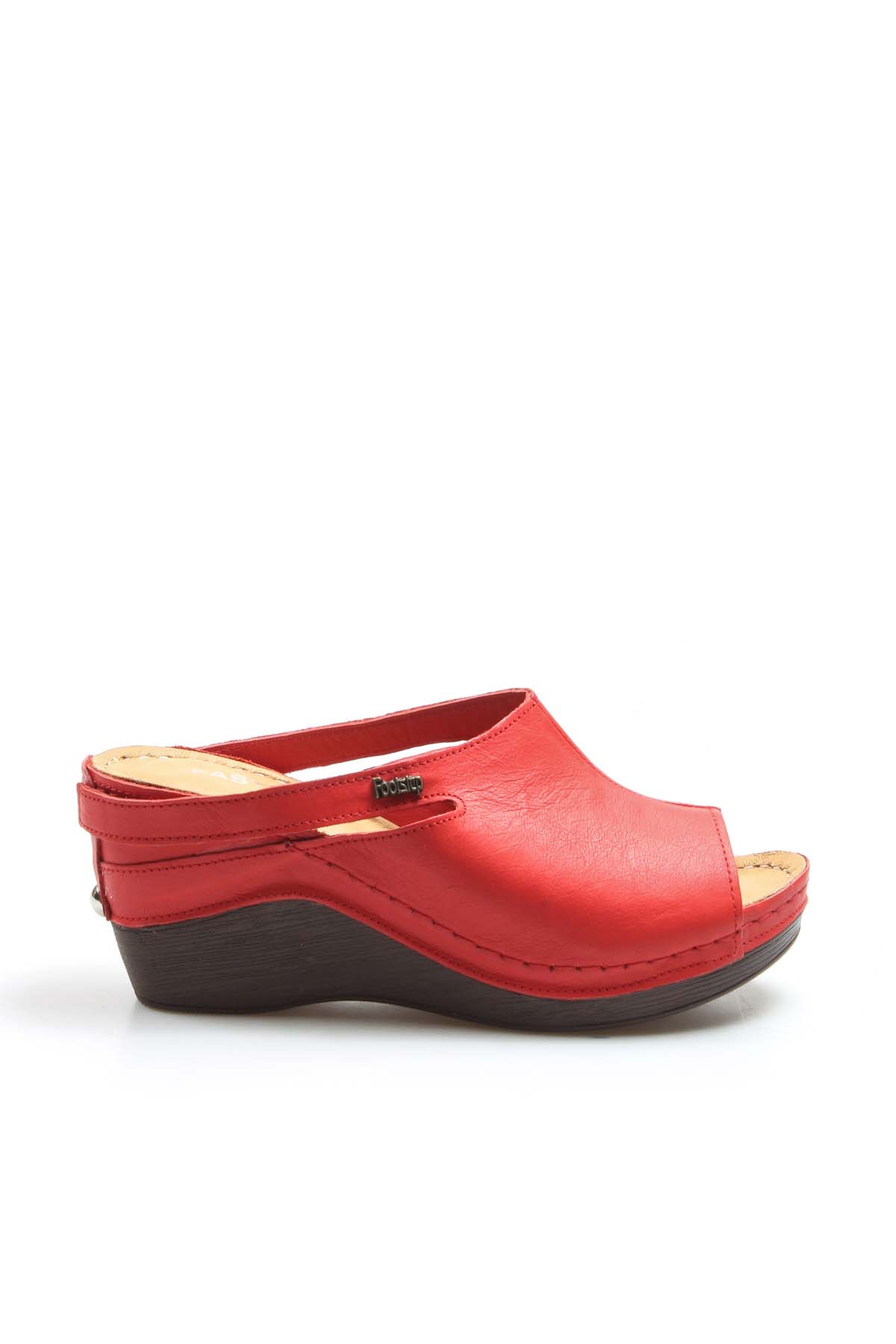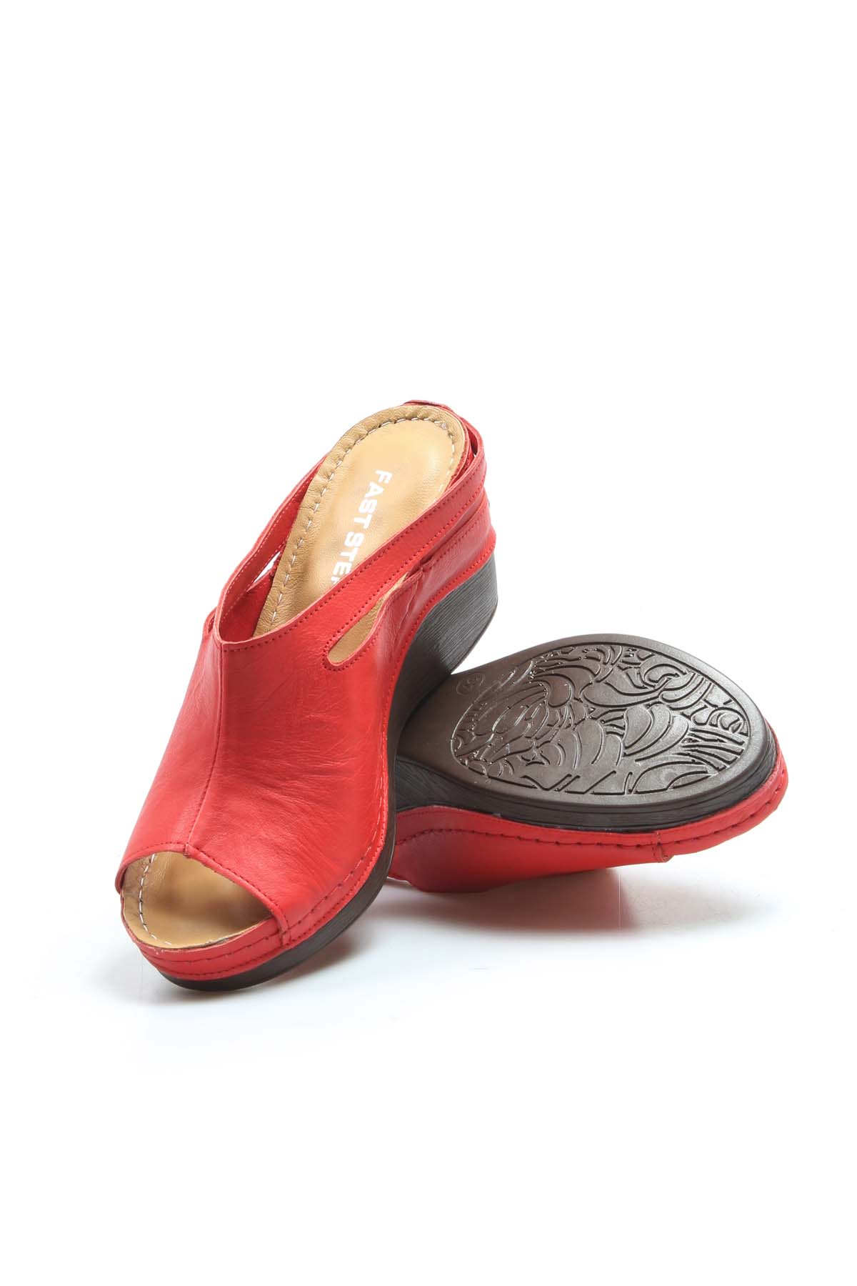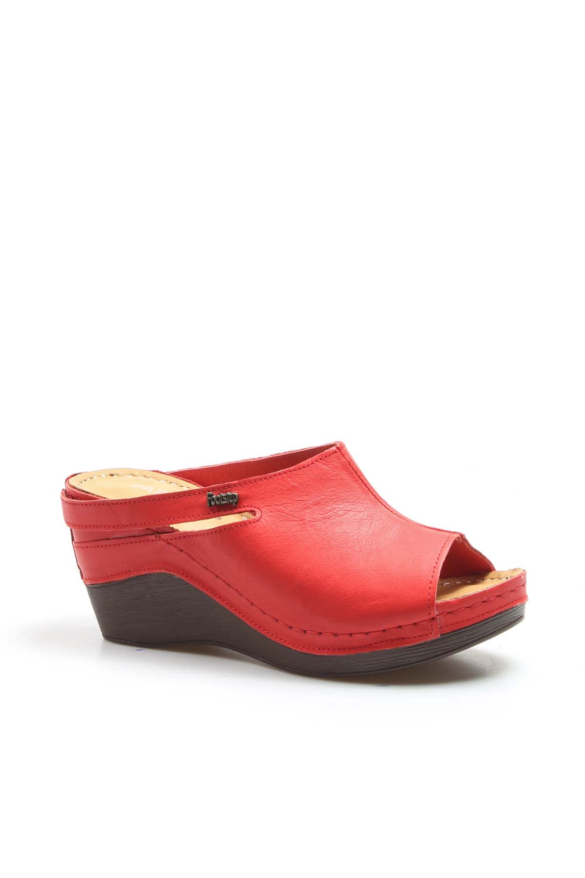 • MirgeShoes Kadın Dolgu Topuklu Terlik İçi Dışı Hakiki Deri Kırmızı  MRG0111022611113