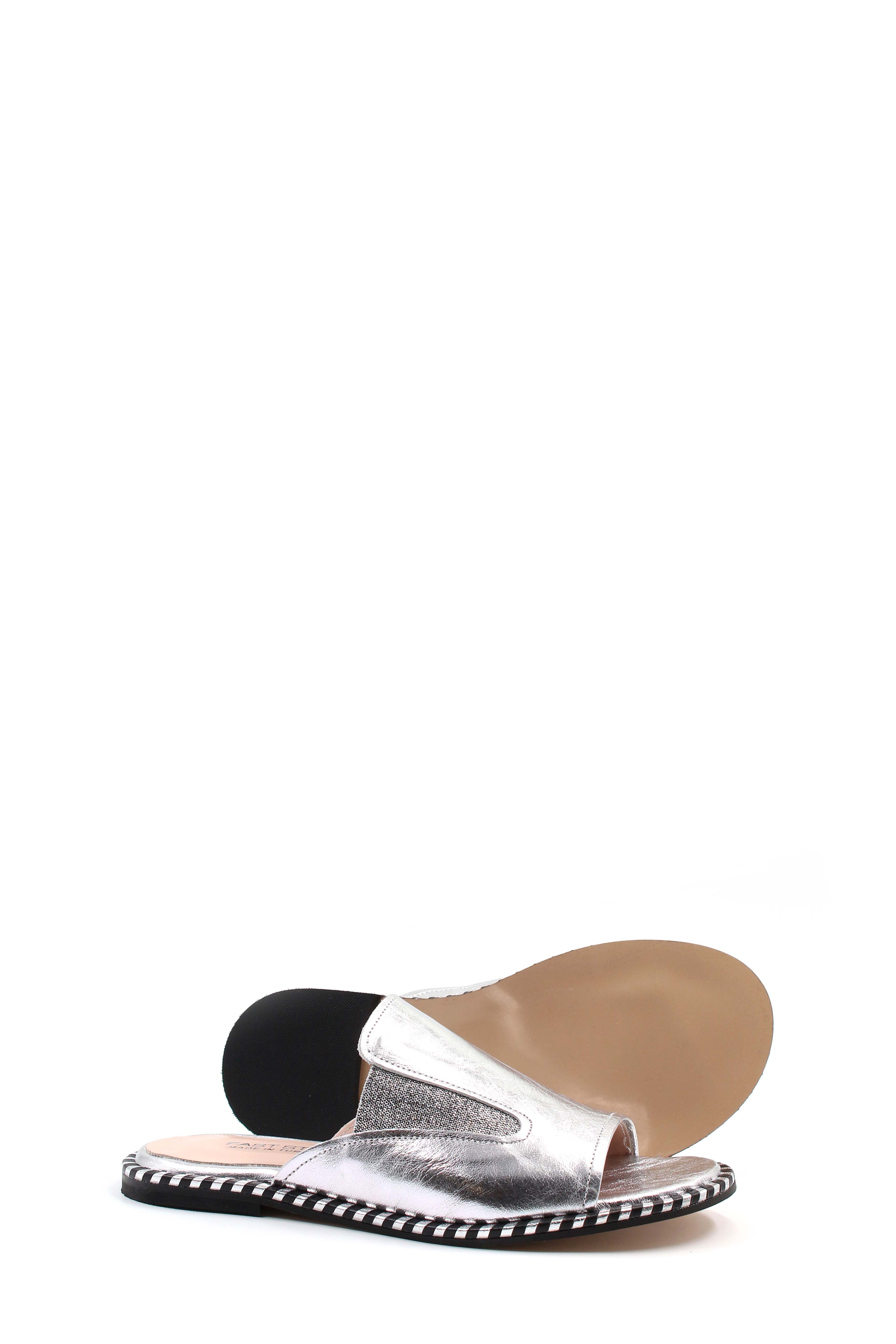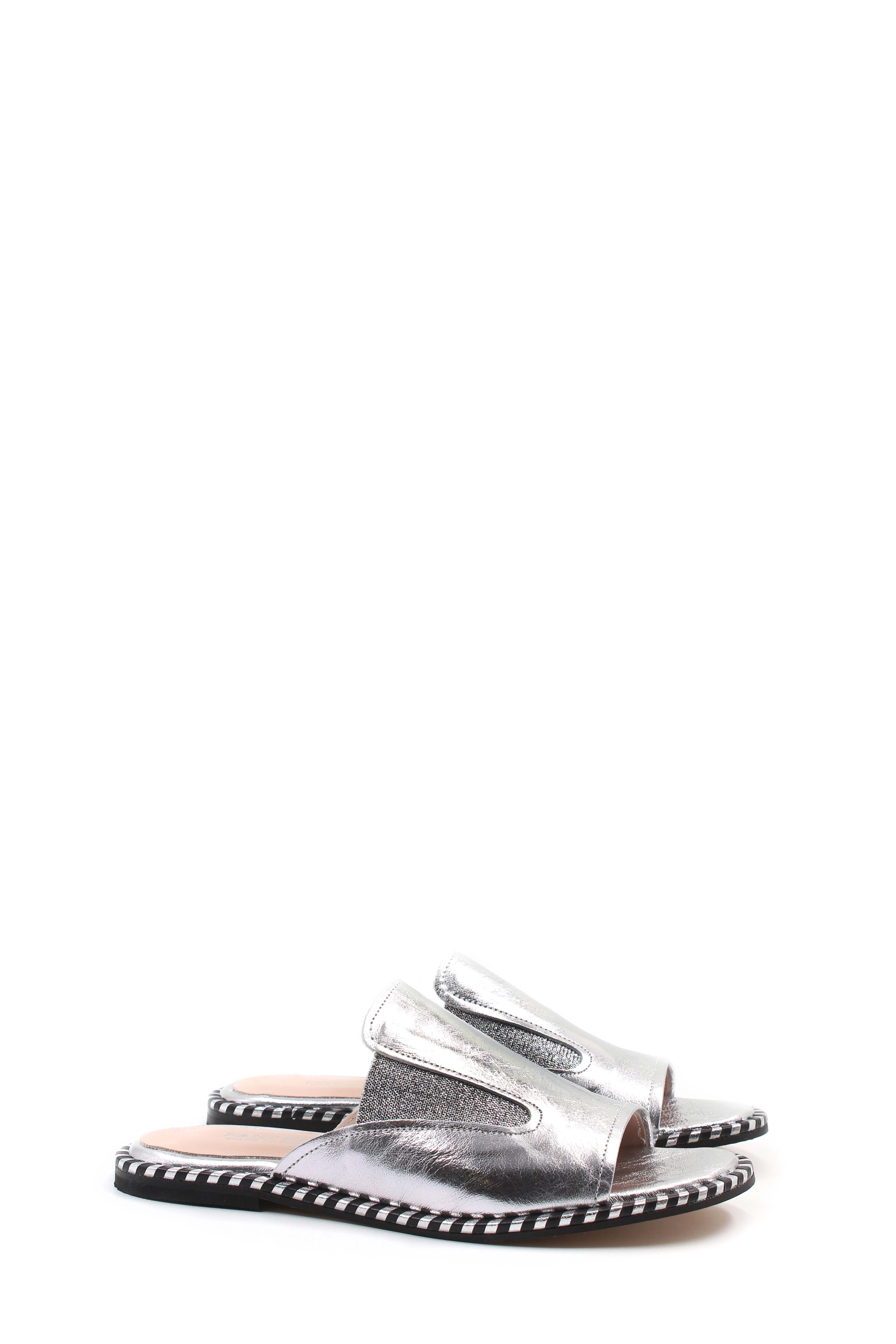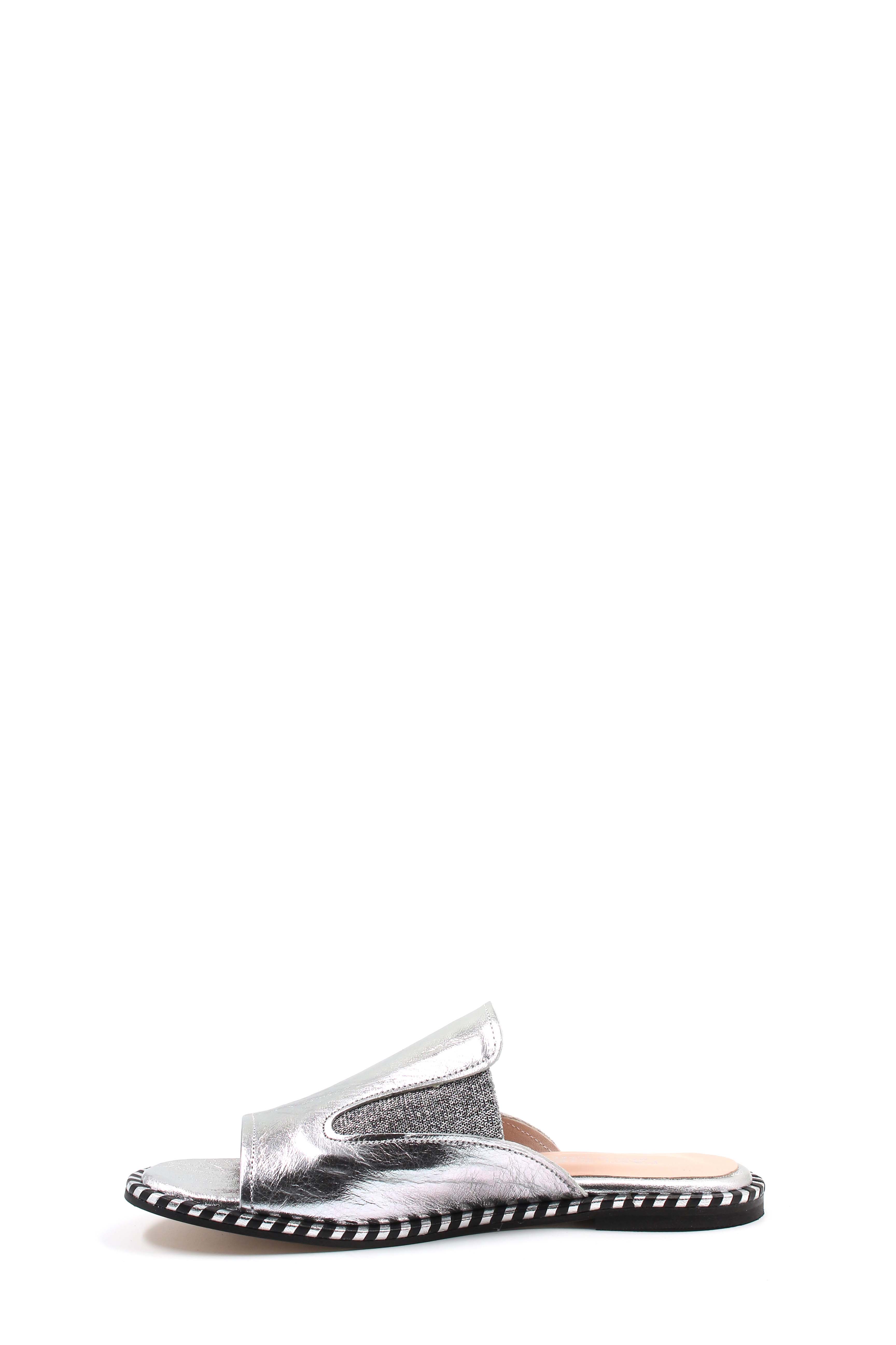 MirgeShoes Kadın Düz Terlik İçi Dışı Hakiki Deri Gümüş MRG011018261463