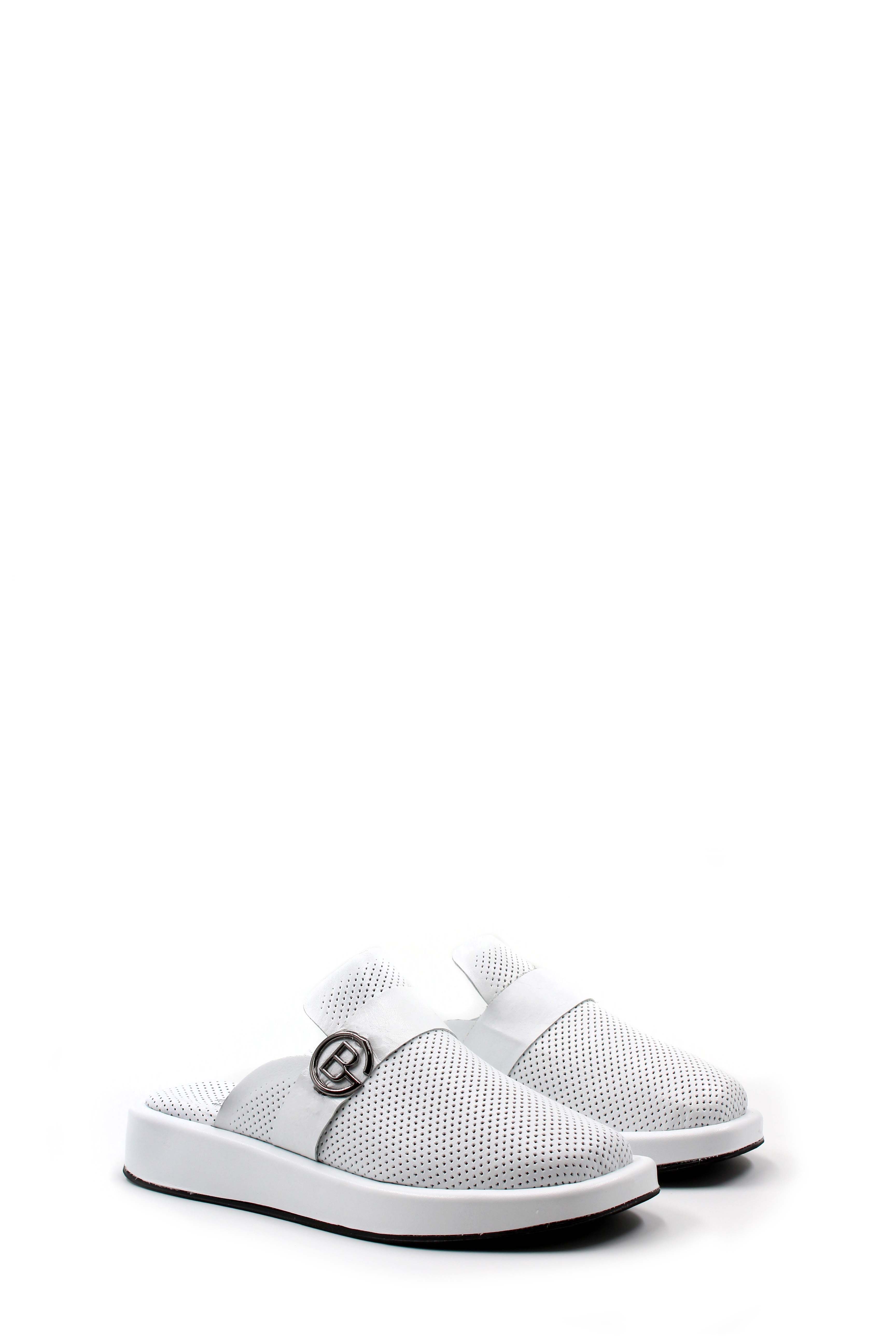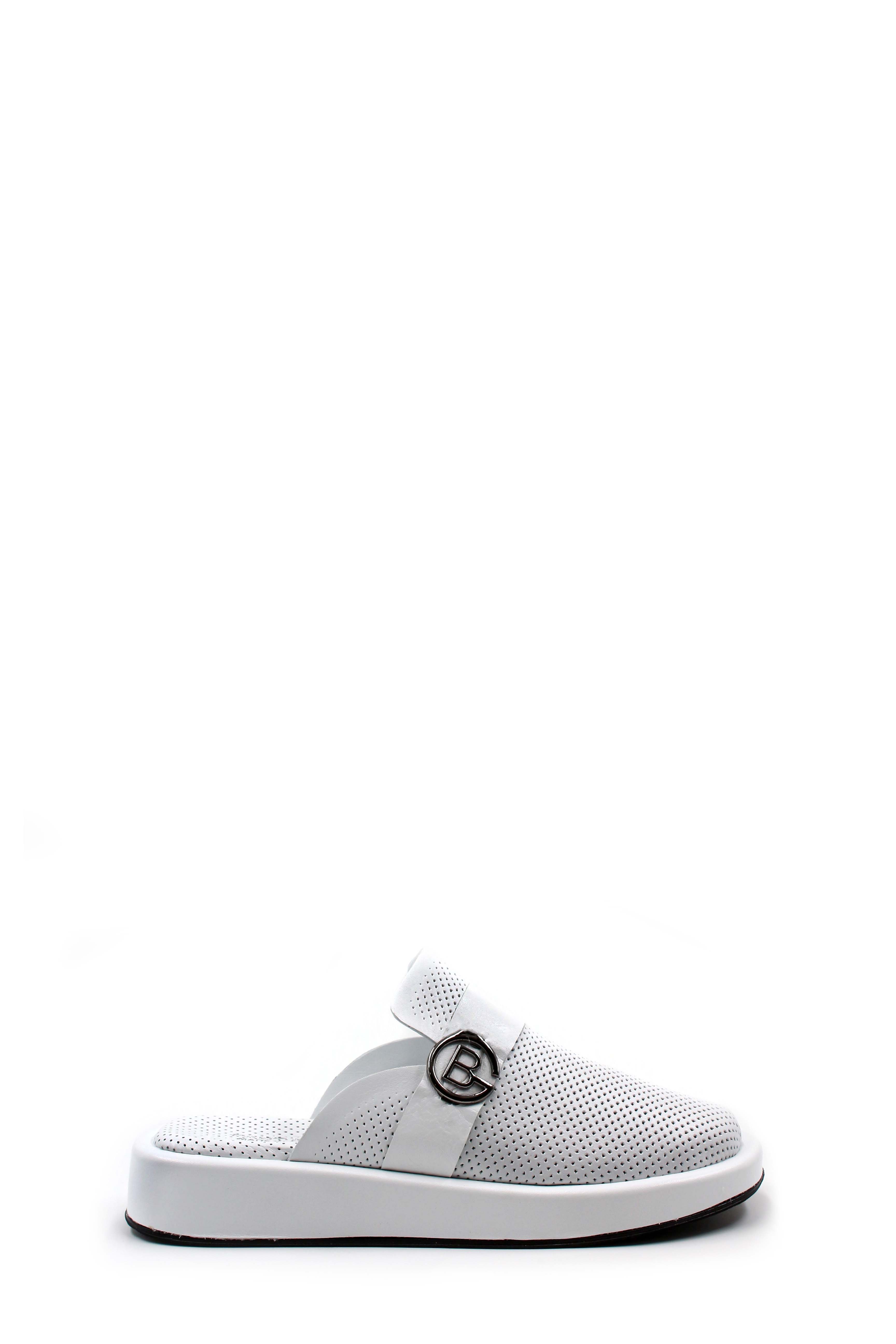 MirgeShoes Kadın Düz Terlik İçi Dışı Hakiki Deri Beyaz MRG01840261515