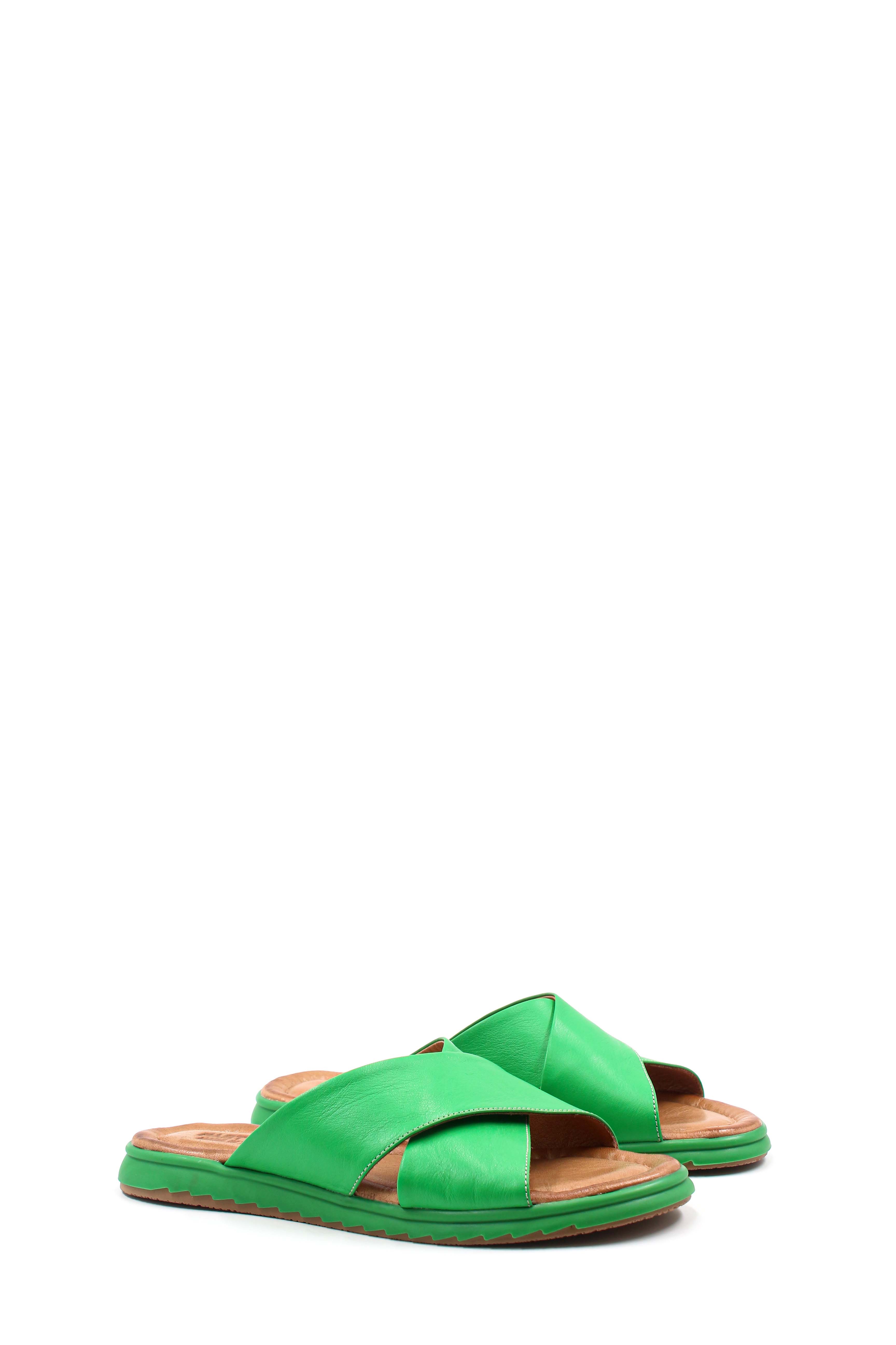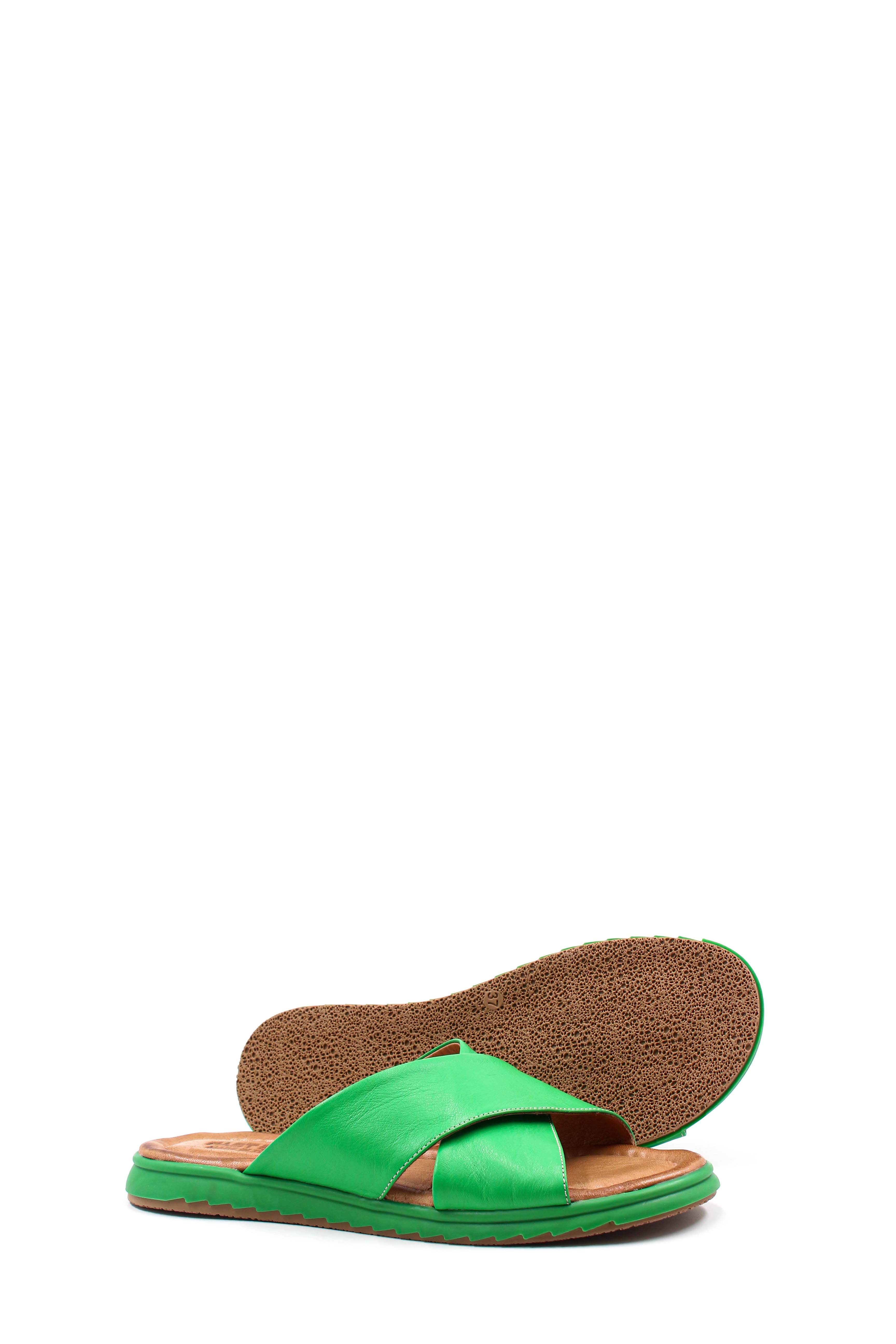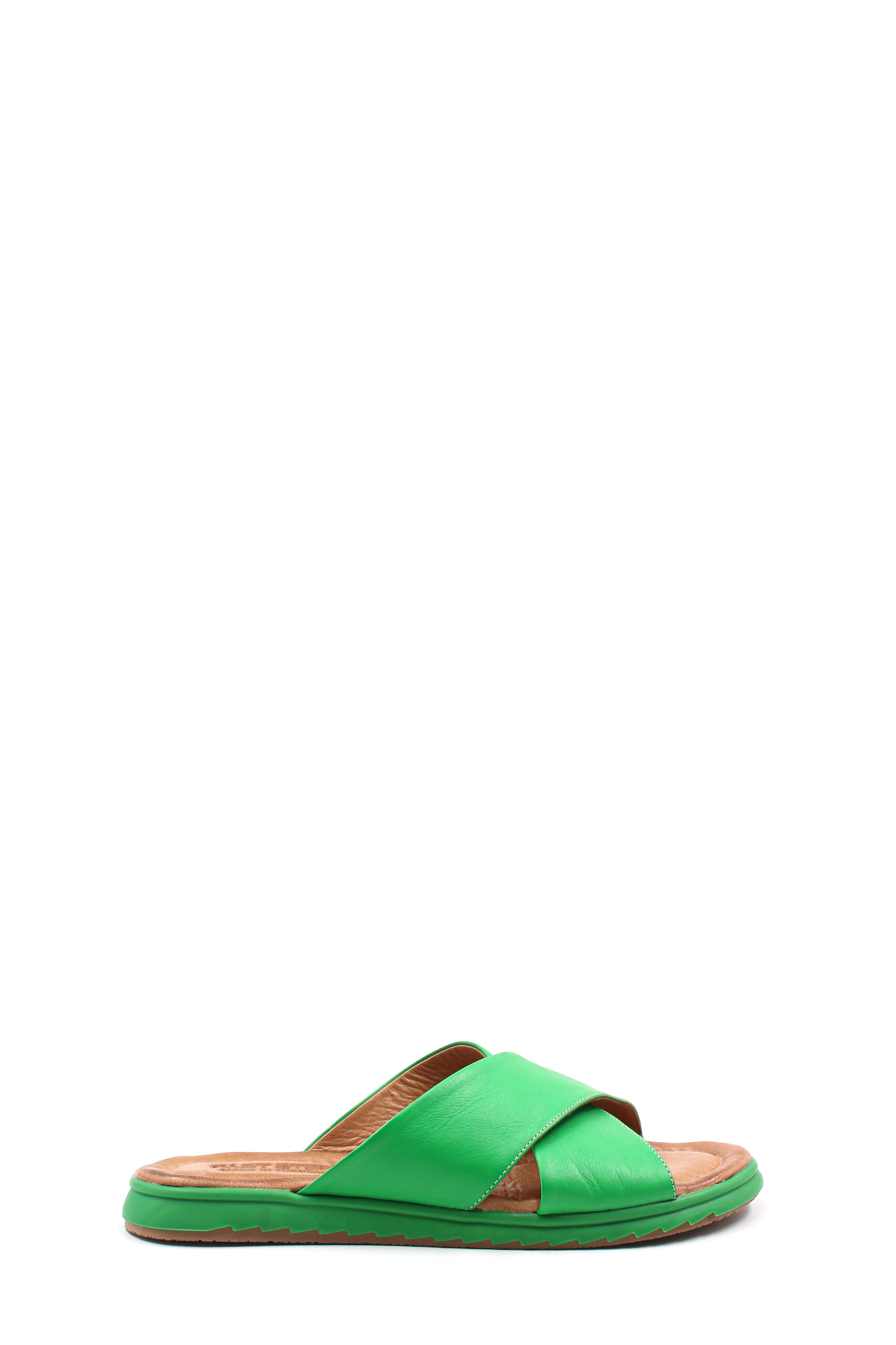 • MirgeShoes Kadın Düz Terlik İçi Dışı Hakiki Deri Yeşil   MRG017872612661
