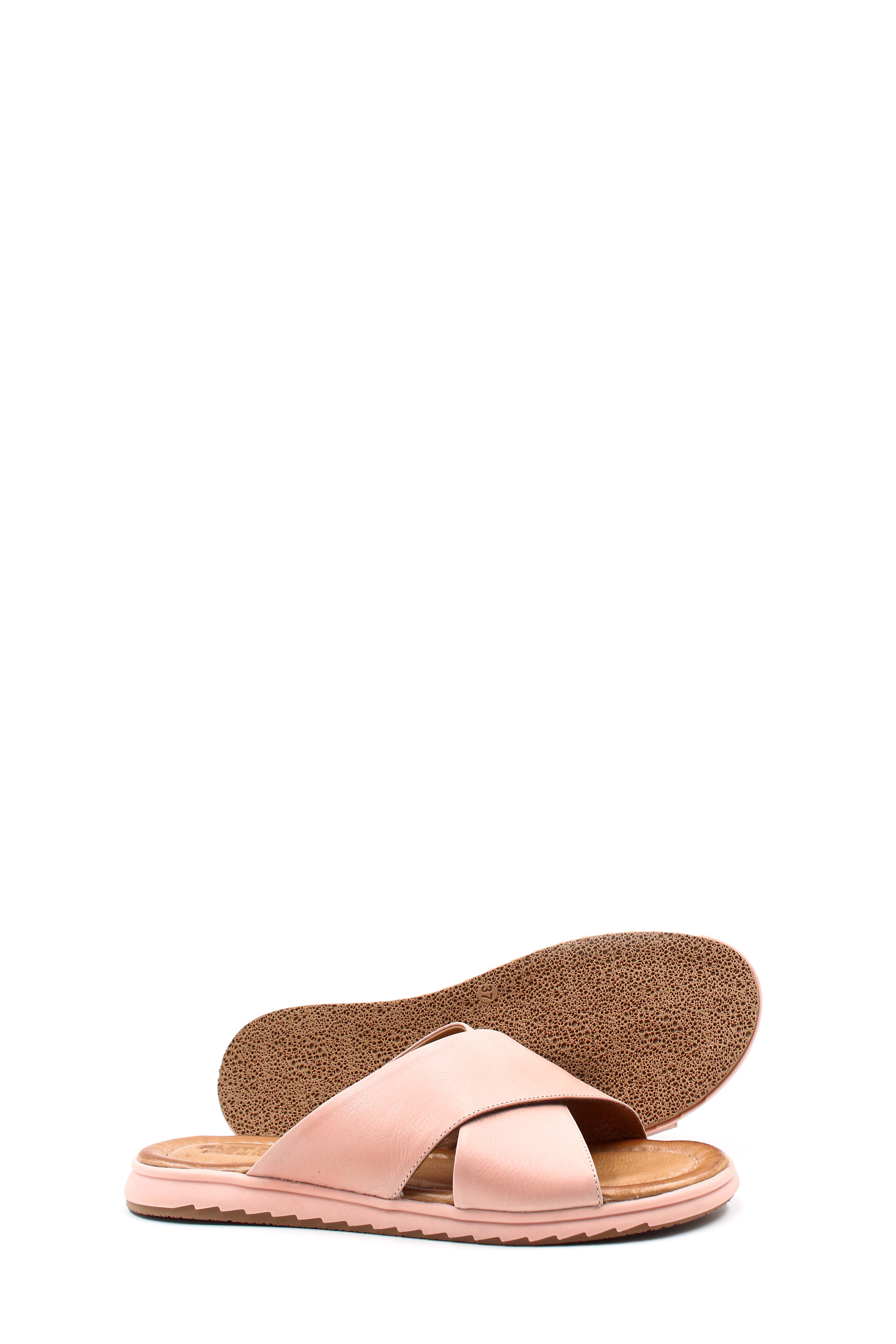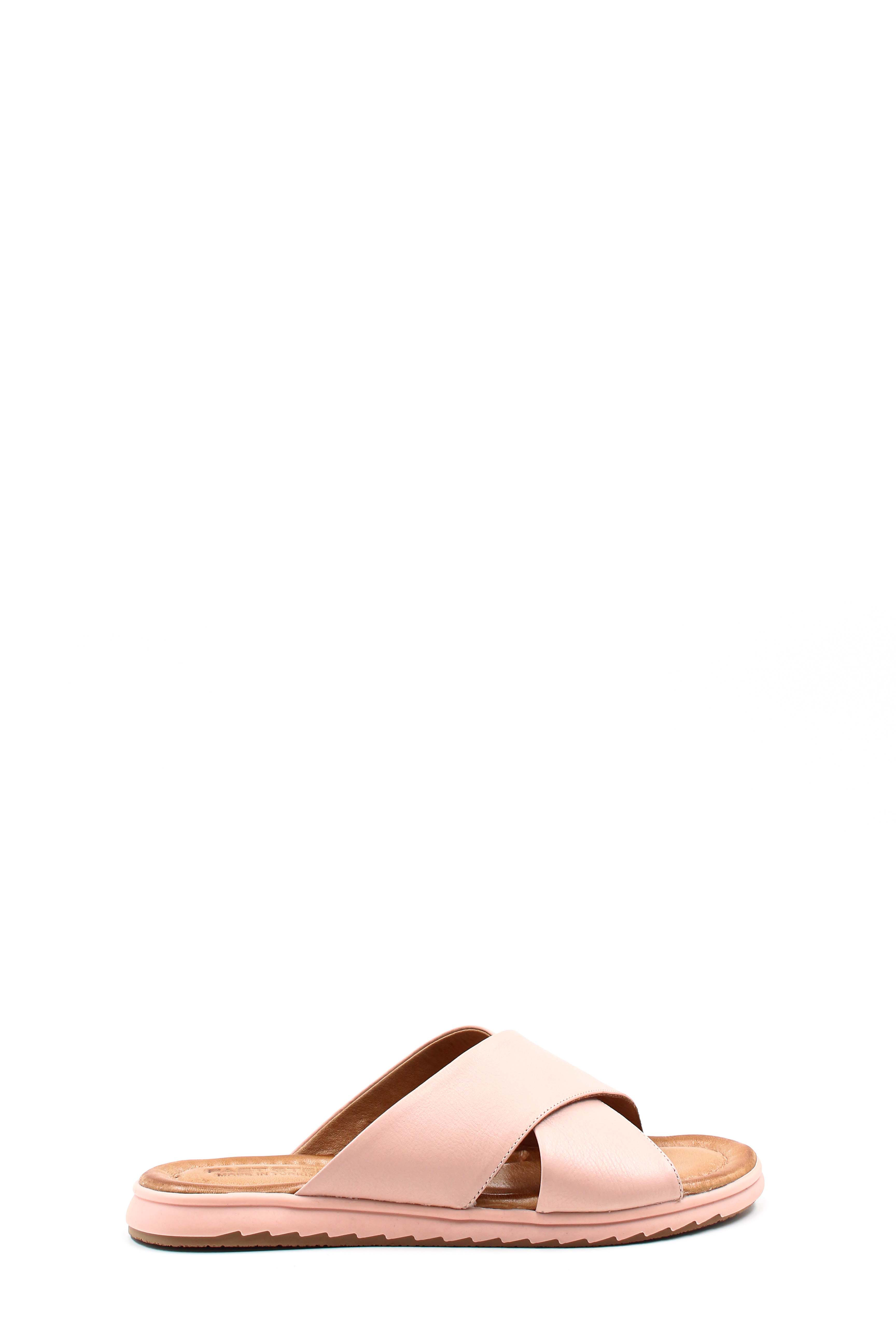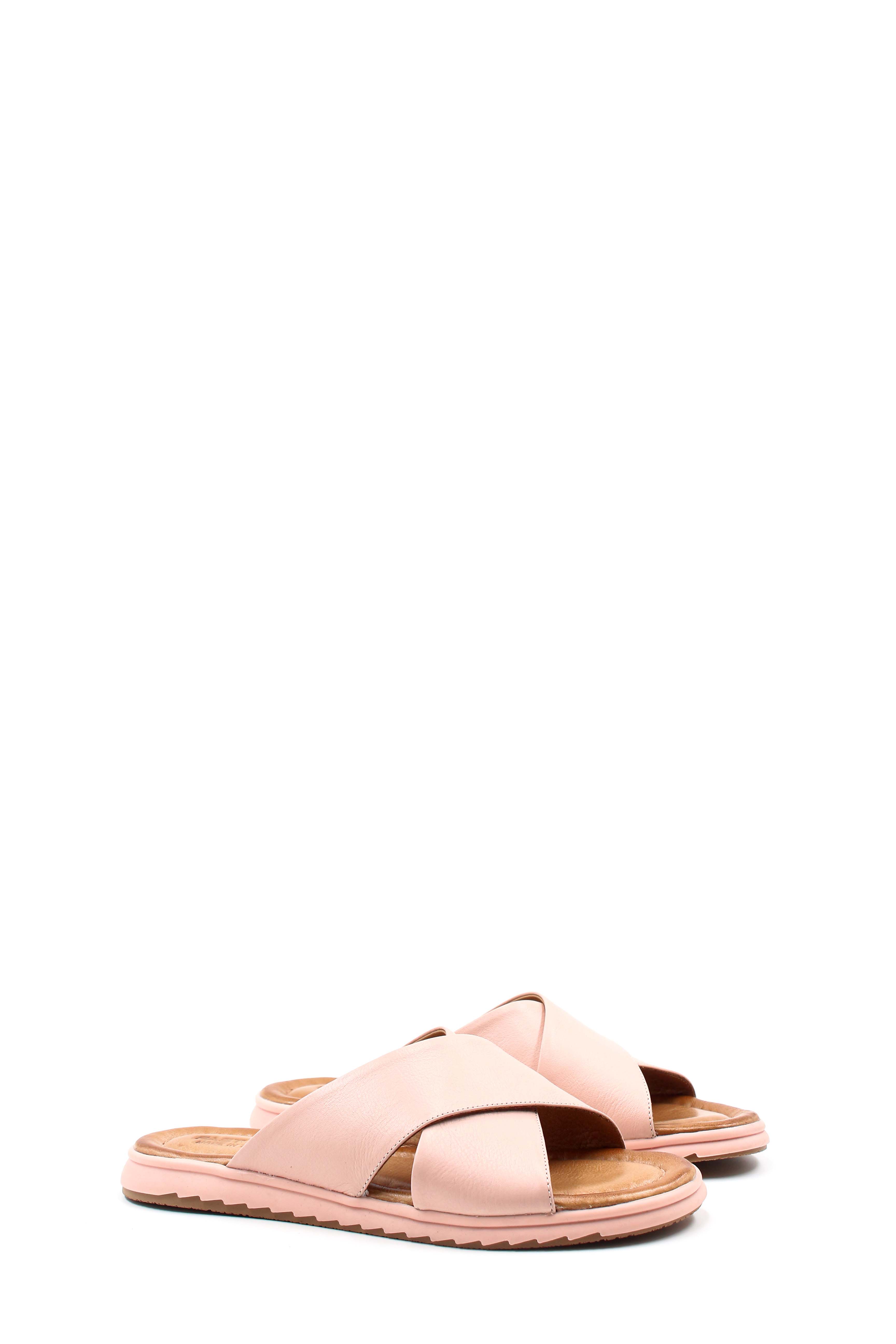 • MirgeShoes Kadın Düz Terlik İçi Dışı Hakiki Deri Pudra   MRG017872612661