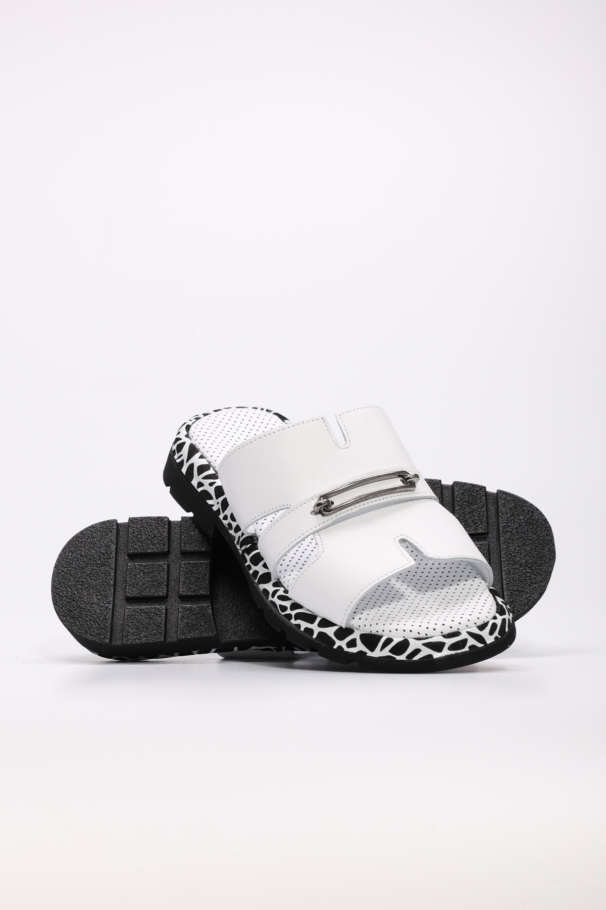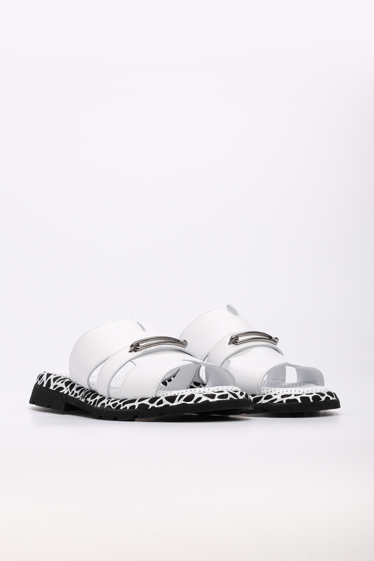 MirgeShoes Kadın Düz Terlik İçi Dışı Hakiki Deri Beyaz MRG018402611209