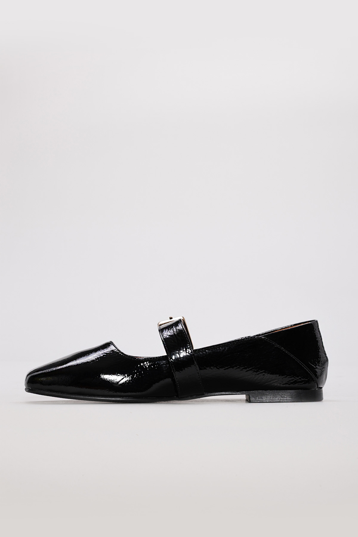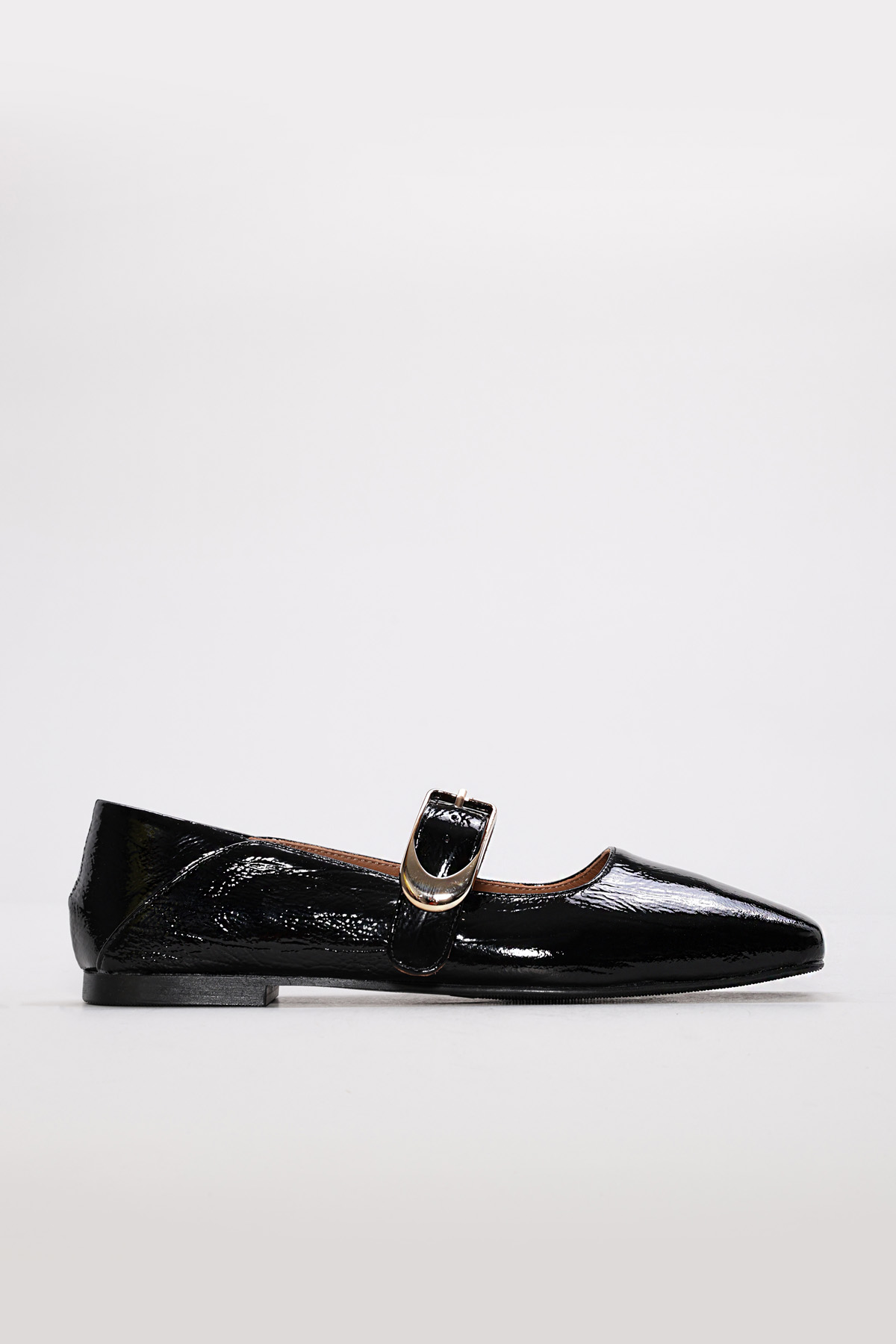 Kadın Babet Ayakkabı MirgeShoes Siyah Tokalı Kadın Babet Rugan Ayakkabı İçi Dışı Hakiki Deri MRG013402619974