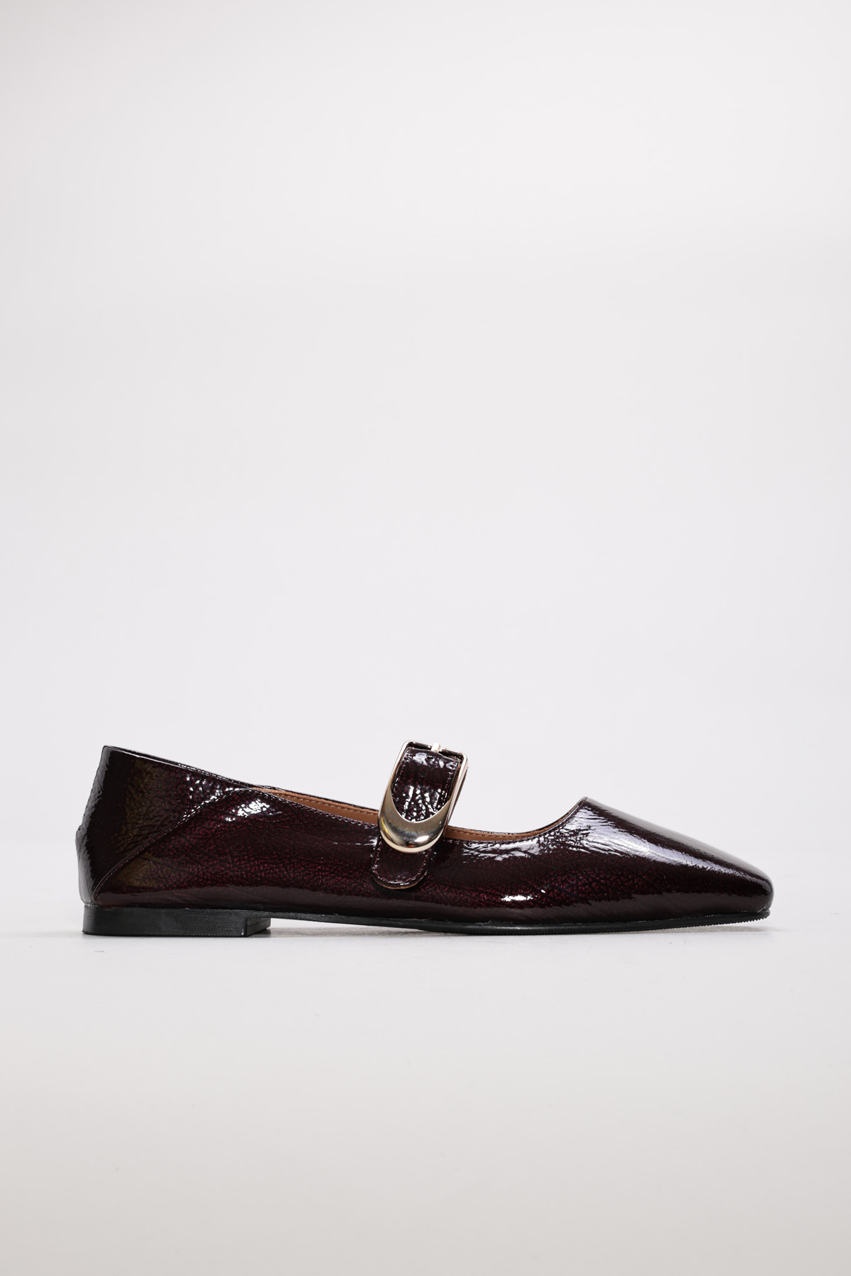 Kadın Babet Ayakkabı MirgeShoes Bordo Tokalı Kadın Babet Rugan Ayakkabı İçi Dışı Hakiki Deri MRG013402619974