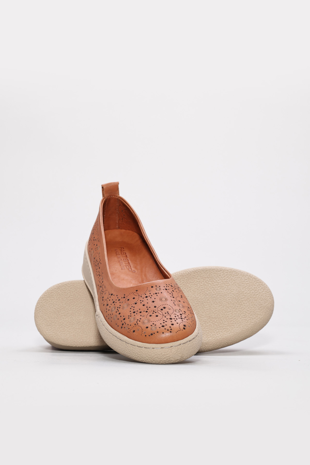Kadın Babet Ayakkabı MirgeShoes Taba Rahat Kadın Babet Ayakkabı İçi Dışı Hakiki Deri MRG017872613548