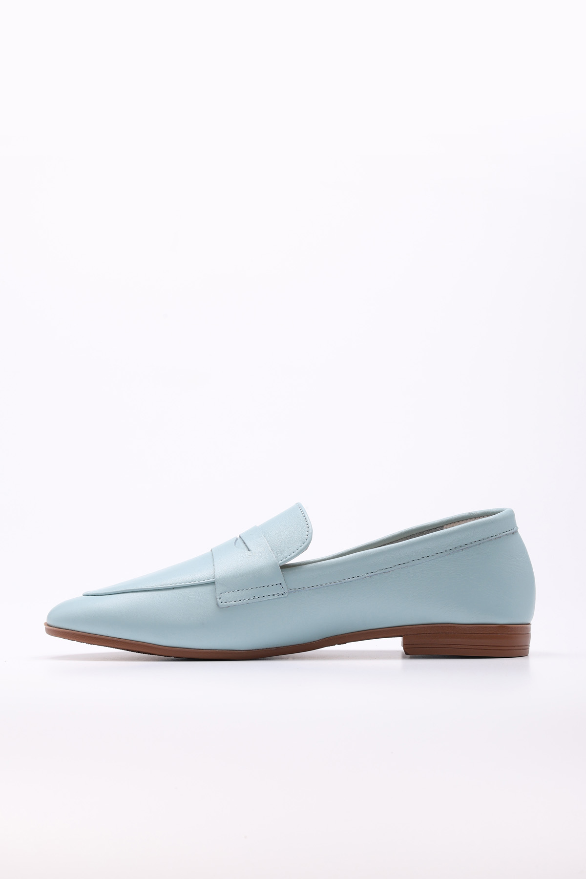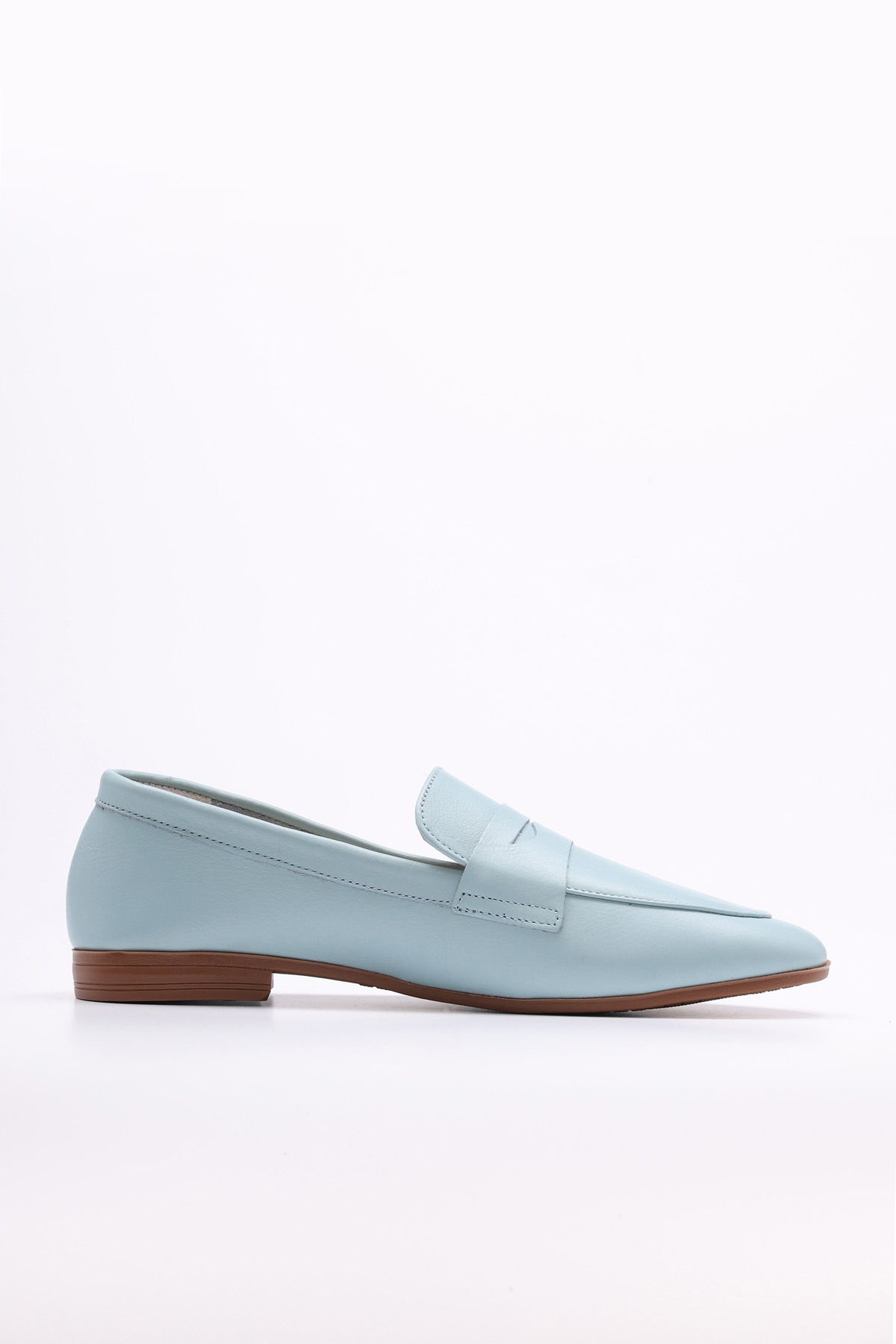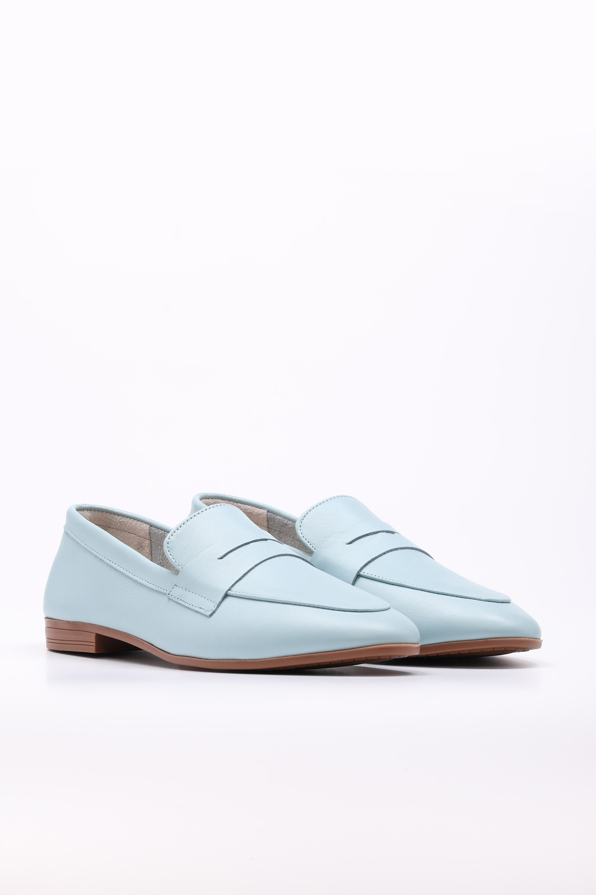 MirgeShoes Mavi Rahat Kadın Babet Ayakkabı İçi Dışı Hakiki Deri MRG015492615151433