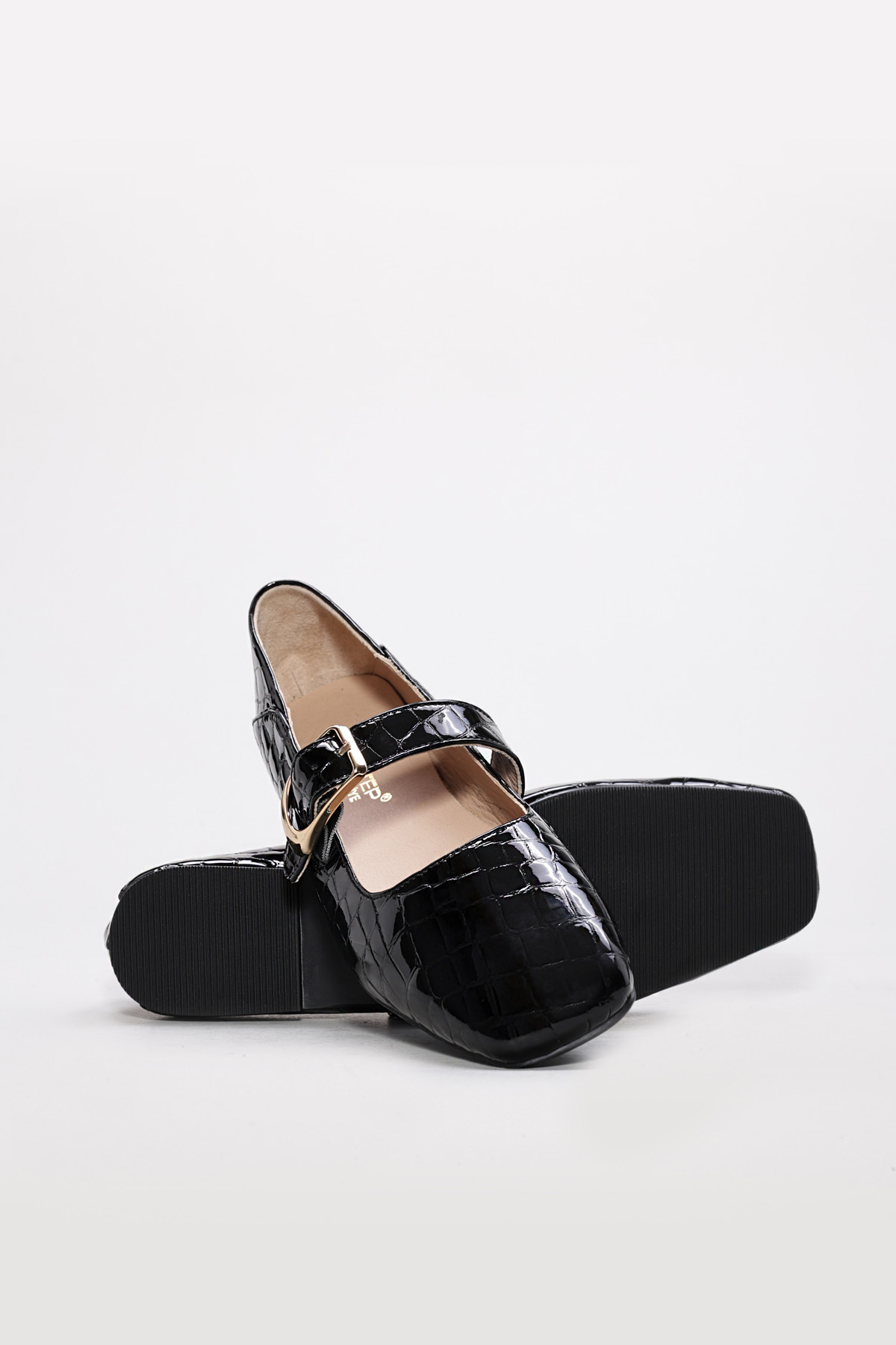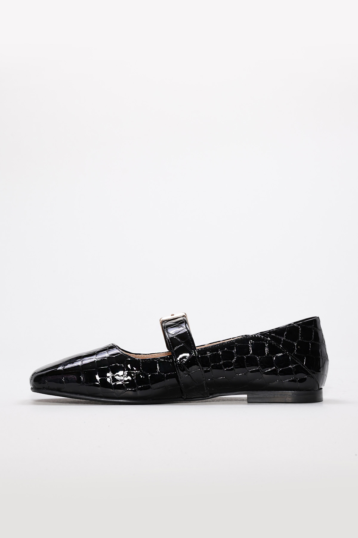 Kadın Babet Ayakkabı MirgeShoes Siyah Tokalı Kadın Babet Rugan Ayakkabı İçi Dışı Hakiki Kroko Deri MRG013402619974