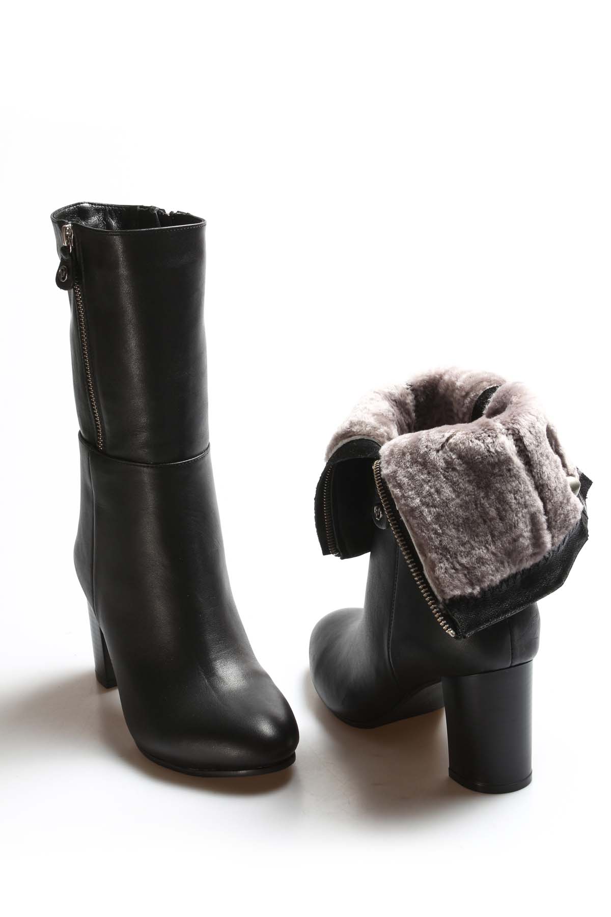 MirgeShoes Kadın Topuklu Çizme İçi Kürklü Dışı Kaliteli Hakiki Deri Siyah