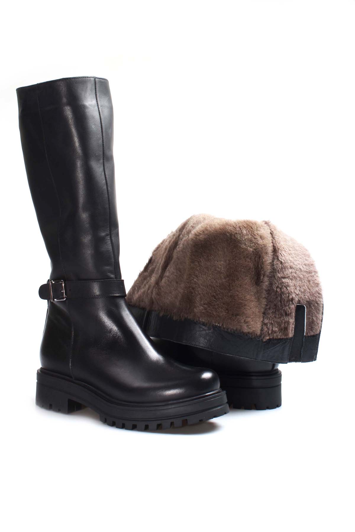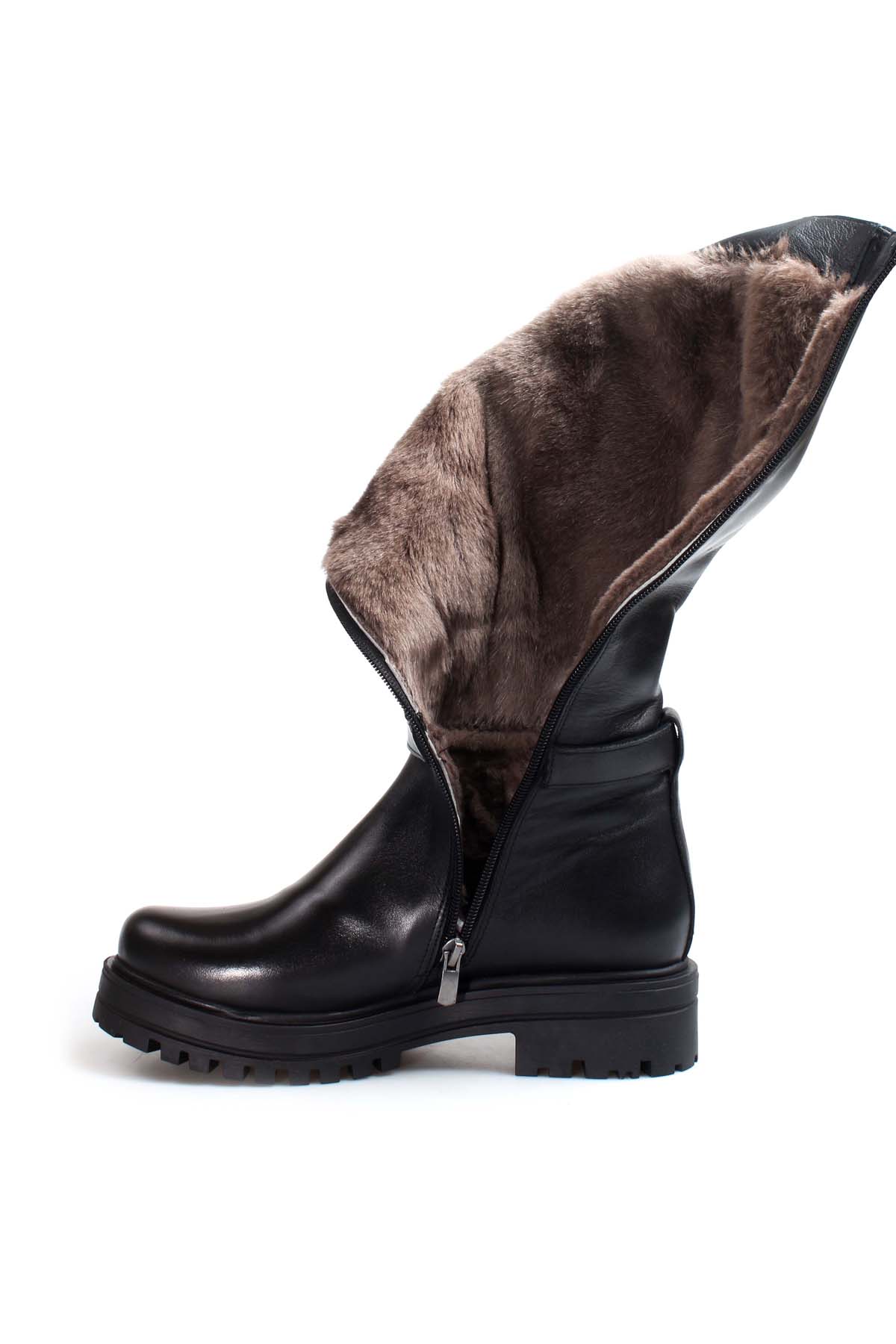 • MirgeShoes Siyah Kadın Kalın Taban Klasik Çizme İçi Kürklü Dışı Hakiki Deri MRG018871126122612