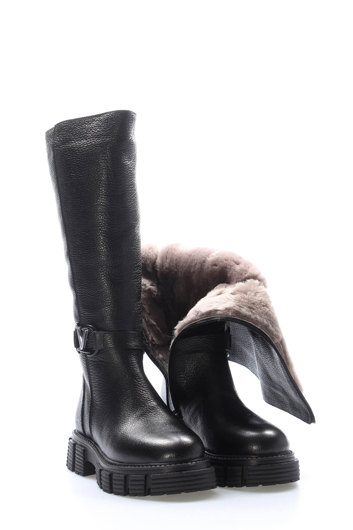 • MirgeShoes Siyah Kadın Çizme İçi Kürklü Dışı Hakiki Floter Deri MRG01840112616225