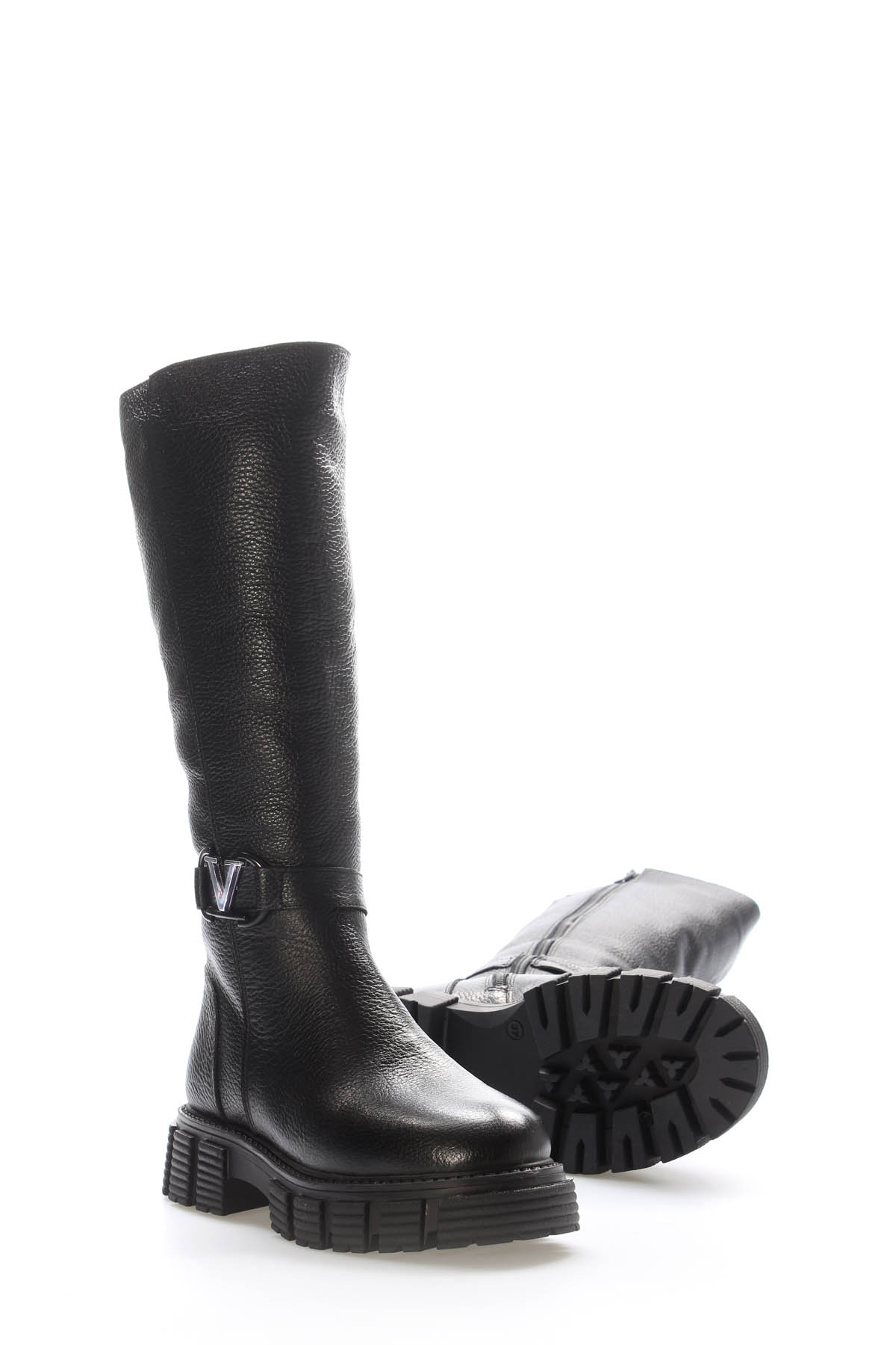 Kadın Çizme MirgeShoes Siyah Kadın Çizme İçi Kürklü Dışı Hakiki Floter Deri MRG01840112616225