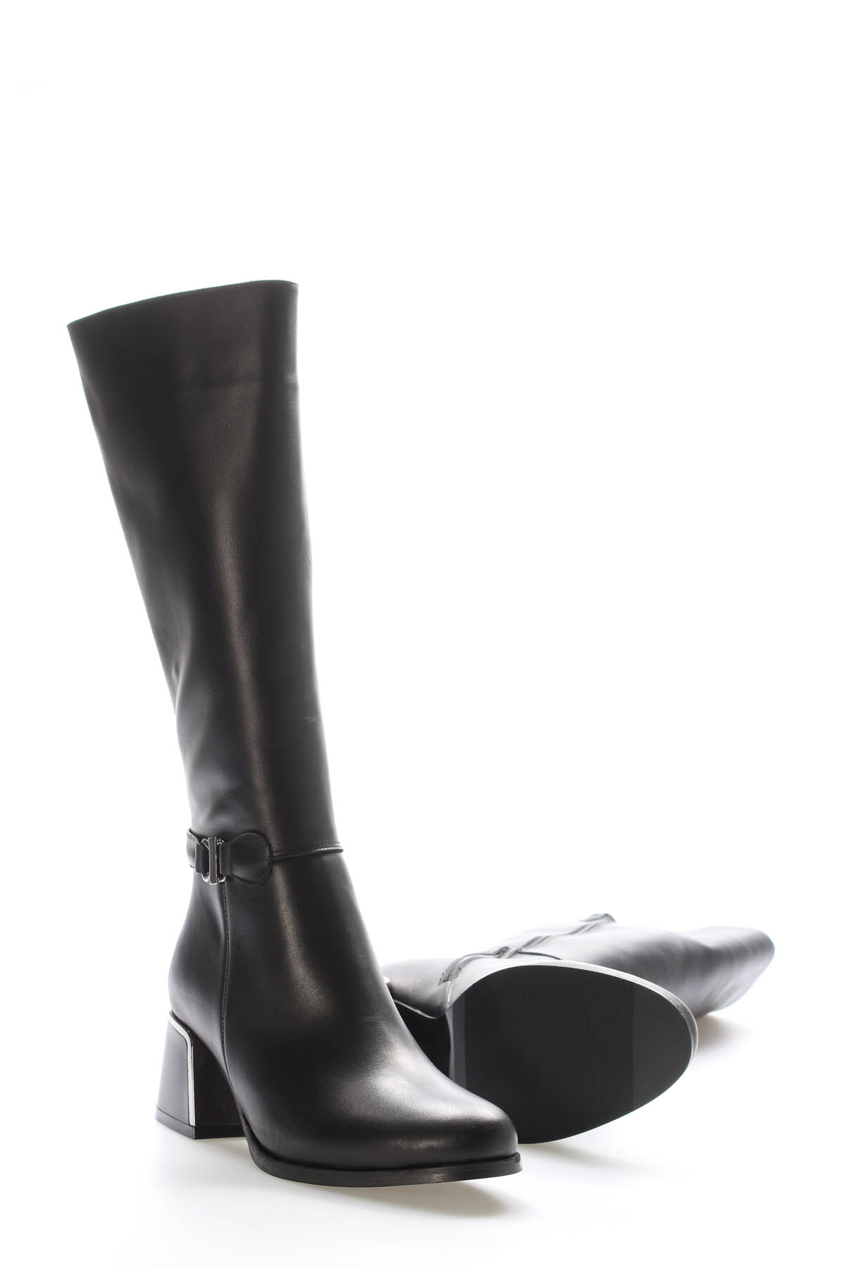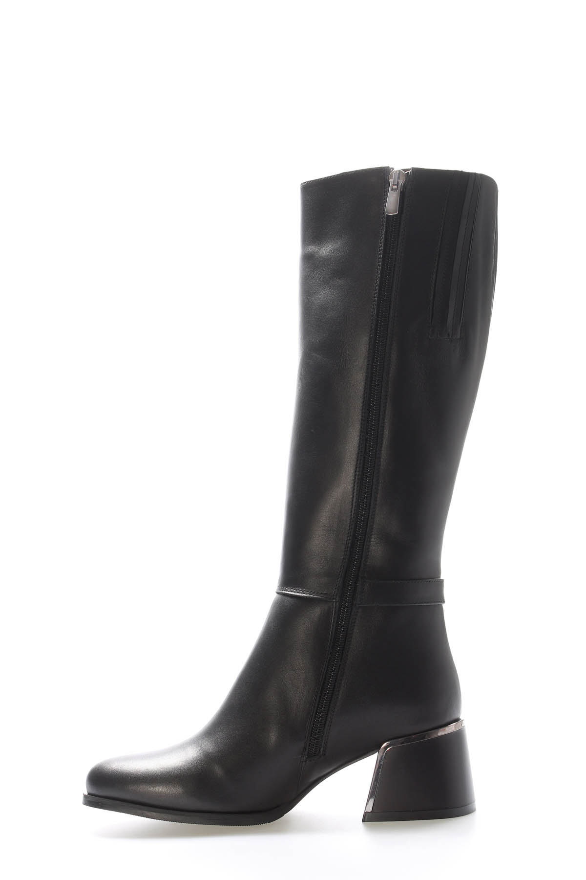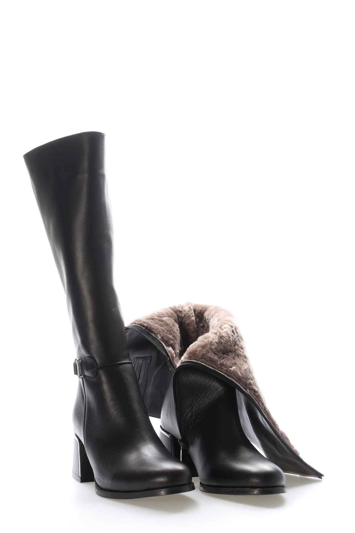 MirgeShoes Siyah Kadın Topuklu Çizme İçİ Kürklü Dışı Hakiki Floter Deri MRG0119411261484