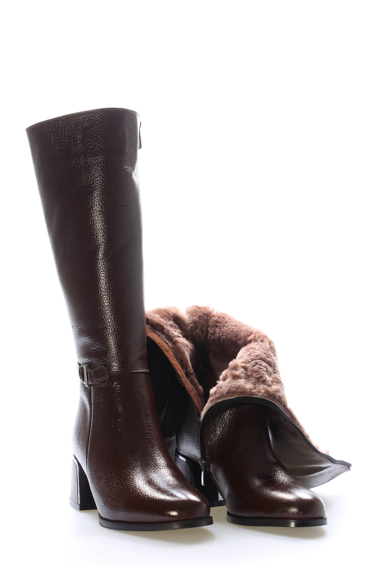 MirgeShoes Kahve Kadın Topuklu Çizme İçİ Kürklü Dışı Hakiki Floter Deri MRG0119411261484